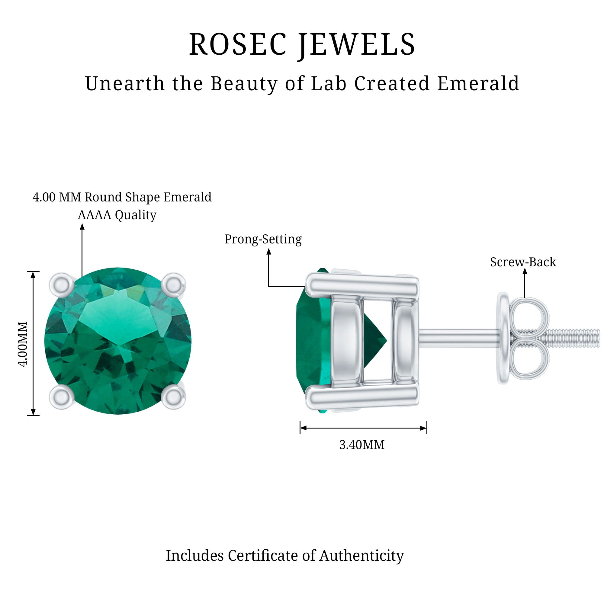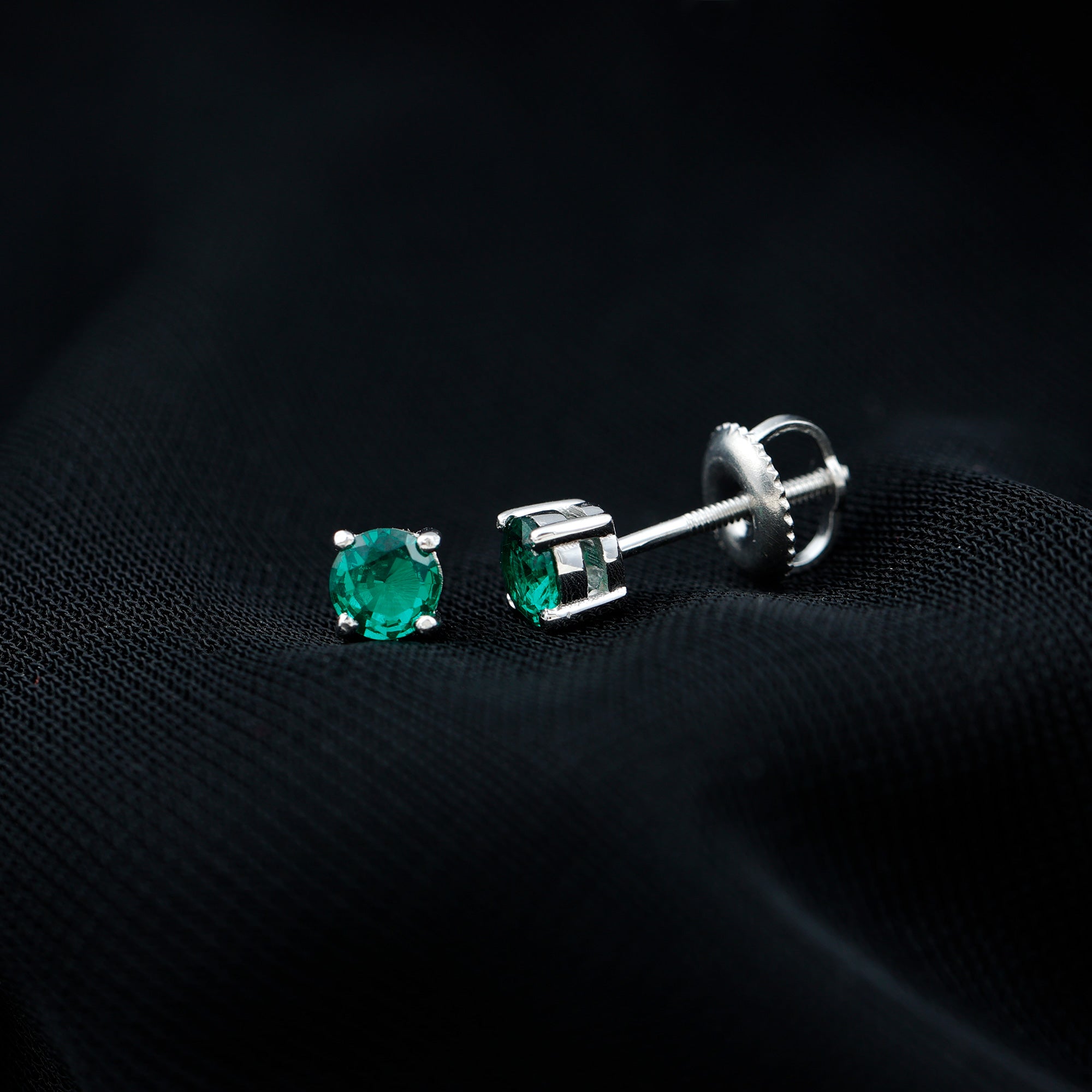 Crafted entirely from premium 14k white gold plated sterling silver, these Lab Grown Emerald Stud Earrings shine brightly while being durable and hypoallergenic, making them ideal for your ear. Featuring 4 MM round cut lab created emeralds securely set in prong setting and fastened with screw back closures, these Solitaire Stud Earrings are bound to become your go-to accessory. With their classic round cut, these Emerald Solitaire Earrings are versatile enough for daily wear as well as special events. They enhance any outfit with a touch of sophistication and are a must-have in any jewelry collection. If you are on the hunt for the perfect Emerald Studs, these are a fantastic choice that promises years of enjoyment. These Round Emerald Earrings for Women make a lovely gift for birthdays, anniversaries, holidays, or as a thoughtful gesture for bridal parties. Beautifully packaged, they serve as a personal and meaningful gift for anyone looking to convey style and sentiment through jewelry.