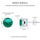 Minimalist Solitaire Lab Grown Emerald Stud Earrings in Silver