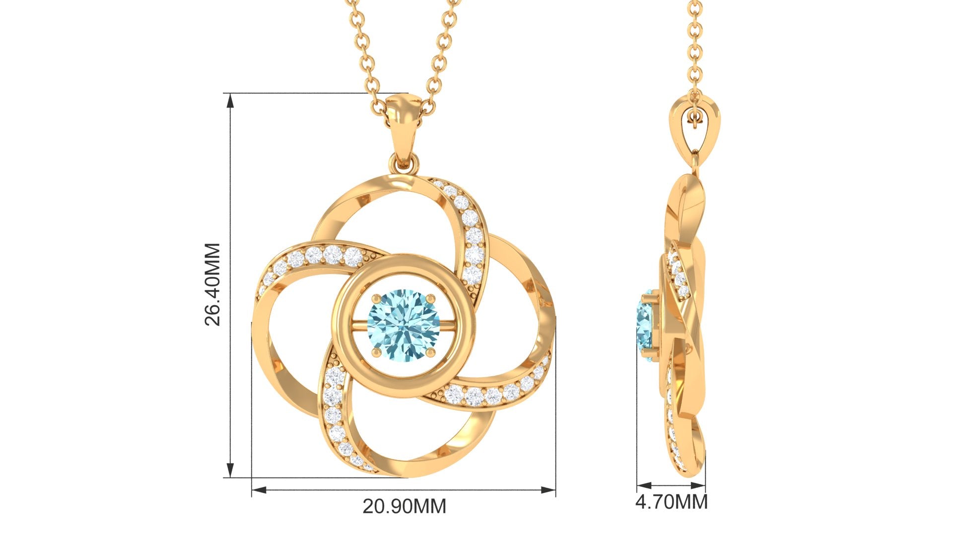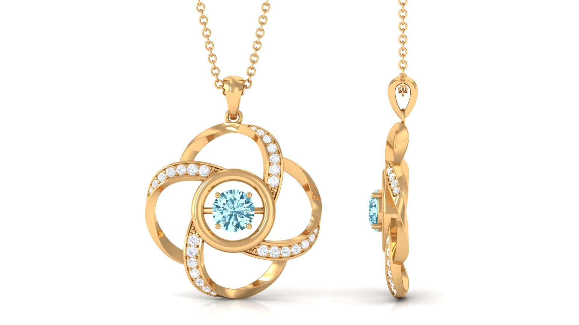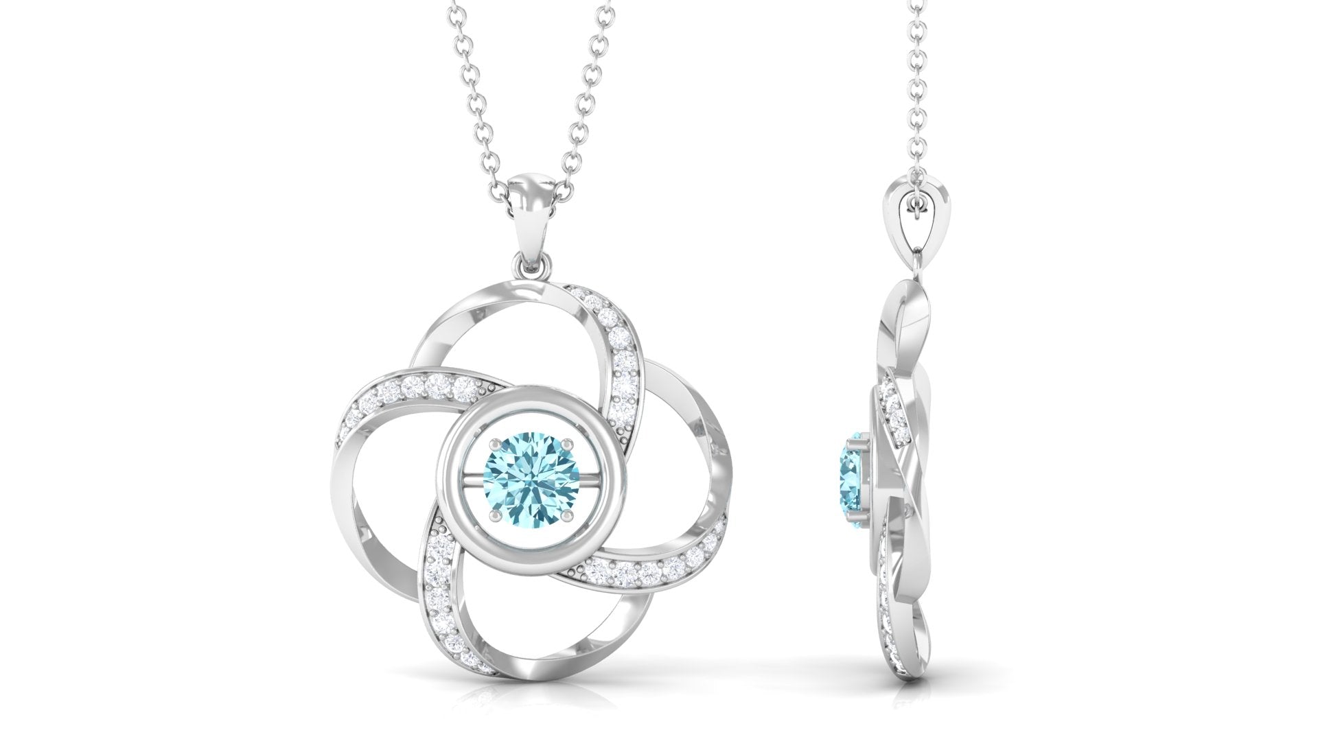 Modern Flower Pendant with Round Aquamarine and Diamond