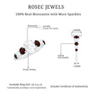 Prove less is more with our Moissanite Engagement Ring with Side Stones beholding the charm and elegance. It features 6X8 MM Oval and round shape Moissanite and round shape Garnet set in Prong Setting. The center stone is adorned with Garnet and Moissanite in an alternative pattern. This 1 Carat Engagement Ring beholds a reflection of the beauty in relationship. This ring beholds the shine of AAA Quality Garnet and D-VS1 Quality Moissanite. This Oval Shaped Ring will be delivered to you in the classic jewelry box for storage along with the certificate of gemstone authentication.