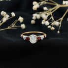 Moissanite 6X8 MM Oval Engagement Ring with Garnet