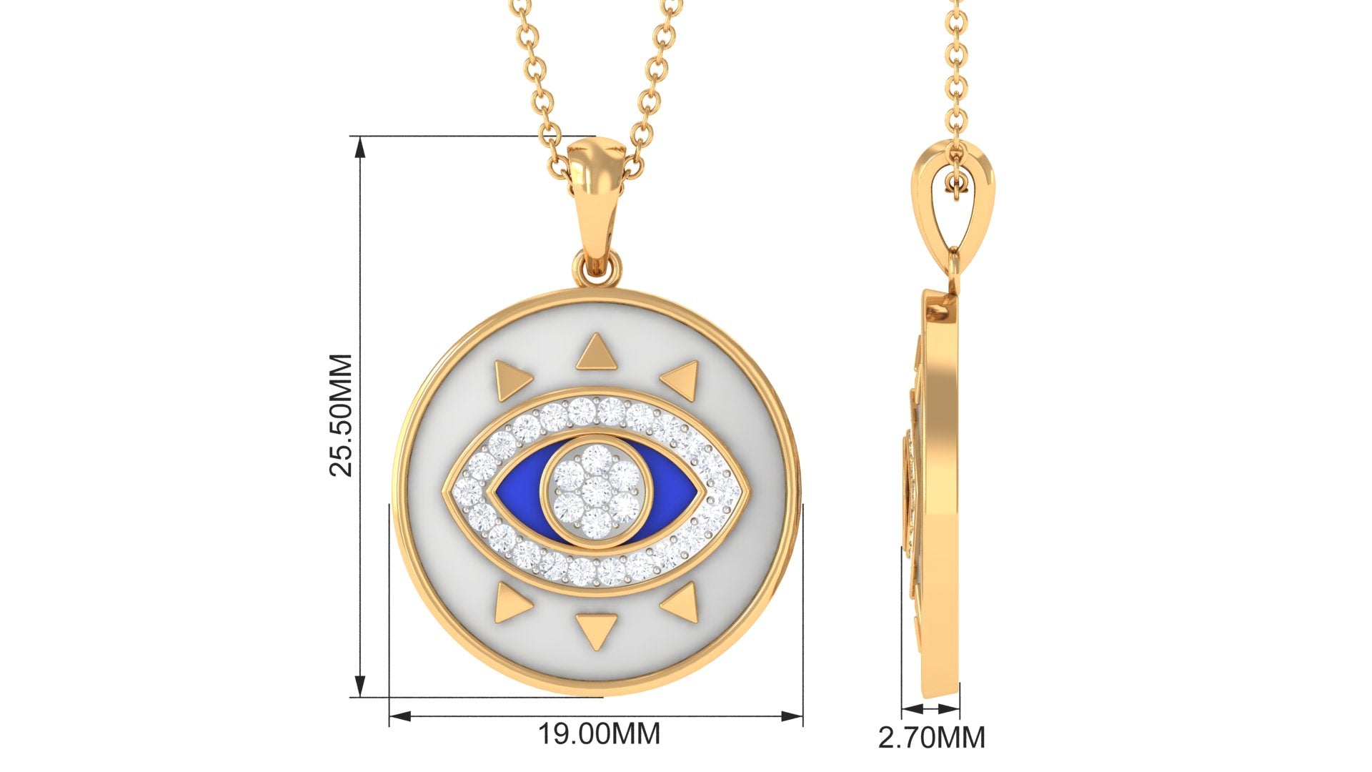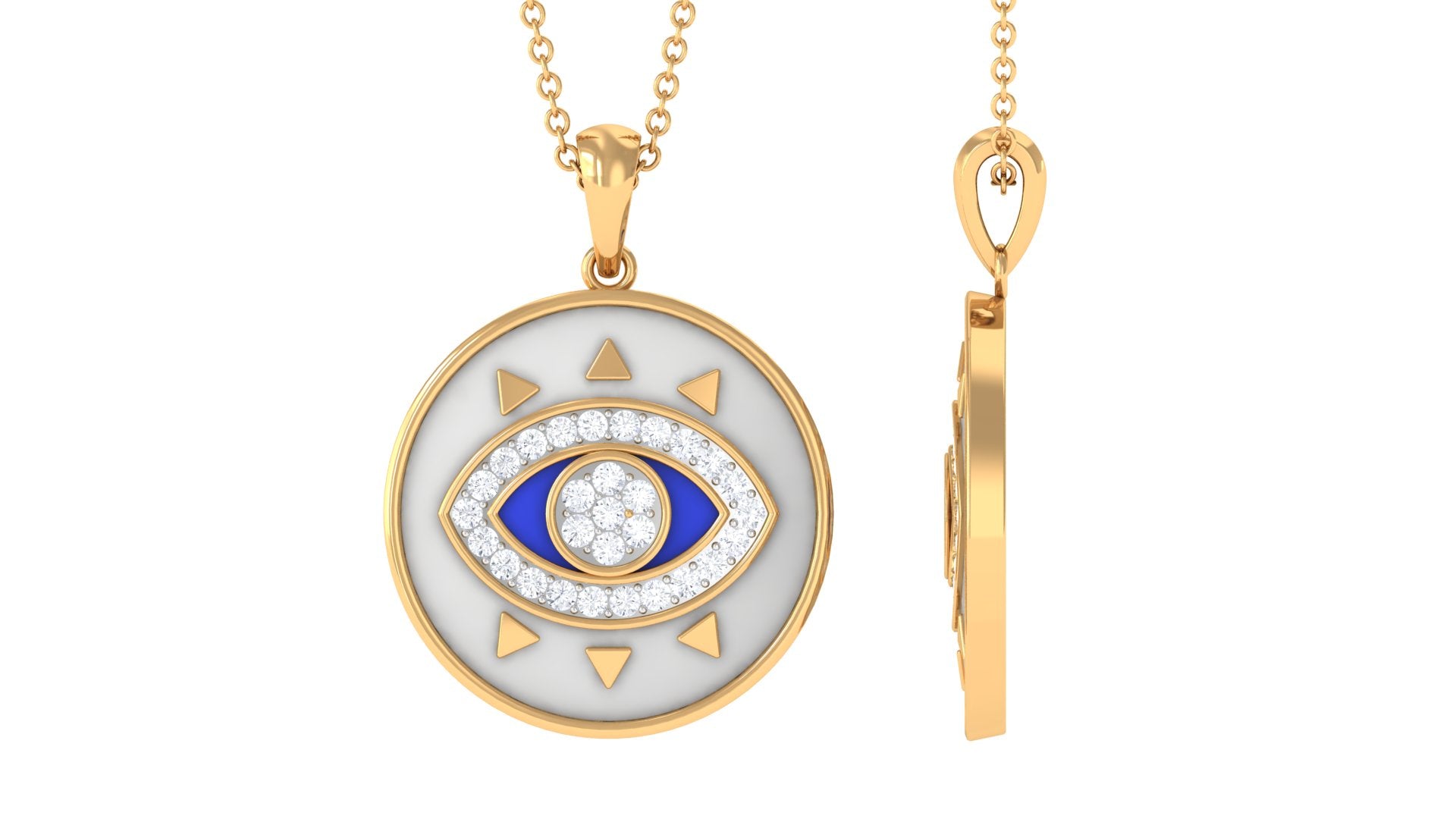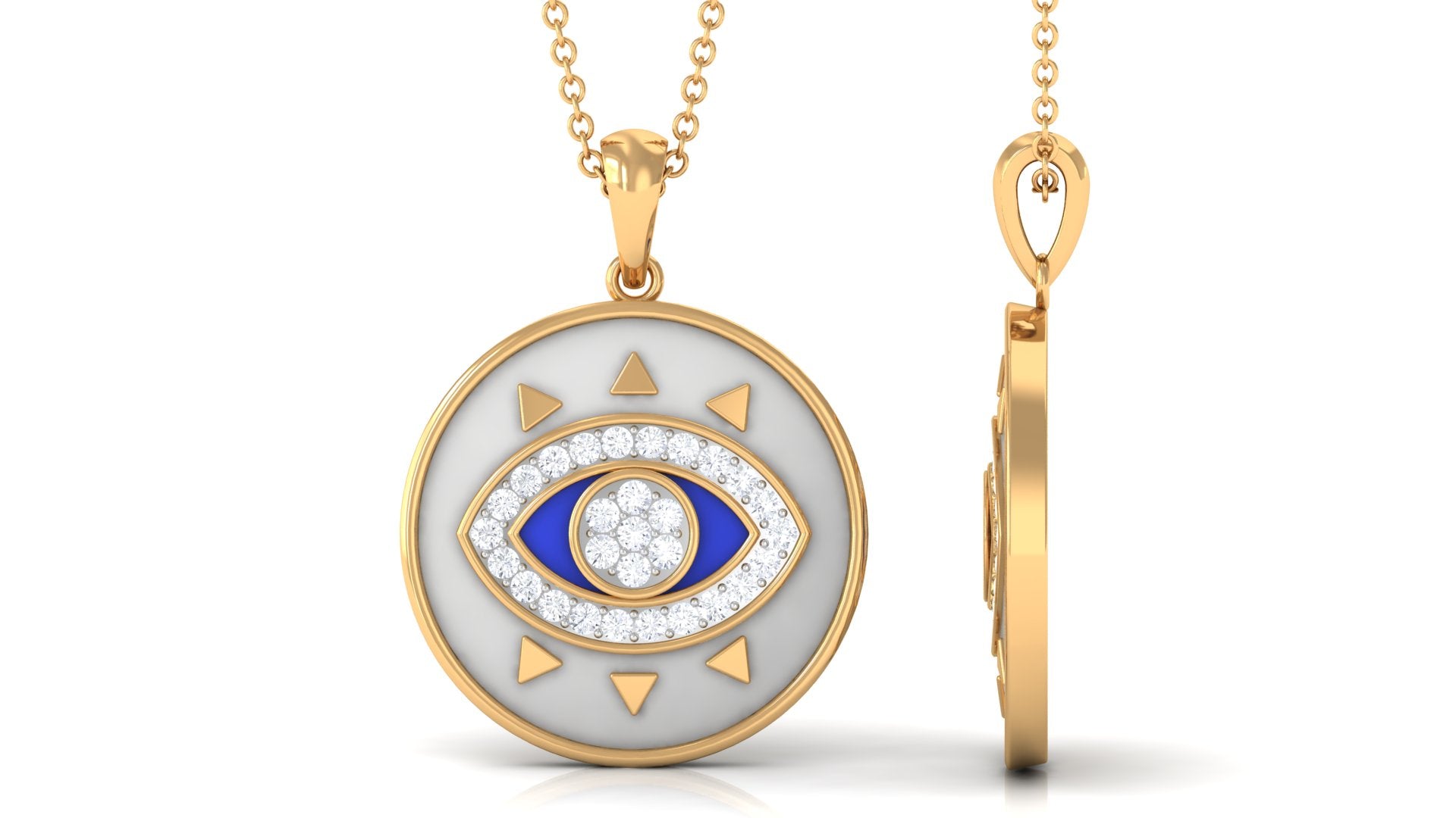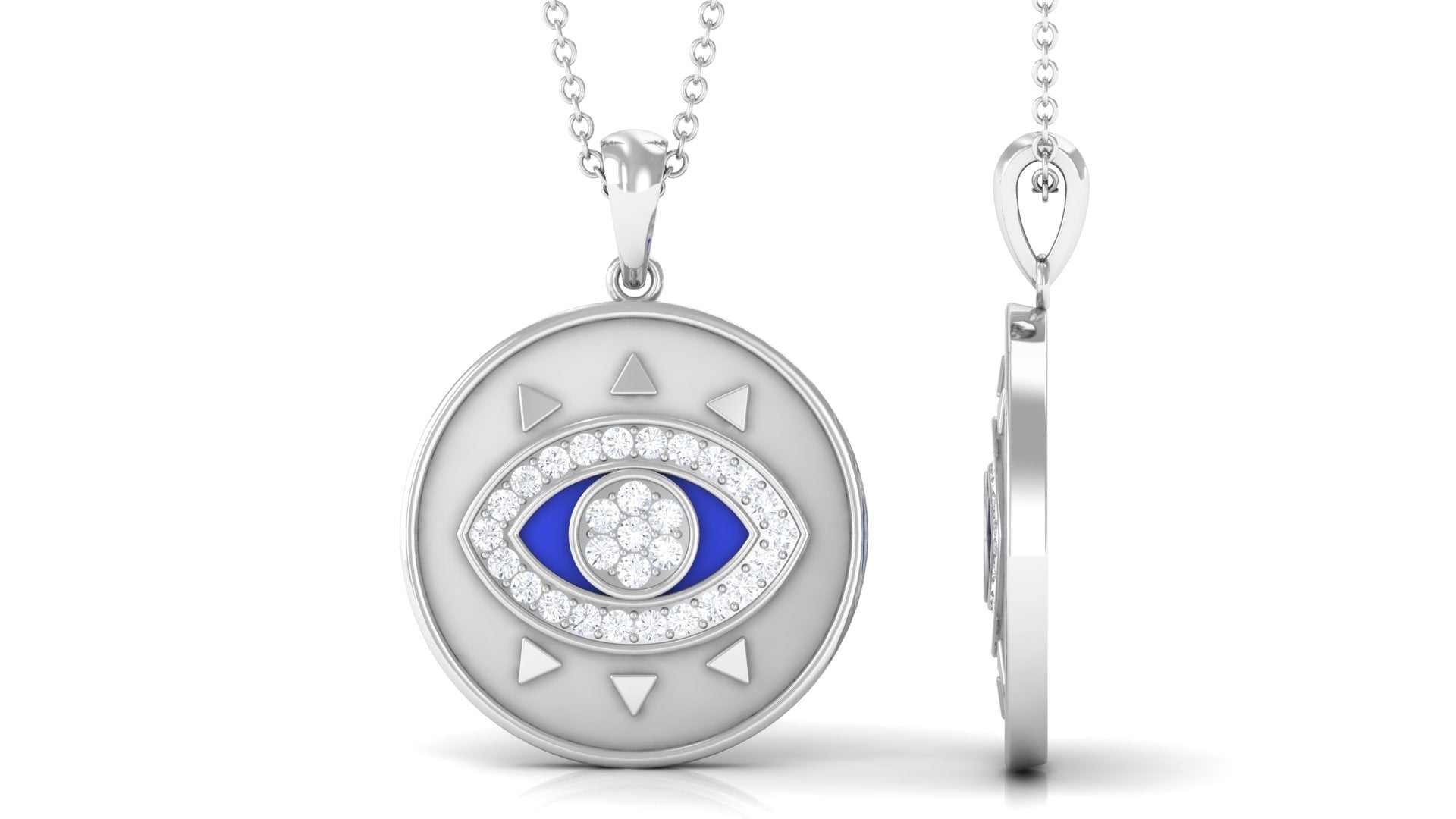 Moissanite and Evil Eye Disc Pendant Necklace
