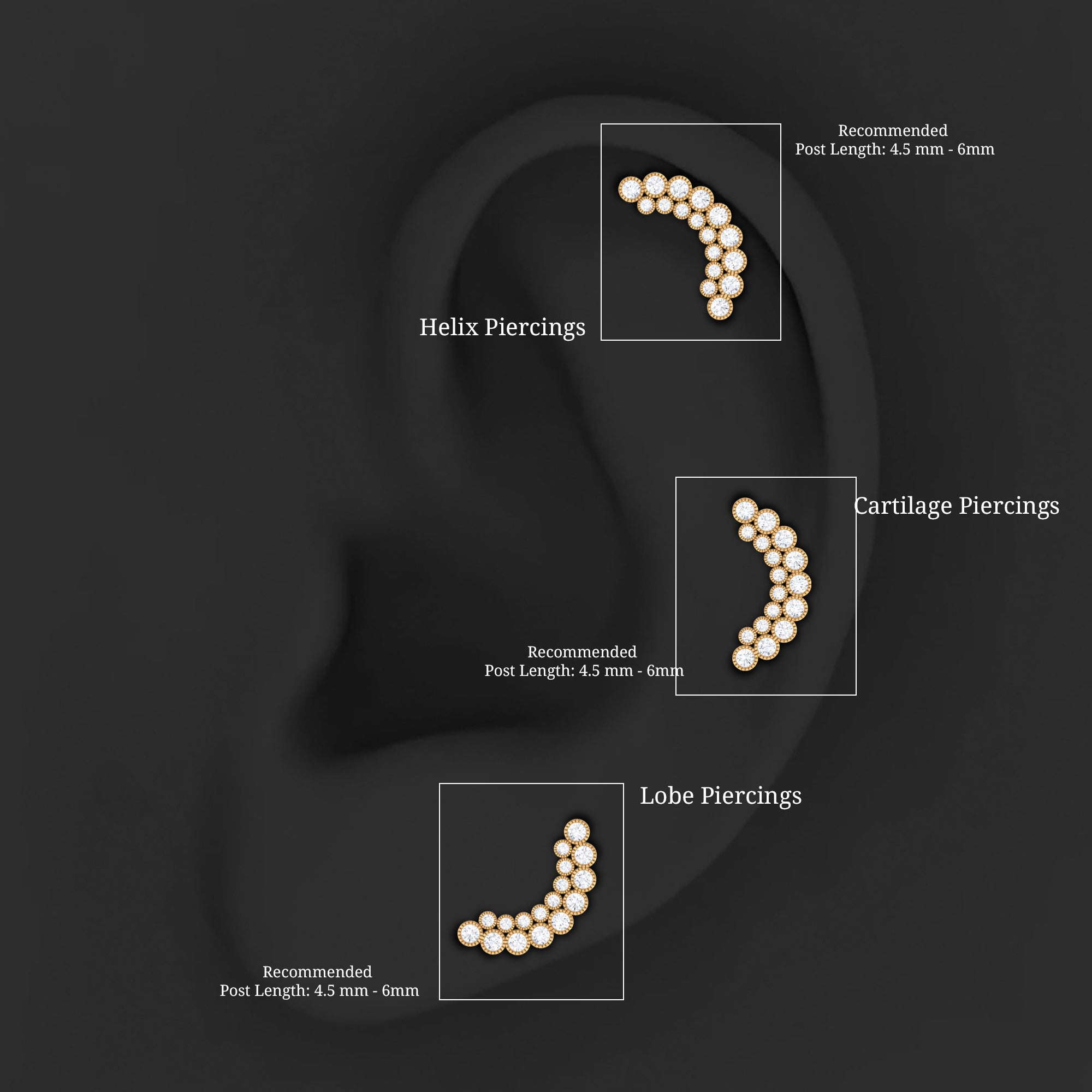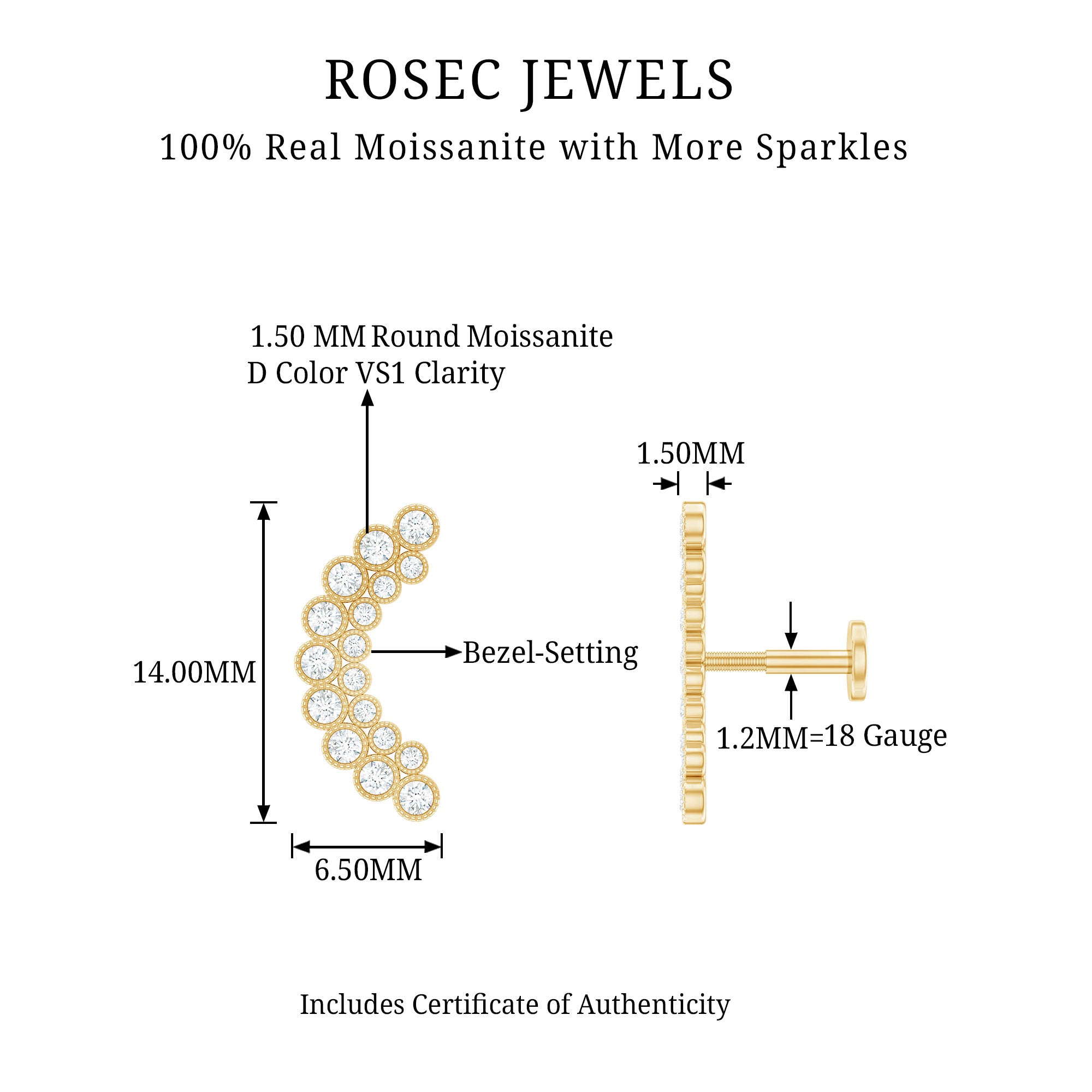 Moissanite Curved Helix Earring in Milgrain Bezel Setting