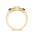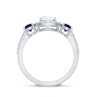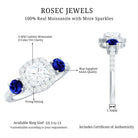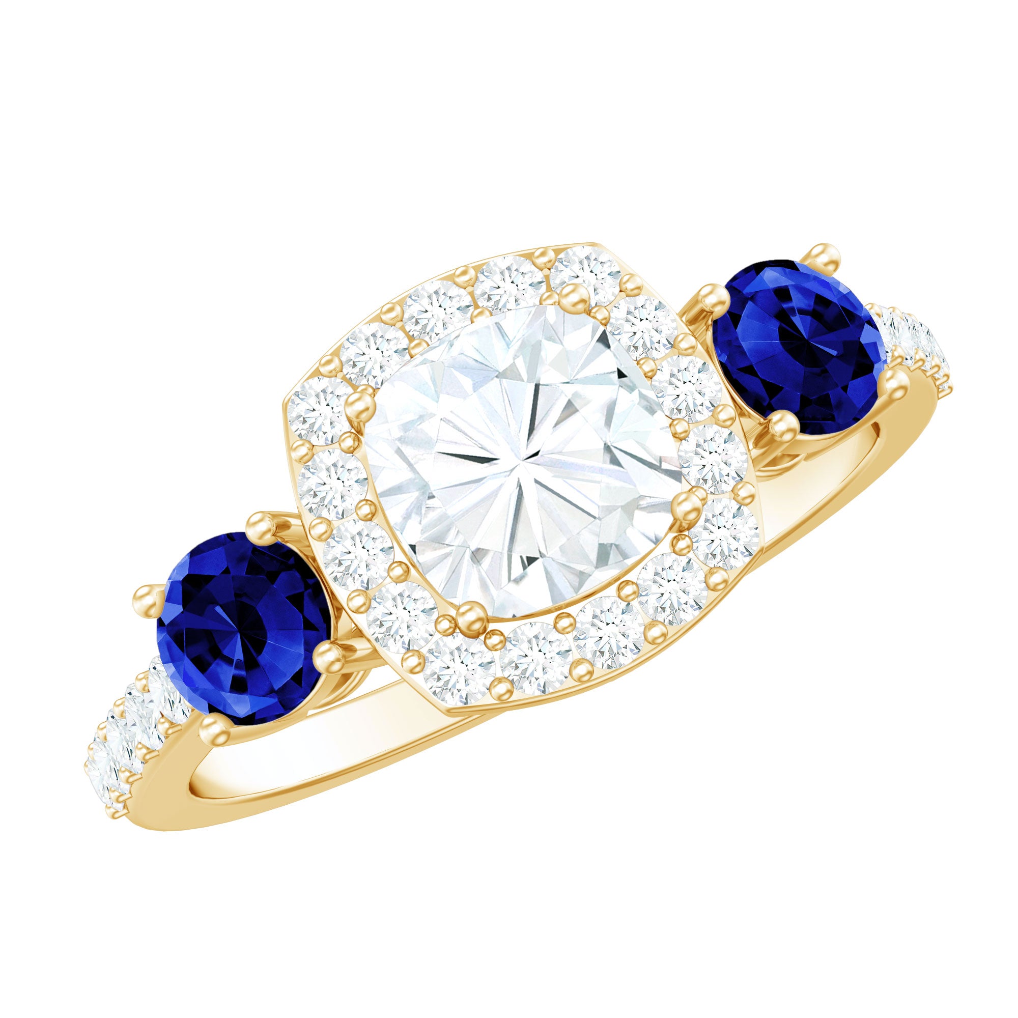 Moissanite Cushion Engagement Ring With Lab Grown Blue Sapphire