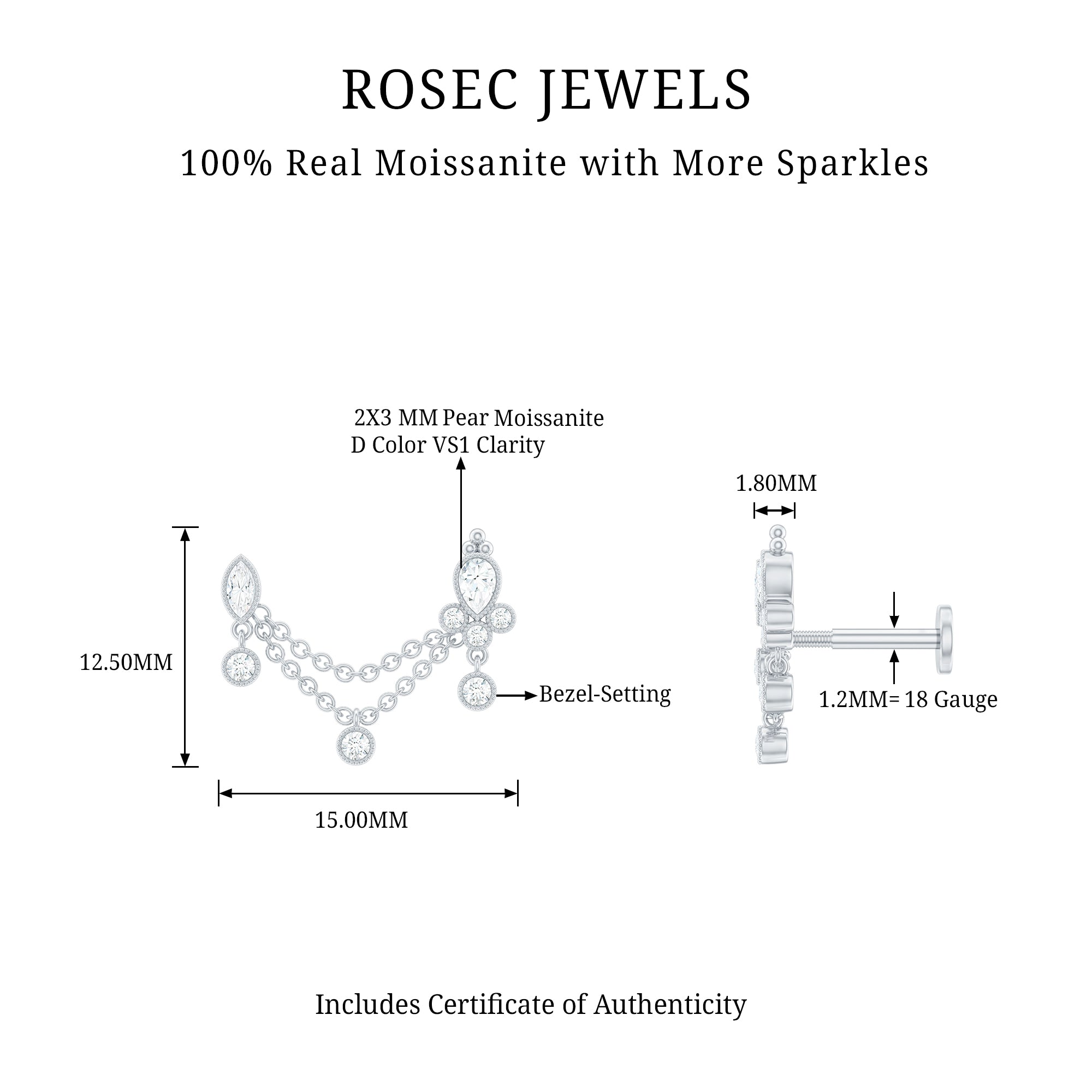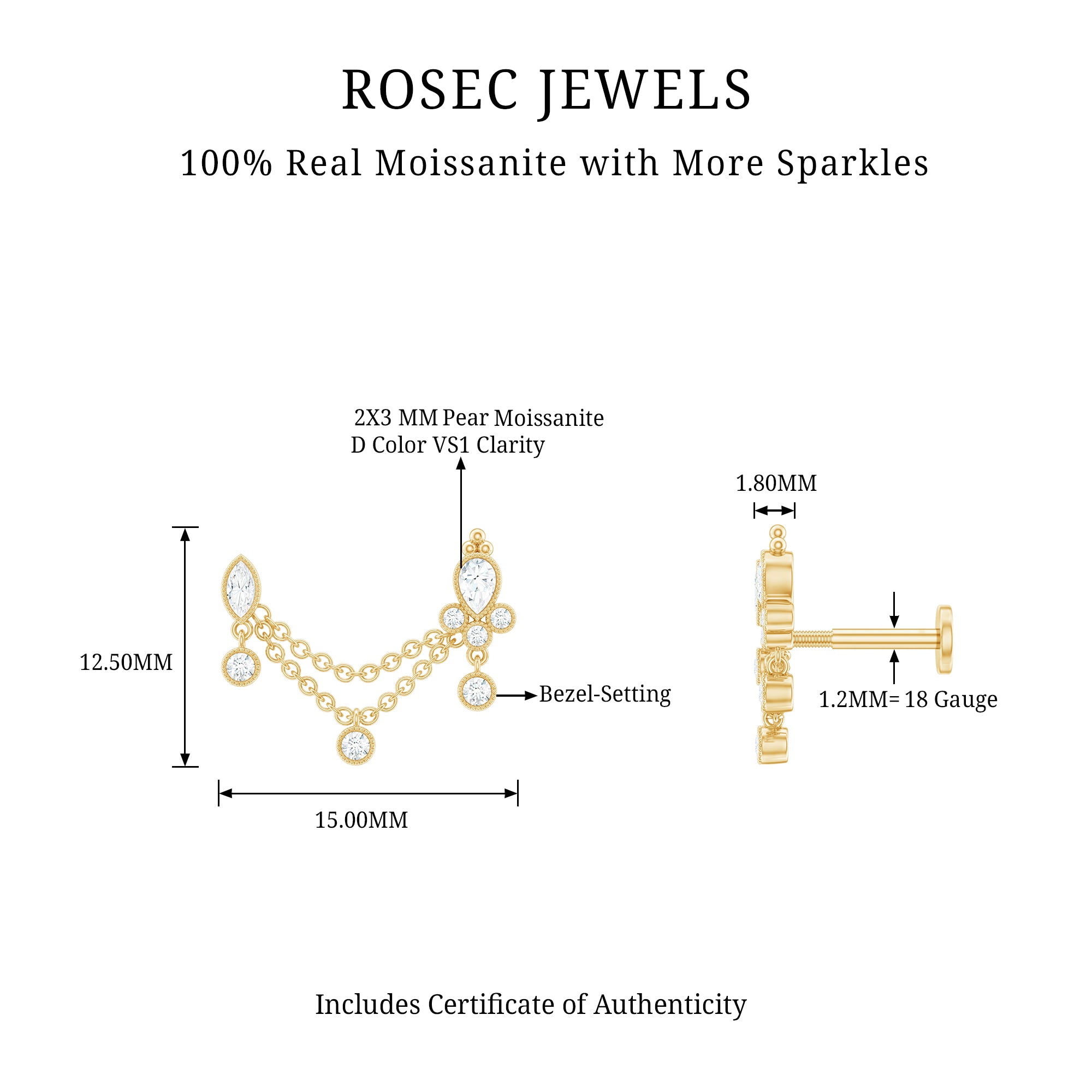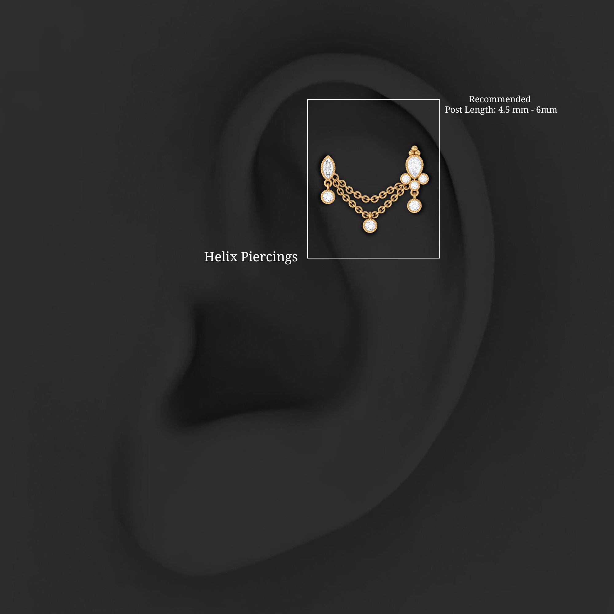Add a touch of luxury to your style with our exquisite Double Chain Earring, designed for double piercings with sparkling Round, Pear, and Marquise Cut Moissanites securely set in prongs. Crafted from high-quality Solid Gold, this earring offer a timeless and elegant look that will elevate any outfit. Whether youre dressing up for a special occasion or adding some glamour to your everyday wear, this Double Chain Earring is sure to impress and make a stunning addition to your jewelry collection.