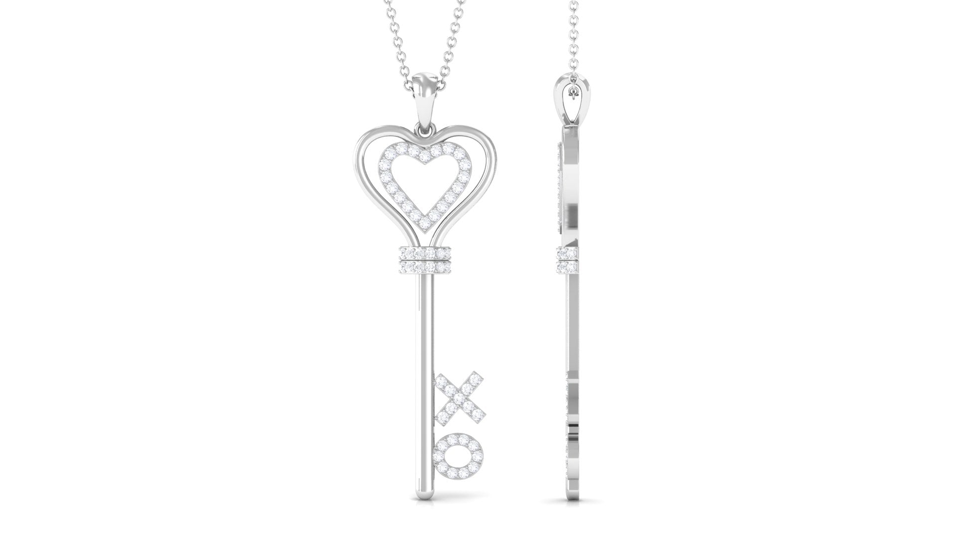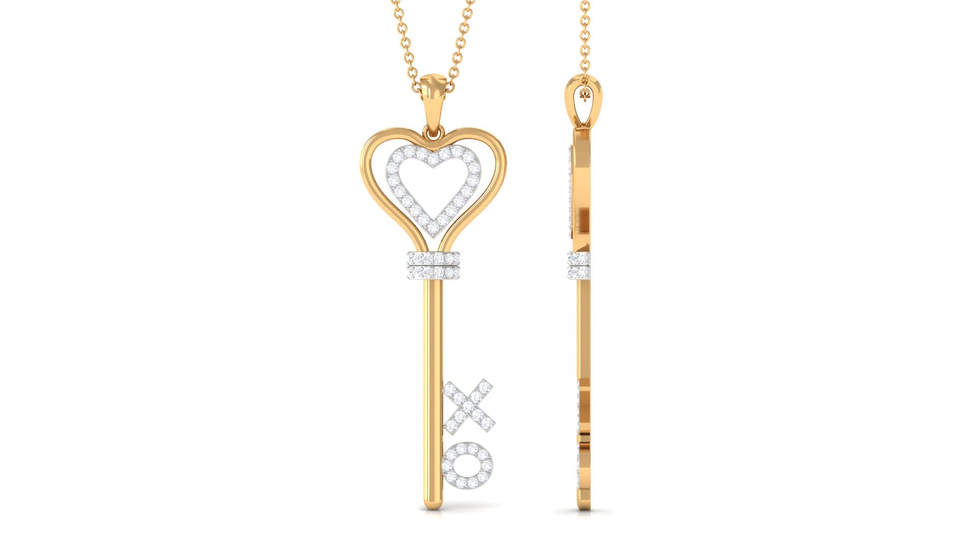 For her who holds the key to your heart, here is a meaningful Heart Key Pendant Necklace that shell treasure forever. The Round Cut Moissanite on Heart frame and XO design on Key Pendant look outstanding on your every outfit. Remind her that she is the one for you with this Moissanite Pendant.