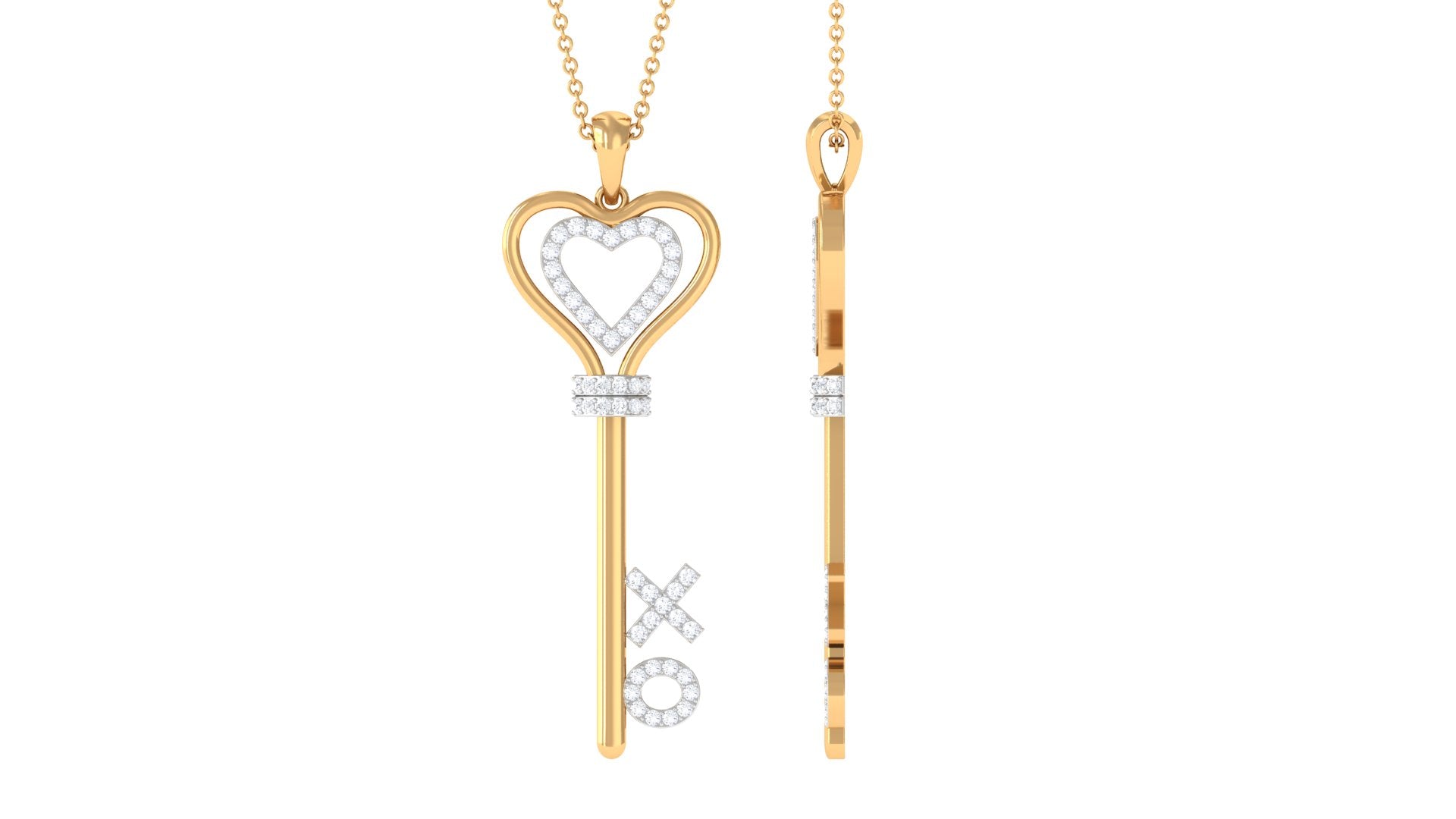 For her who holds the key to your heart, here is a meaningful Heart Key Pendant Necklace that shell treasure forever. The Round Cut Moissanite on Heart frame and XO design on Key Pendant look outstanding on your every outfit. Remind her that she is the one for you with this Moissanite Pendant.