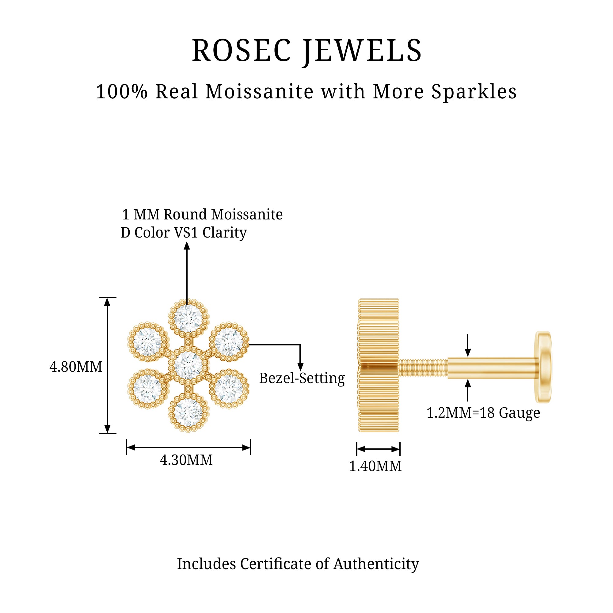 Moissanite Flower Cartilage Earring in Beaded Bezel Setting