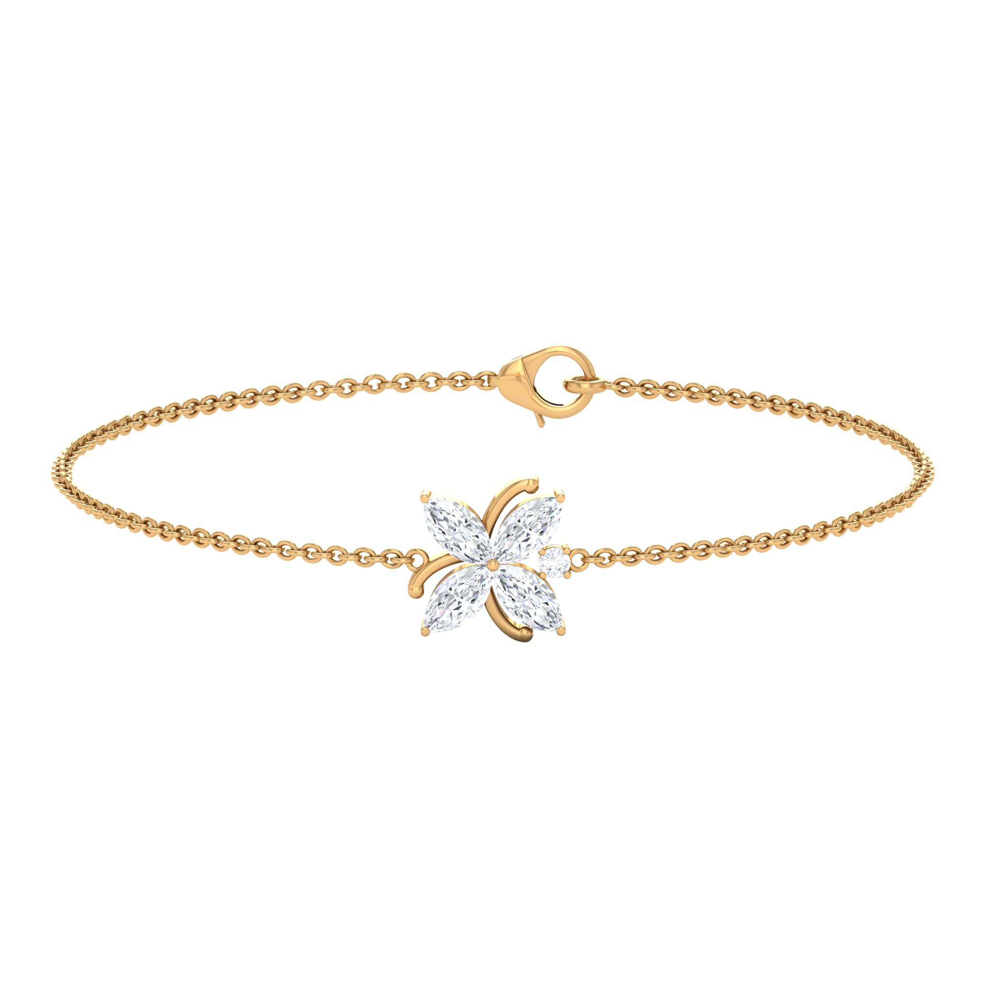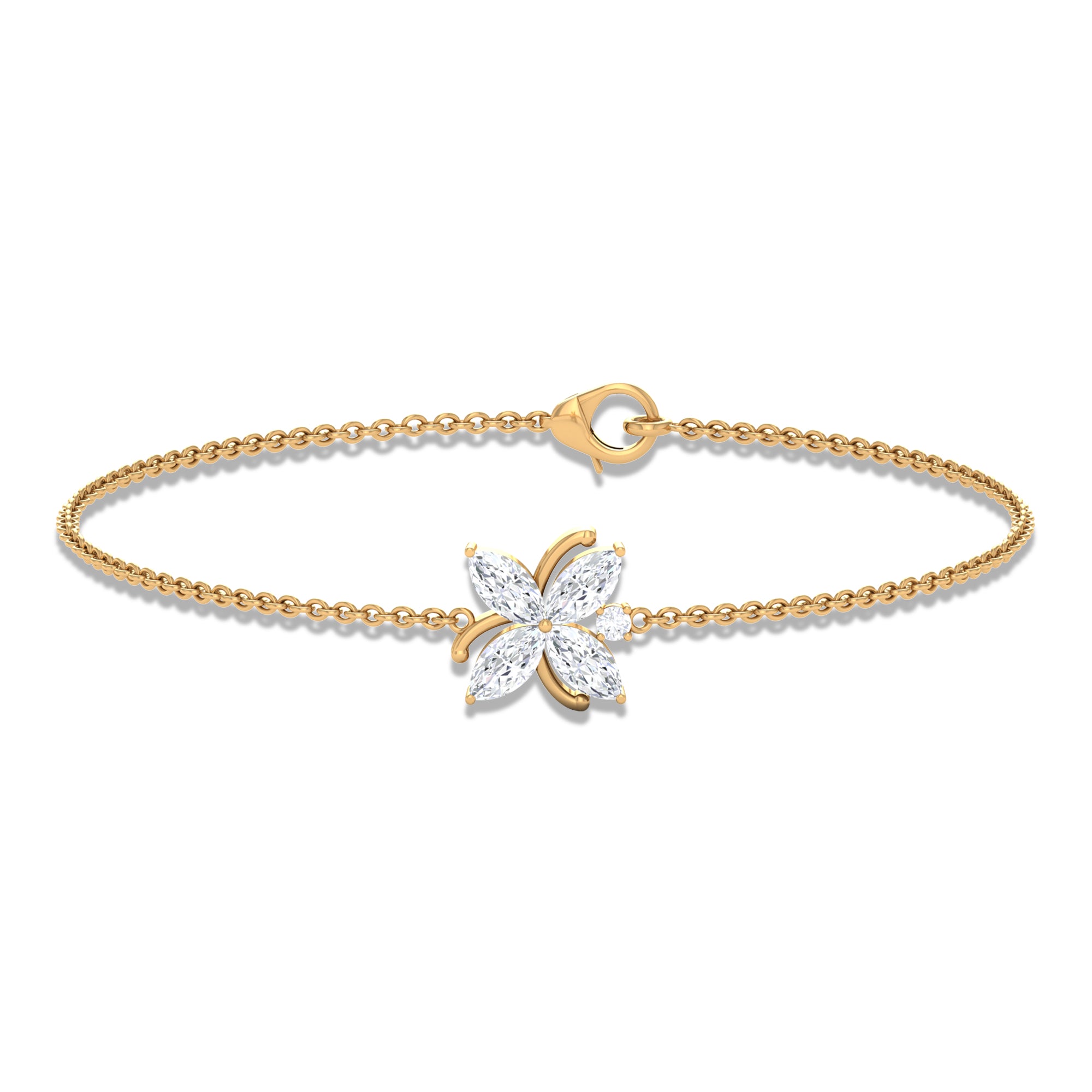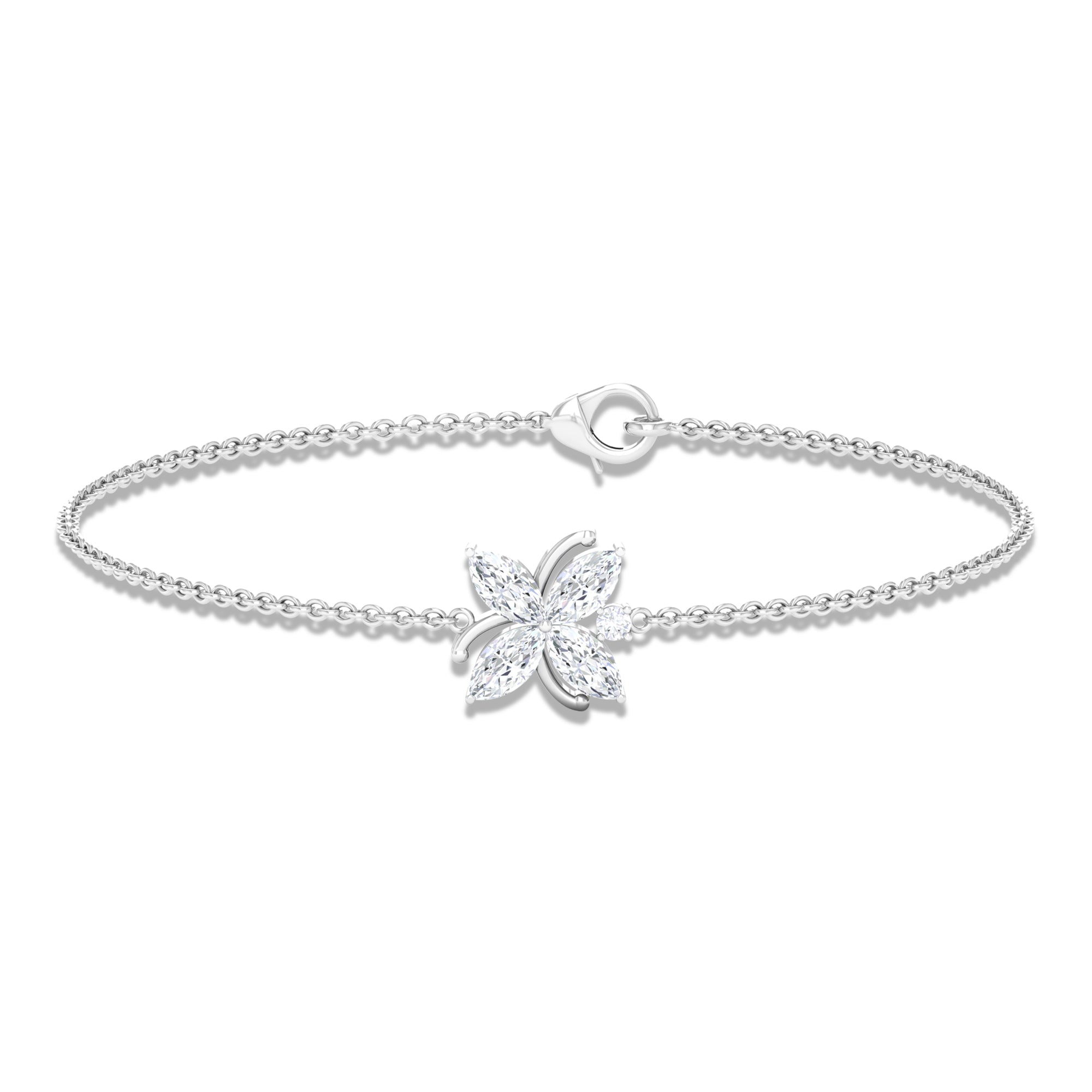The Flower Chain Bracelet is an exquisite piece that enhances your beauty and allure, featuring a dazzling Marquise and Round Cut Moissanite set in the center with a prong setting. Whether for daily wear or a special occasion, the Floral Bracelet will always impress. This Moissanite Chain Bracelet is guaranteed to win hearts. The Chain Bracelet radiates elegance, making it suitable for both formal occasions and daily wear, infusing your outfit with a touch of nature-inspired luxury. Fastened with a Lobster Clasp Closure, this Moissanite Flower Bracelet is crafted to remain comfortably on your wrist throughout the day. Comfortable and simple to wear, this Floral Bracelet pairs beautifully with other chain or stands out on its own for a minimalist appearance. Perfect for gifting or as your favorite bracelet, this Bracelet is adaptable, significant, and easy to cherish.