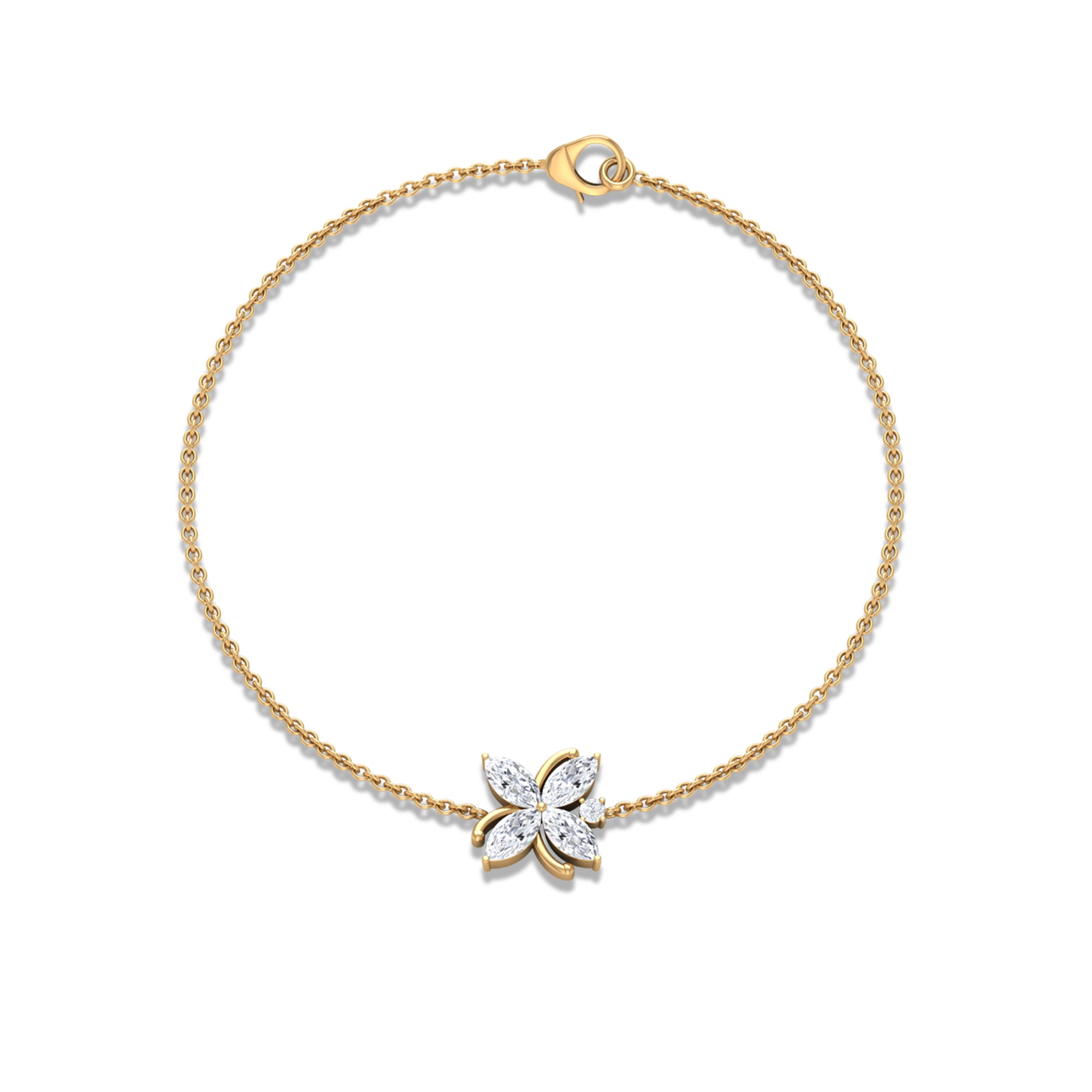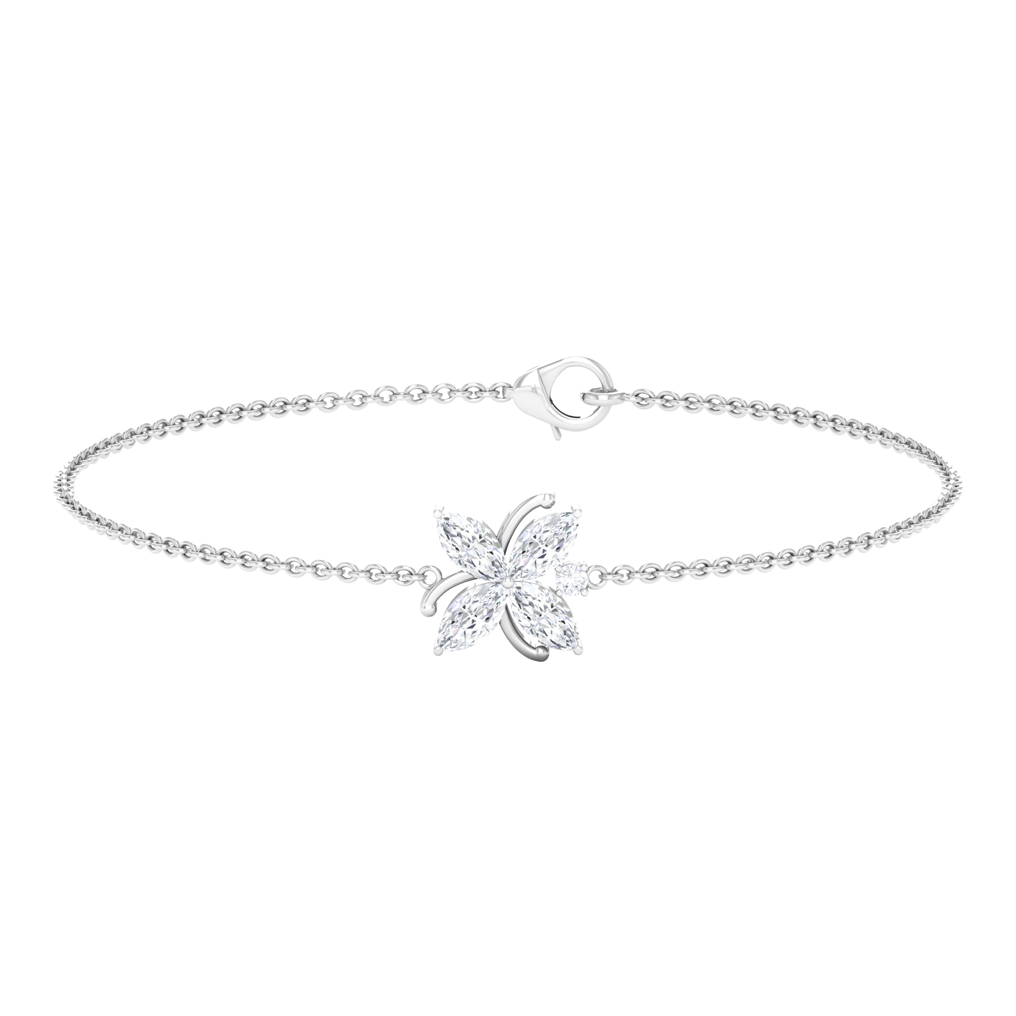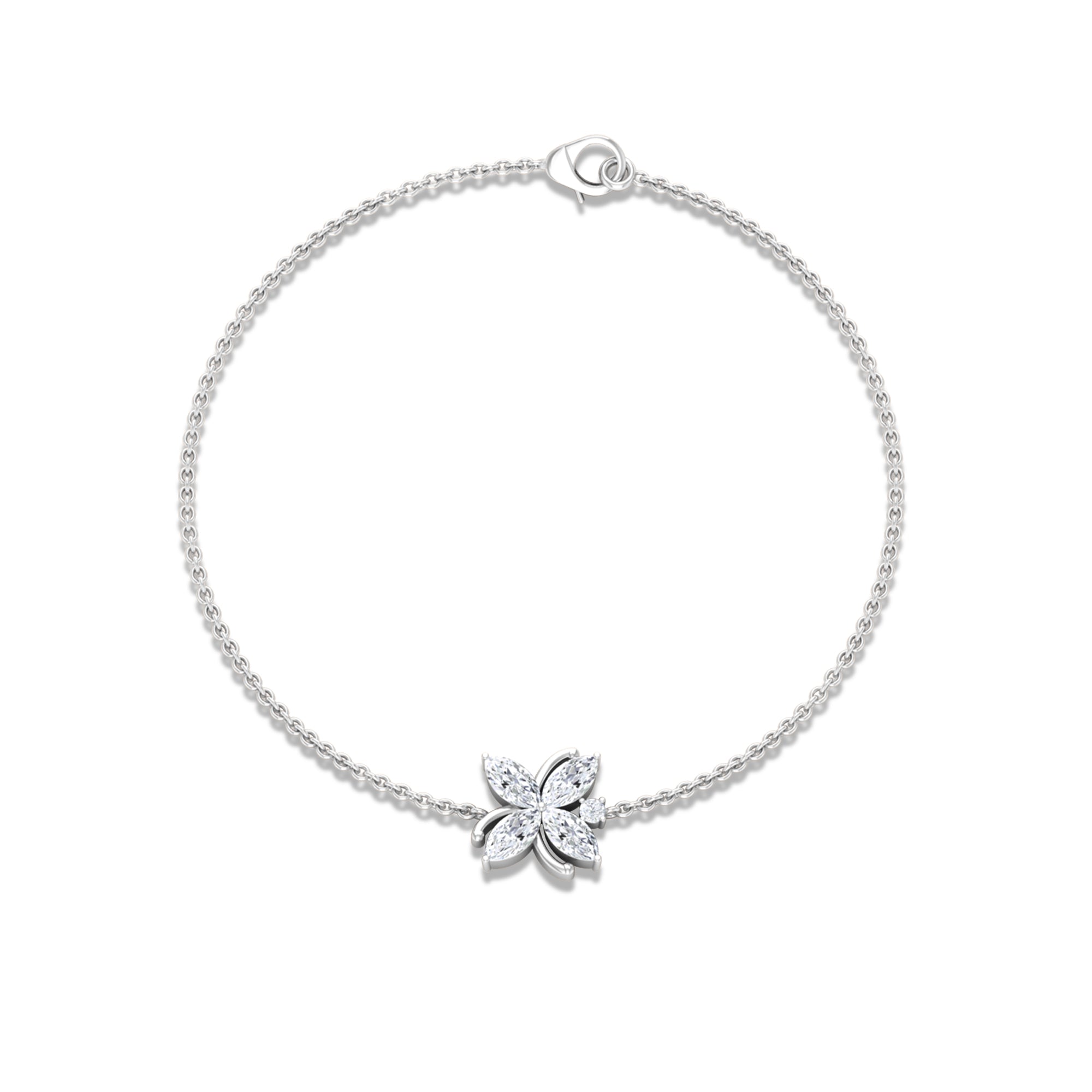 The Flower Chain Bracelet is an exquisite piece that enhances your beauty and allure, featuring a dazzling Marquise and Round Cut Moissanite set in the center with a prong setting. Whether for daily wear or a special occasion, the Floral Bracelet will always impress. This Moissanite Chain Bracelet is guaranteed to win hearts. The Chain Bracelet radiates elegance, making it suitable for both formal occasions and daily wear, infusing your outfit with a touch of nature-inspired luxury. Fastened with a Lobster Clasp Closure, this Moissanite Flower Bracelet is crafted to remain comfortably on your wrist throughout the day. Comfortable and simple to wear, this Floral Bracelet pairs beautifully with other chain or stands out on its own for a minimalist appearance. Perfect for gifting or as your favorite bracelet, this Bracelet is adaptable, significant, and easy to cherish.