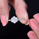 Let your love bloom with this beautifully crafted Flower Engagement Ring, an enchanting piece inspired by nature and full of heartfelt sparkle. At the center of the design is a delicate cluster of round shaped moissanites, arranged in a floral pattern that symbolizes new beginnings and blossoming love. Each stone is of D color and VS1 clarity, offering a brilliant sparkle that lights up the entire Floral Ring. Adding to its charm is the twisted rope style band, which brings a touch of vintage elegance and unique texture. This subtle detail gives the Moissanite Engagement Ring a handcrafted feel, making it stand out from traditional designs. The cluster style also provides a larger, more eye-catching look while keeping the ring lightweight and comfortable to wear every day. Thoughtfully made for those who value beauty and meaning, this Moissanite Flower Ring is a lovely choice for proposals, anniversaries, or even a special self-love gift. It is available in various metal color and purity options and comes packaged in an elegant jewelry box, ready to gift or keep. Romantic, graceful, and refreshingly different, this Womens Moissanite Ring is for the one who believes in love that grows stronger with time, just like a blooming garden.