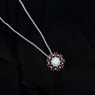 Moissanite Flower Pendant Necklace with Lab Grown Ruby