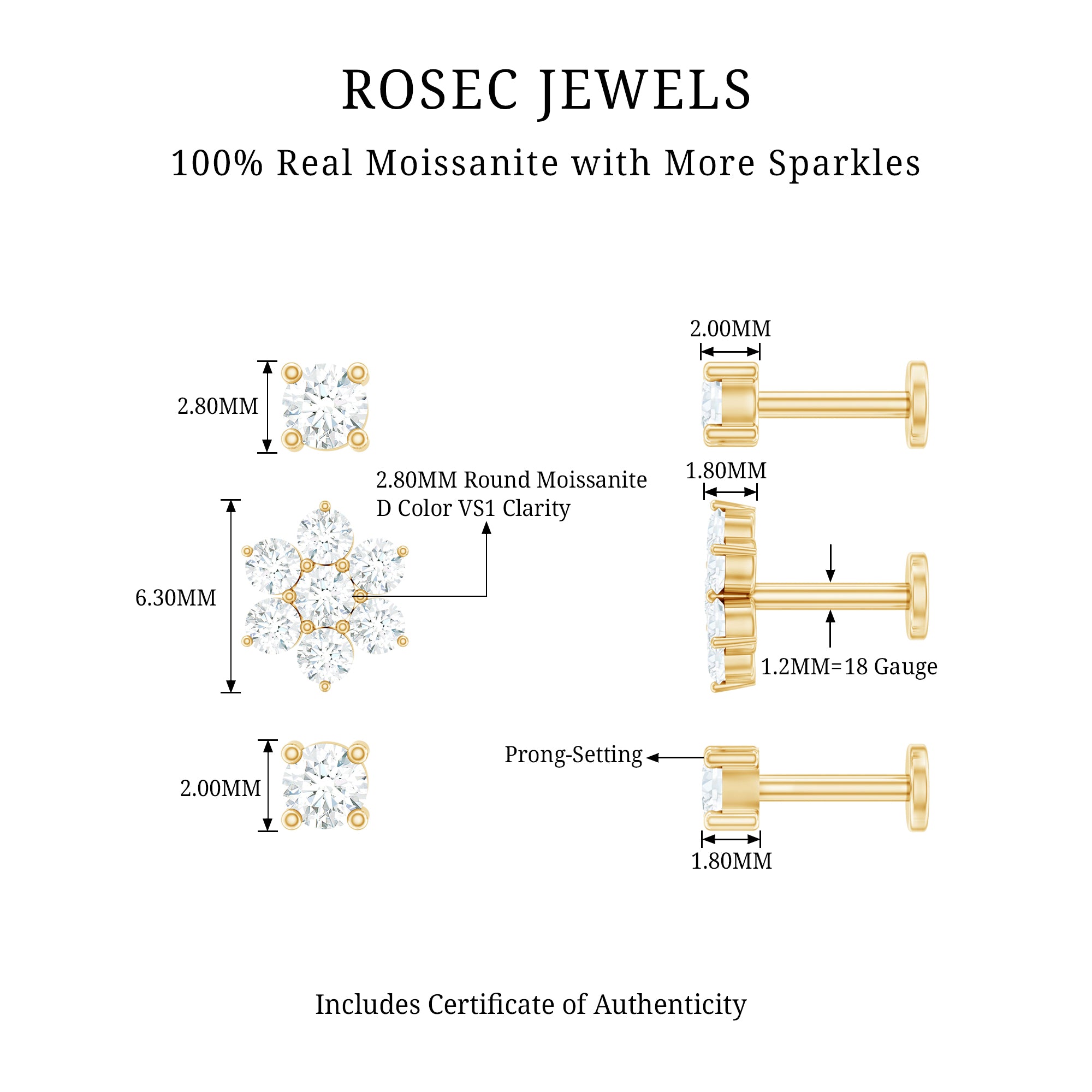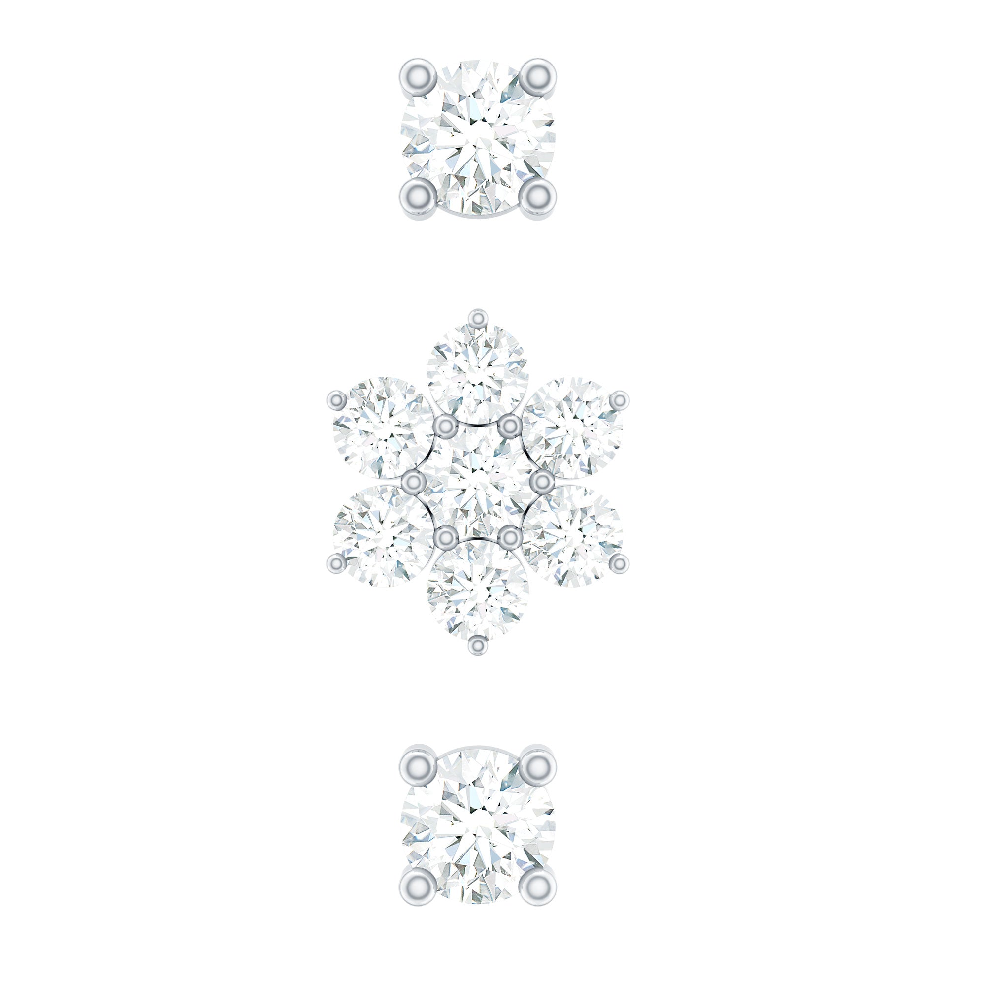 Create a stylish and coordinated ear look with this Flower Earring Set, designed for effortless mixing and matching. The set includes three beautifully crafted earrings - one delicate flower cluster stud and two simple solitaire studs. Each piece is adorned with round cut Moissanite stones, carefully placed in prong setting to enhance their sparkle and shine. Made from high-quality metal, this versatile Triple Earring Set is perfect for multiple piercings. You can wear them on your lobe, cartilage, helix, tragus, or conch to create a unique and layered style that suits your mood. Whether you prefer a minimal look or a more detailed ear stack, this Moissanite Earring Set offers endless styling options. Comfort and security are thoughtfully built into the design. Each earring features a flat back closure, making them easy to wear for long hours without irritation. The lightweight feel ensures they sit comfortably while staying firmly in place throughout the day.