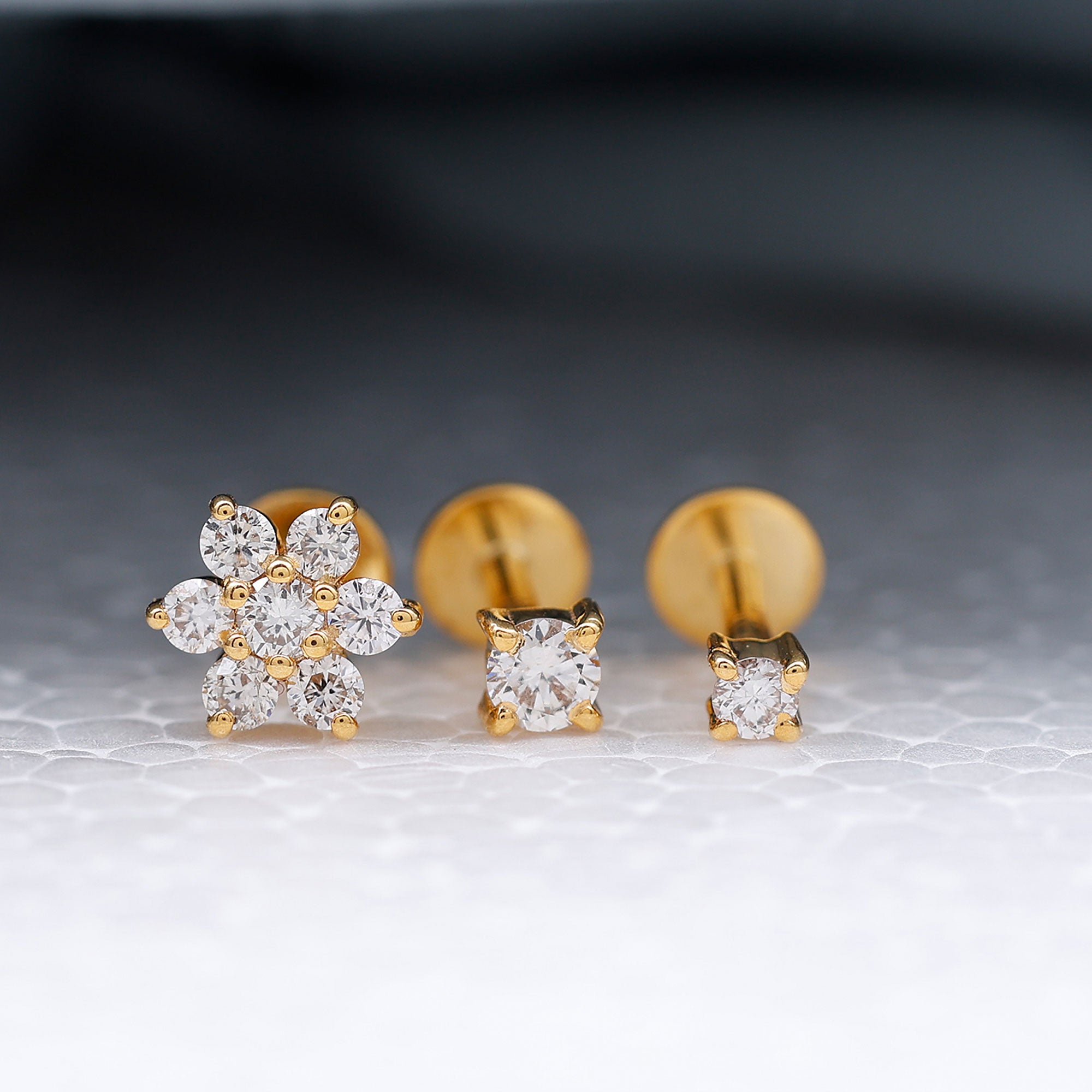 Moissanite Flower Triple Earrings Set for Cartilage Piercing