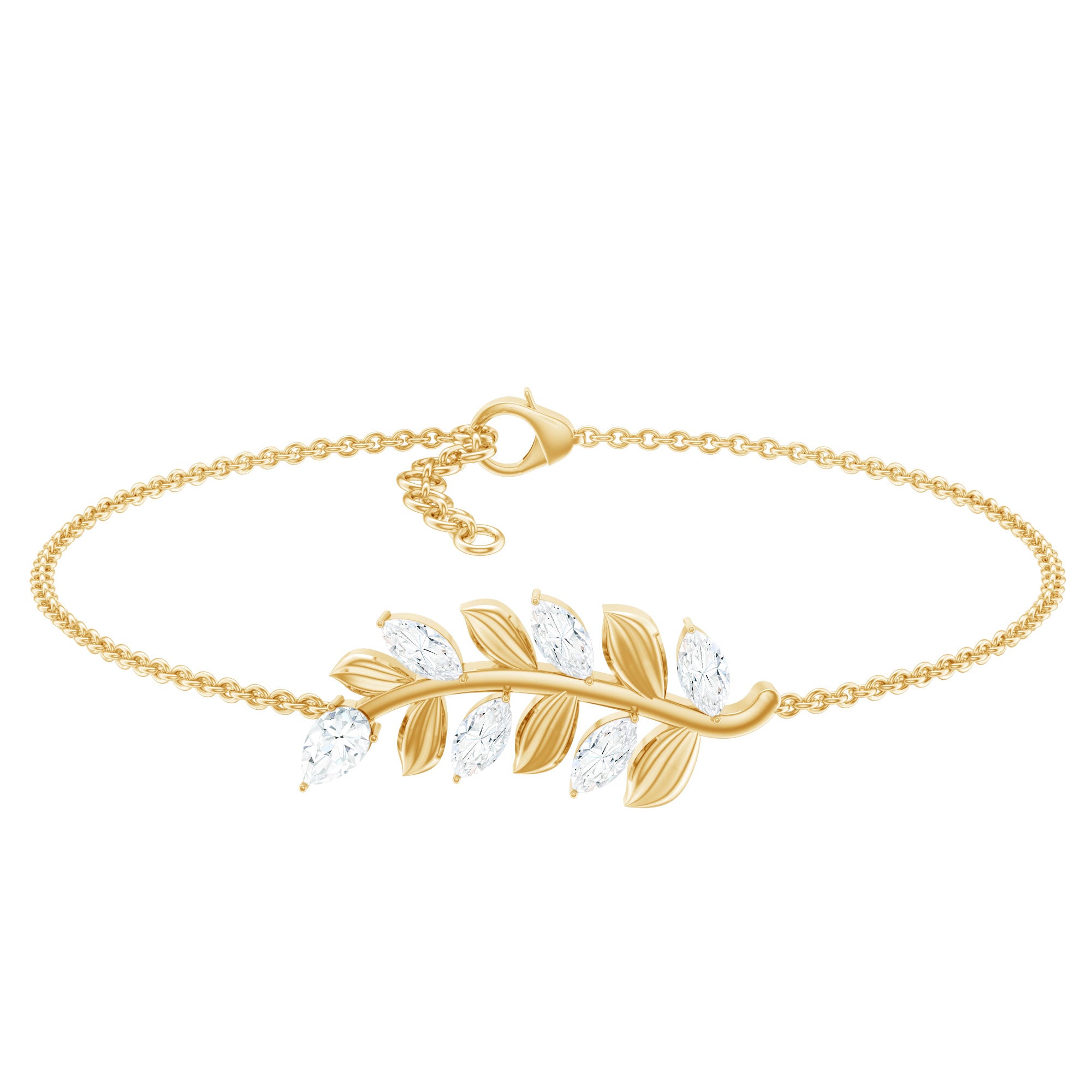 Present this graceful Leaf Chain Bracelet to the lovely lady of your life. This Chain Bracelet is beautified with Marquise and Pear Cut Moissanite Gemstone and Gold set on the chain in an alternative pattern