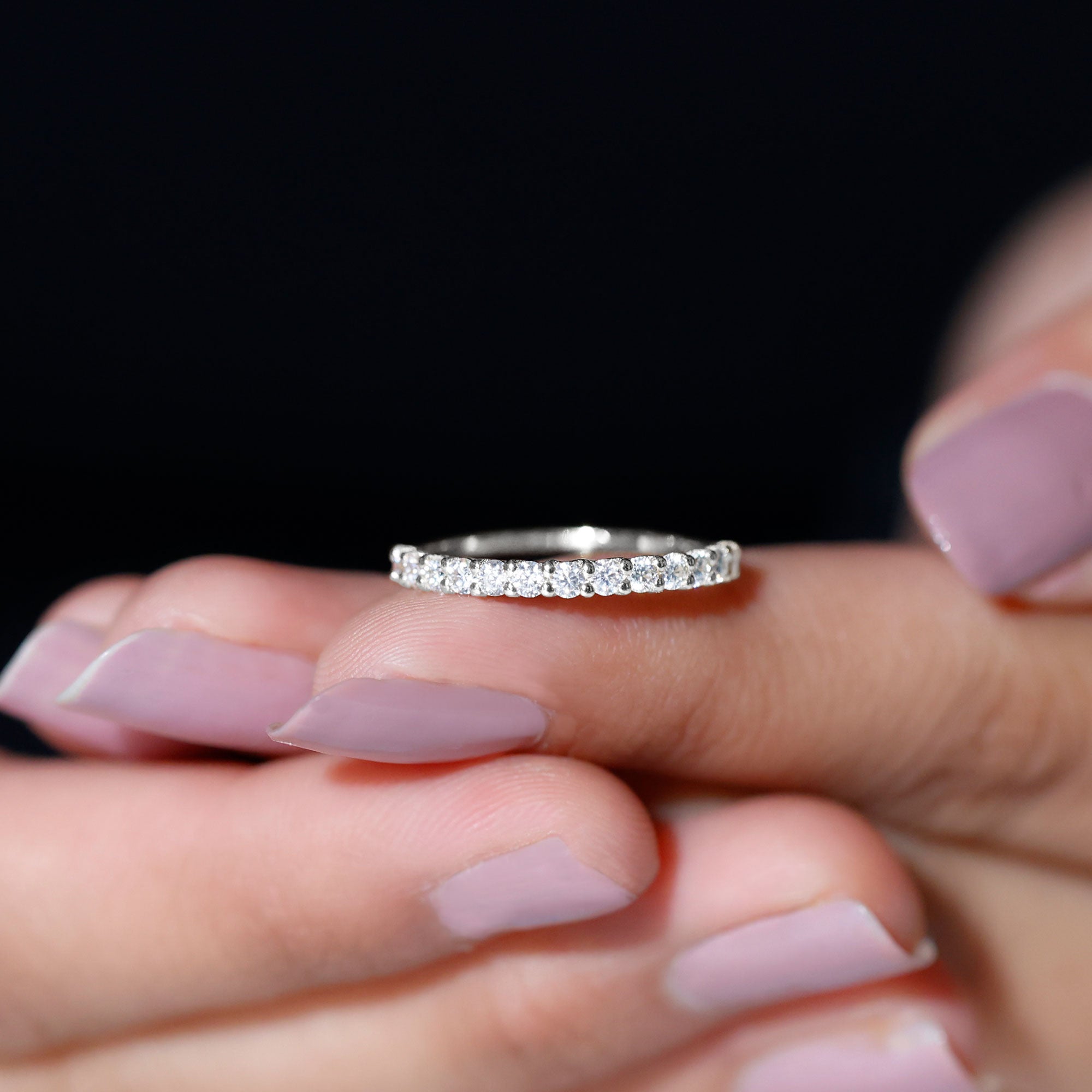 Moissanite Half Eternity Ring in Shared Prong Setting