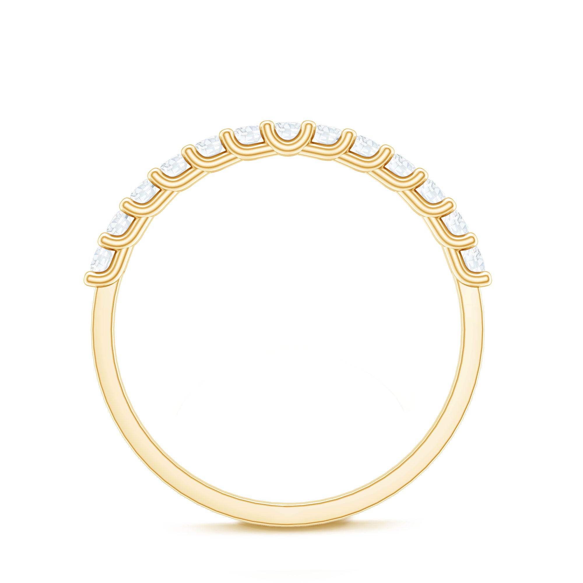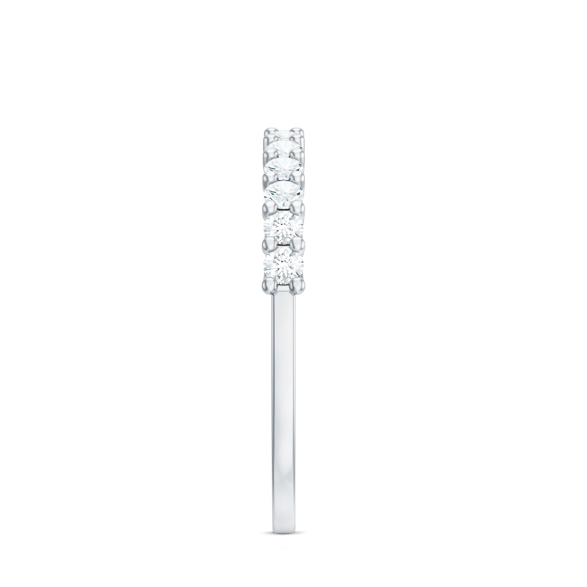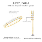 Featuring unmatched beauty and brilliance, the Wedding Anniversary Band boasts a half eternity design embellished with round cut moissanite stones securely held in shared prong setting. This Moissanite Wedding Band effortlessly enhances any outfit with its radiant allure. It highlights the sparkle of D color and VS1 clarity certified moissanite stones, making your celebration even more memorable. This Moissanite Half Eternity Ring will arrive in a signature jewelry box along with a certificate of gemstone authenticity. Celebrate a significant milestone with your partner using this gorgeous Eternity Wedding Band. You can wear it solo for a chic and elegant vibe or stack it with another ring for a more personalized flair. Crafted for comfort and designed to shine for years, this Moissanite Stackable Ring is all about making a bold impression.