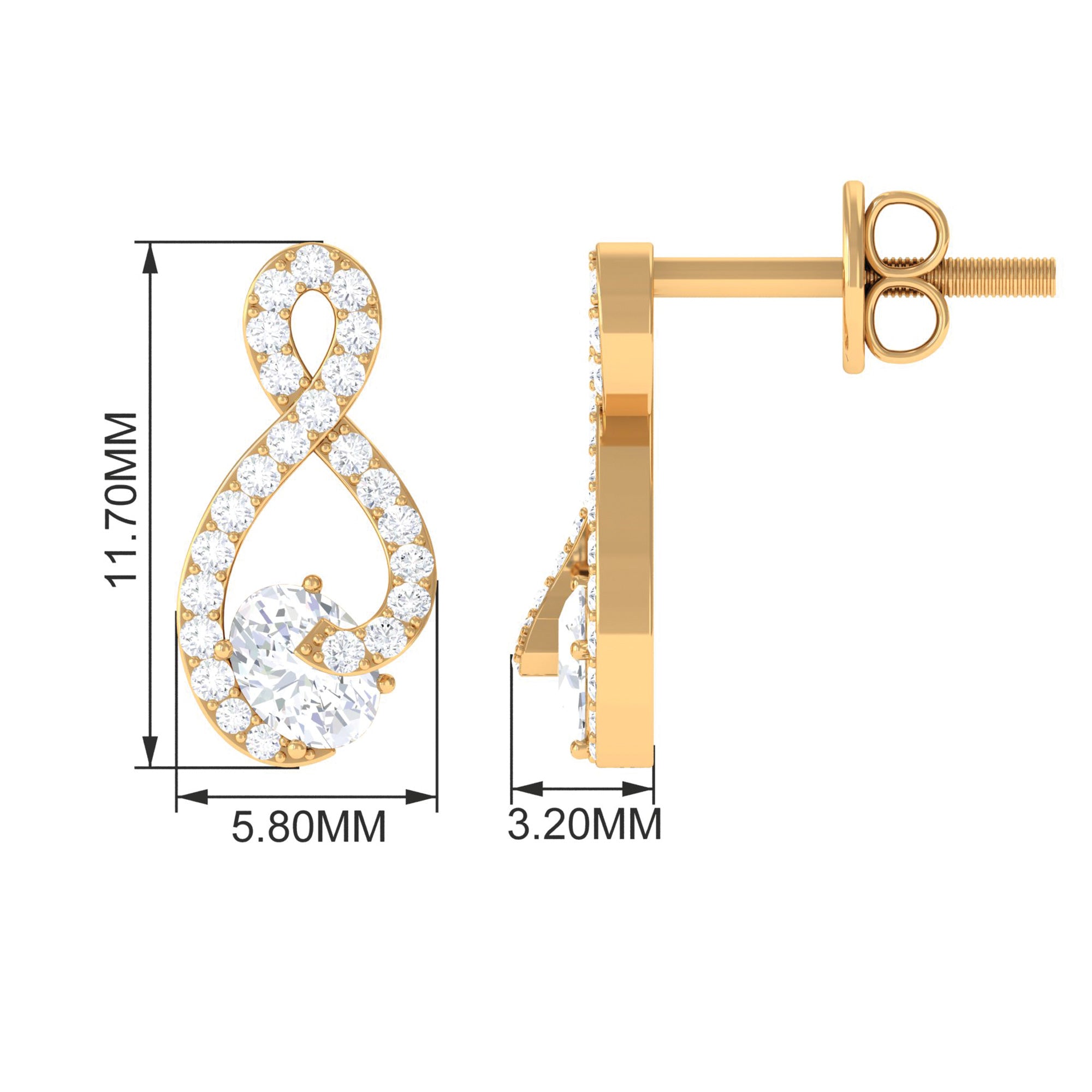 Moissanite Infinity Stud Earrings in Prong Setting