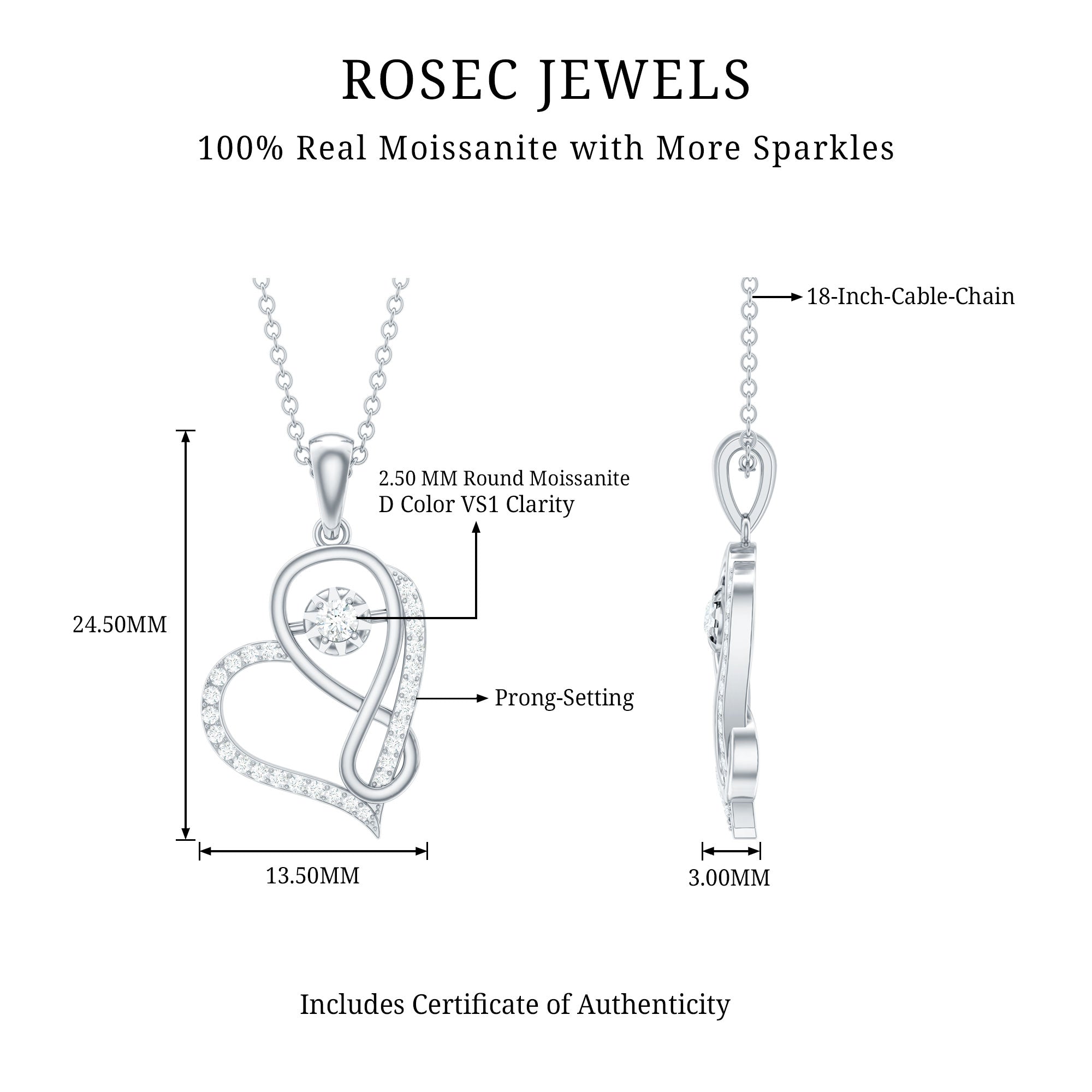 Indulge in admiration for this exquisite Moissanite Pendant that radiates beauty. The Infinity pendant features a Round Cut Moissanite that is meticulously set in a illusion Setting on an Infinity Heart Pendant. This Moissanite Infinity Heart Pendant is a breathtaking piece of jewelry that is sure to enhance your look.
