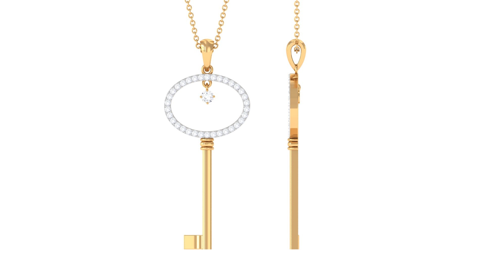 Celebrate another milestone of your life with this Moissanite Pendant. The Round Cut Moissanite in Prong Setting on Key Necklace is to believe in your dreams and make them true. This piece of jewelry would make a perfectly thoughtful present to congratulate on the success.