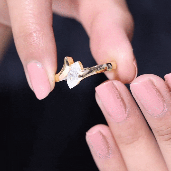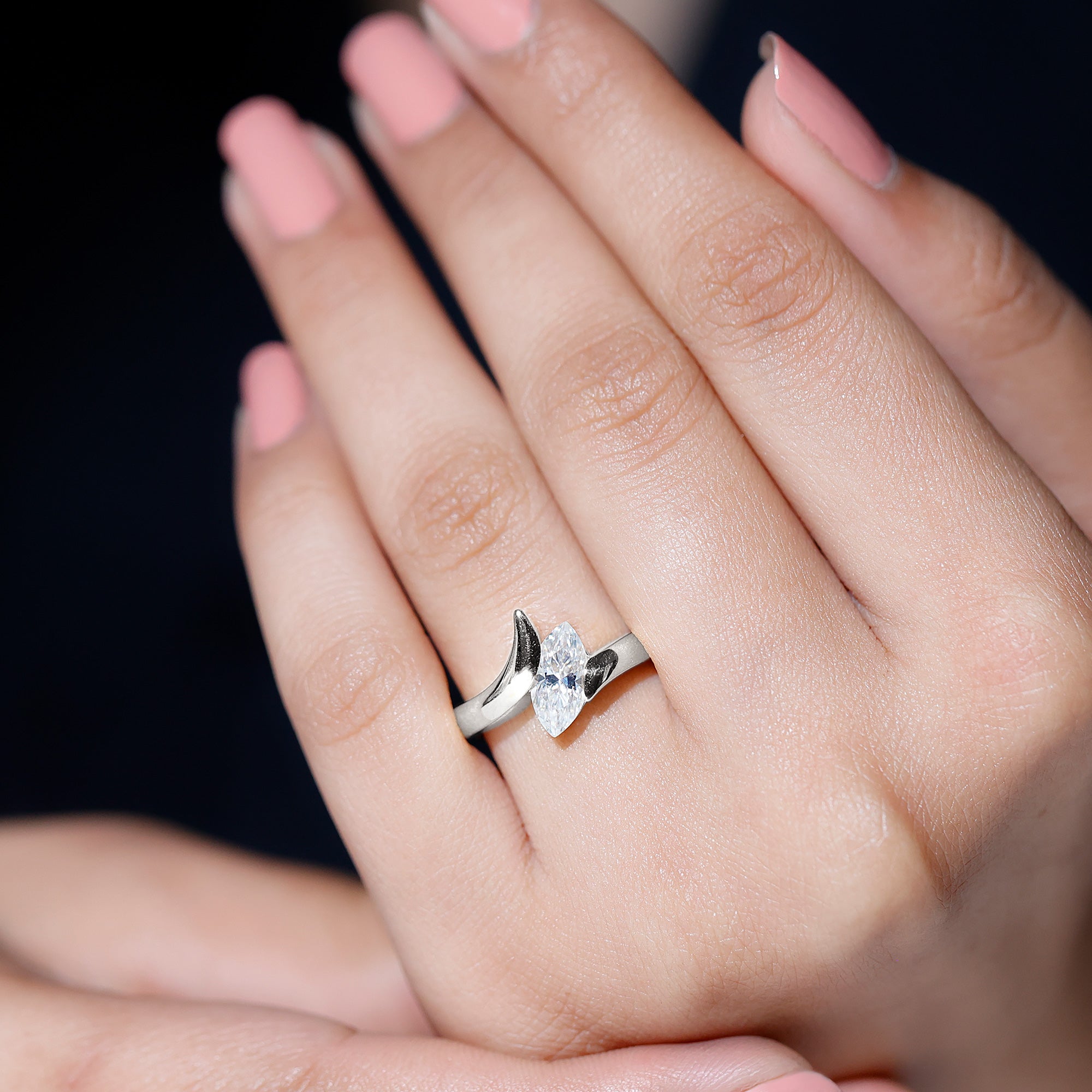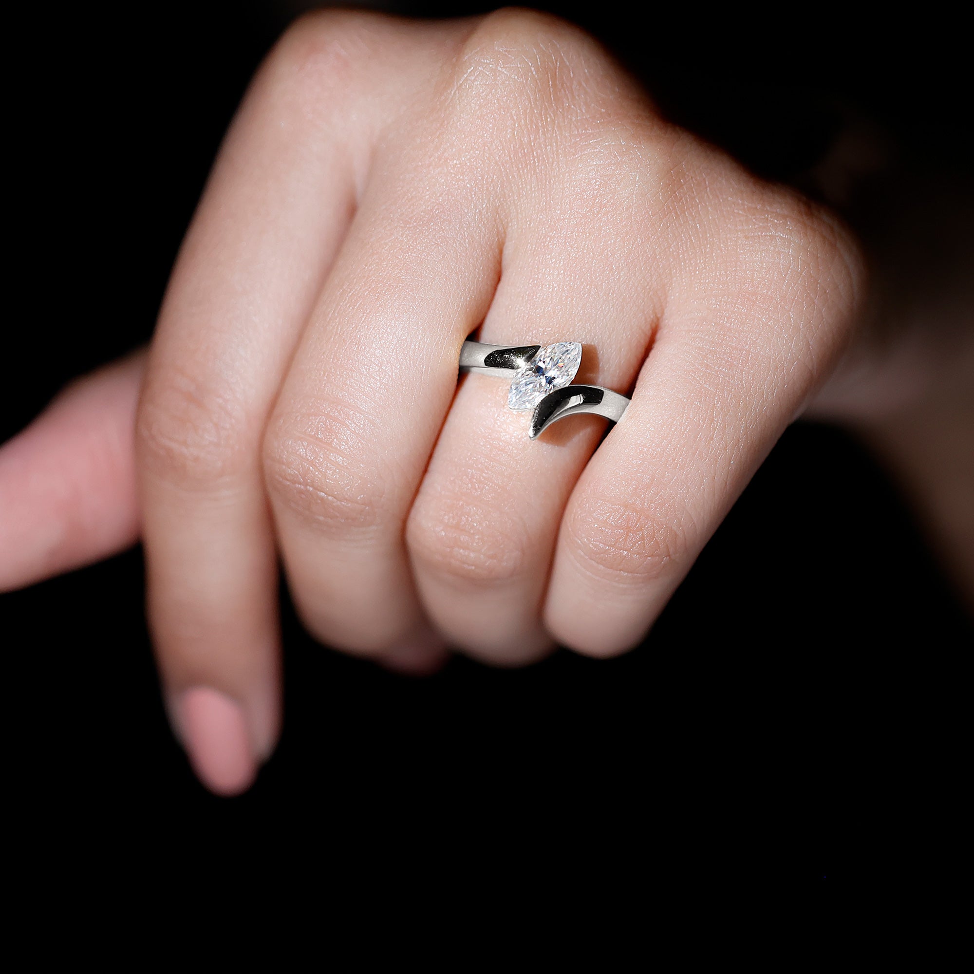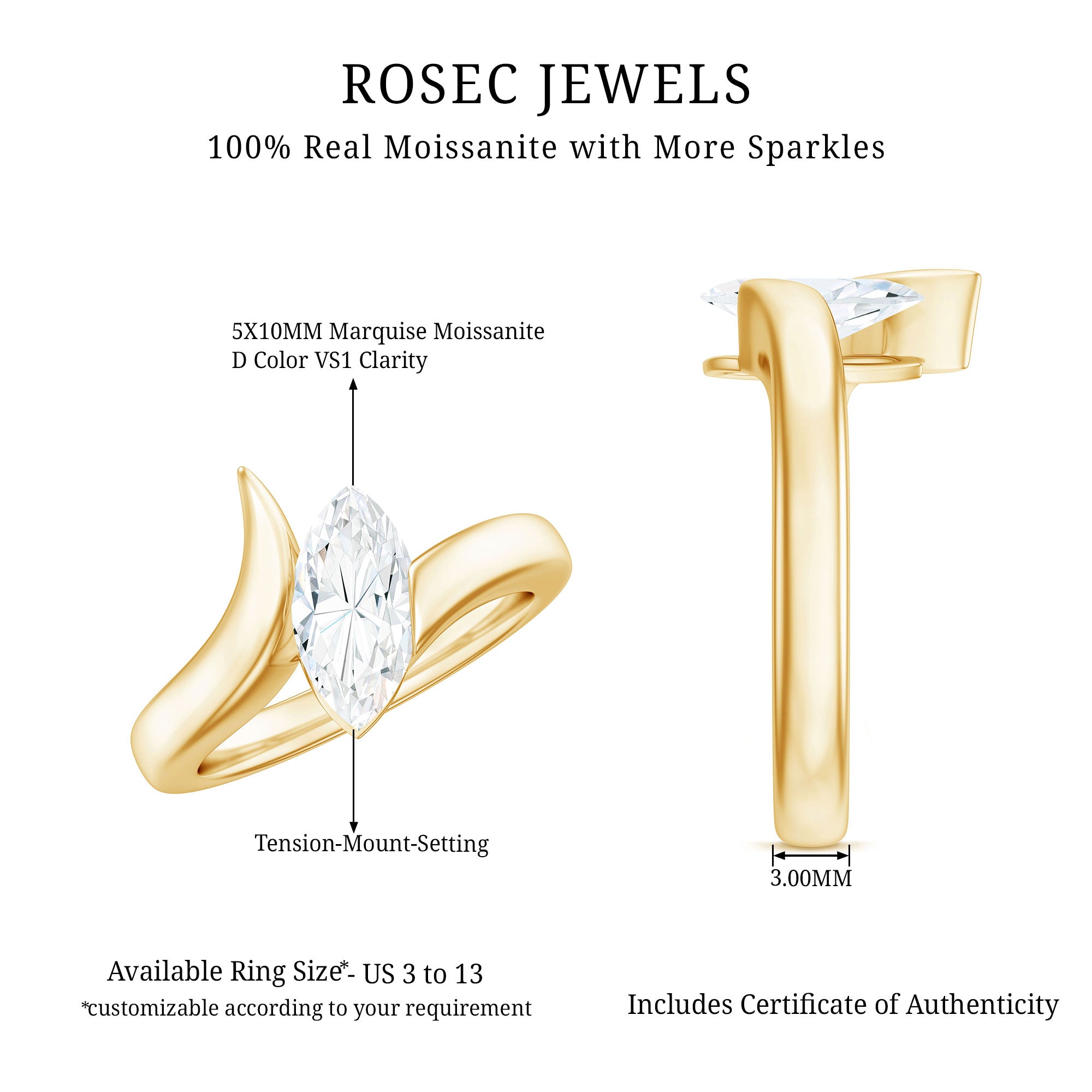 Win her heart with this exquisite Moissanite Engagement Ring, a stunning symbol of enduring love and commitment. Combining classic elegance with a modern twist, this Bypass Ring is a breathtaking choice for the one who holds a special place in your life. At its center rests a dazzling 5X10 MM marquise cut moissanite, securely set in tension mount setting that beautifully showcases the stone’s unique elongated shape. The tension setting not only adds a contemporary edge but also creates the illusion of the moissanite floating effortlessly, making this Solitaire Engagement Ring both eye-catching and comfortable for everyday wear. The graceful bypass design adds fluidity and movement, enhancing the ring’s sparkle while maintaining a timeless, refined aesthetic. Meticulously crafted, this Marquise Engagement Ring is available in a variety of high-quality metal options and finishes, allowing you to personalize it to perfectly suit her style. Offered in US sizes 3 to 13, it ensures a comfortable and precise fit for any wearer. Elegant, sophisticated, and uniquely striking, this 1 Carat Moissanite Ring captures the essence of your love in a way that will shine through every moment you share.