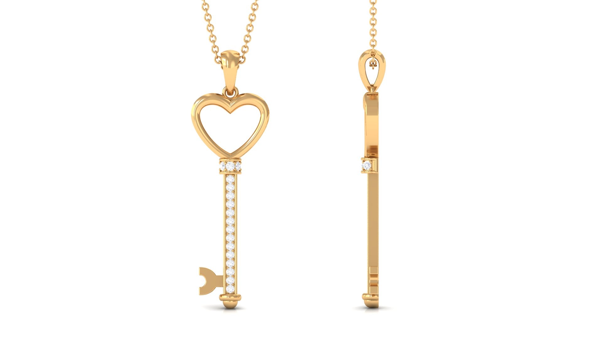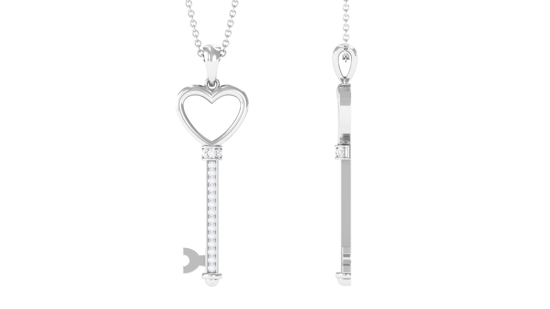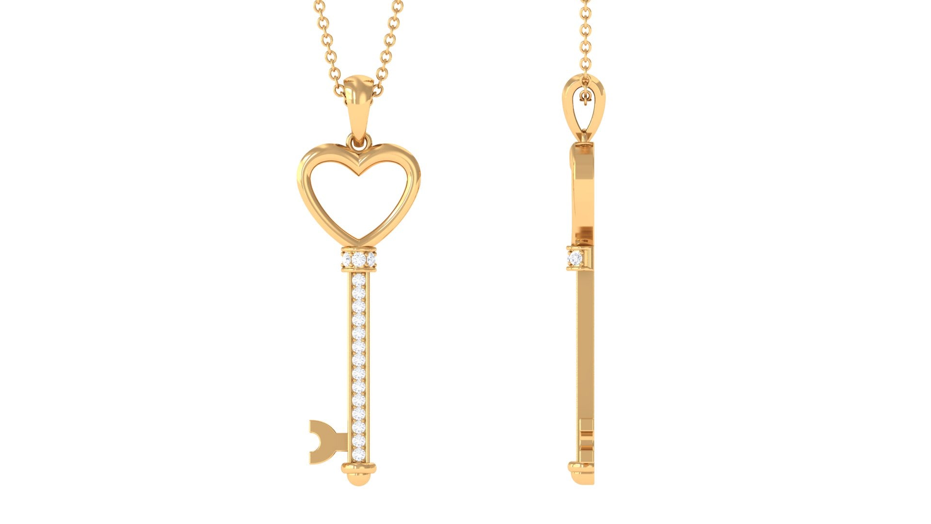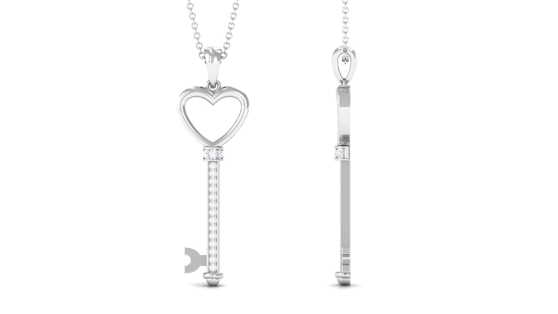 This Moissanite Pendant is subtle and sophisticated jewelry for every occasion. The Round Cut Moissanite in Prong Setting on Key Pendant is an adorable piece that is sure to express all your feelings to her. Matching all your outfit this Moissanite Key Necklace you would want to wear to give your boring outfits some personality.