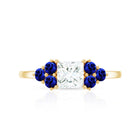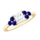 Moissanite Princess Cut Engagement Ring With Lab Grown Blue Sapphire