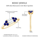 Delicate, timeless, and full of quiet charm, this Moissanite Engagement Ring is designed to reflect elegance in the most effortless way. At the heart of this ring lies a sparkling 5 MM princess cut moissanite of D-VS1 grade set in prong setting. On either side of the center stone are three round cut lab created blue sapphires, carefully chosen for AAAA quality. Their subtle arrangement adds a graceful contrast, bringing a serene pop of color without overpowering the design. This elegant Moissanite and Sapphire Ring is perfect for someone who appreciates classic beauty with a twist of color. Whether you are marking a special moment or planning a heartfelt proposal, this piece speaks of love, thoughtfulness, and enduring simplicity. The Promise Engagement Ring is available in multiple metal options, ring sizes, and finishes, allowing you to personalize it just the way you like. It also comes with a certificate of gemstone authentication and is presented in a charming jewelry box , ready to gift, or to keep safe as a treasured keepsake.