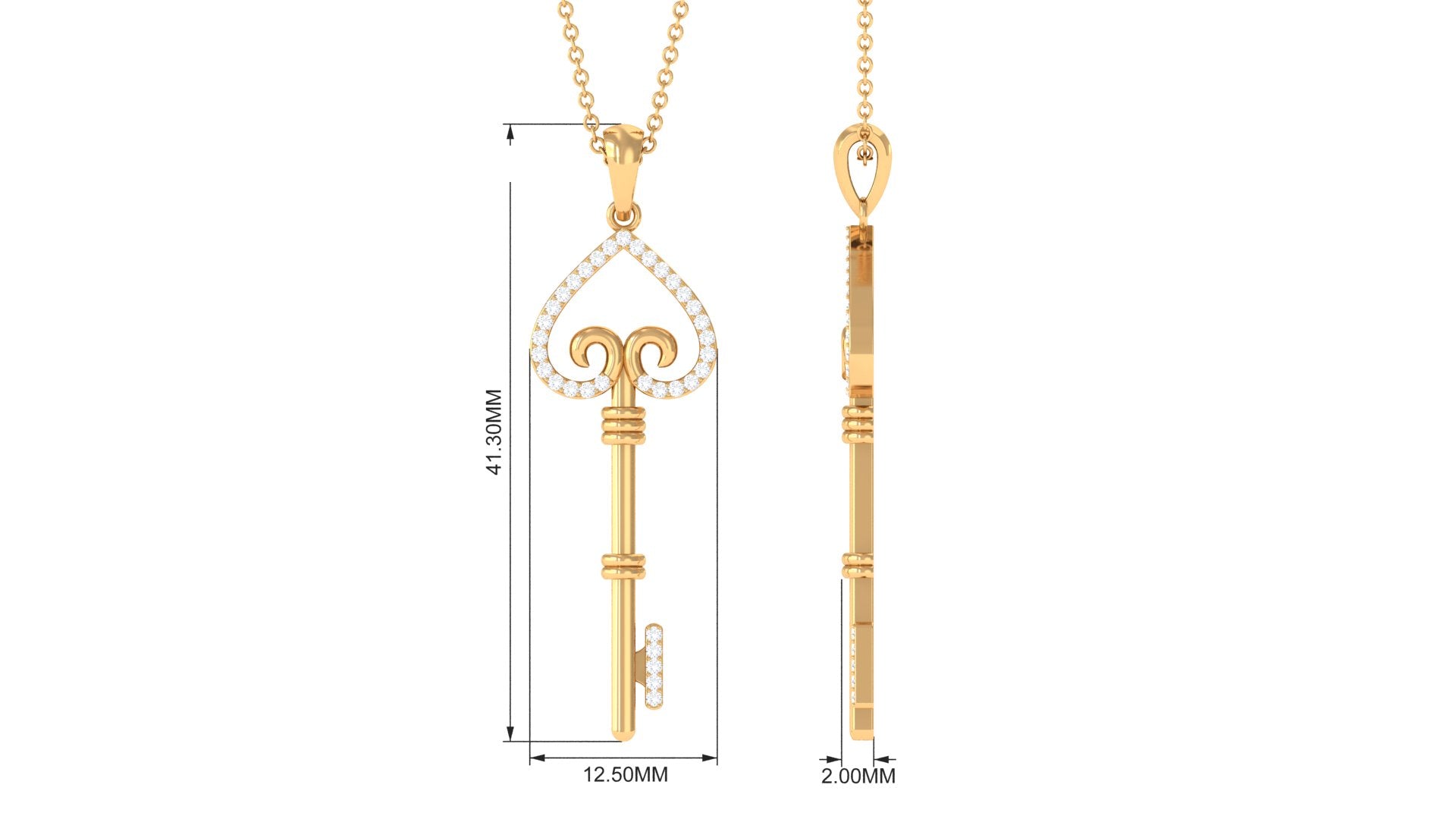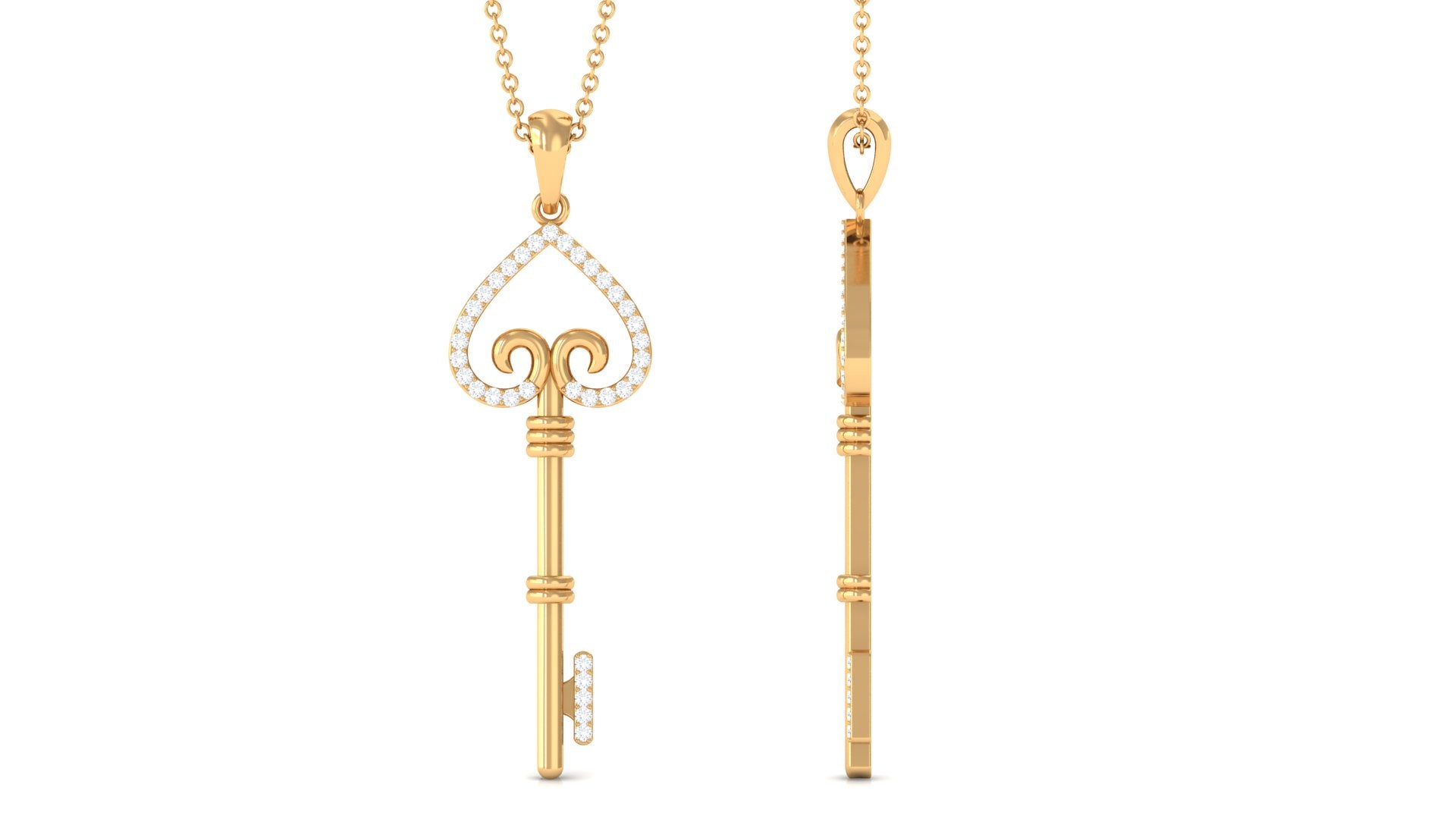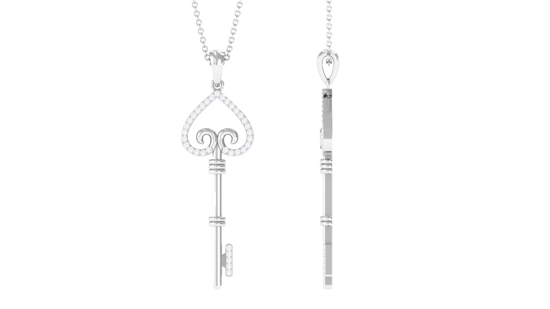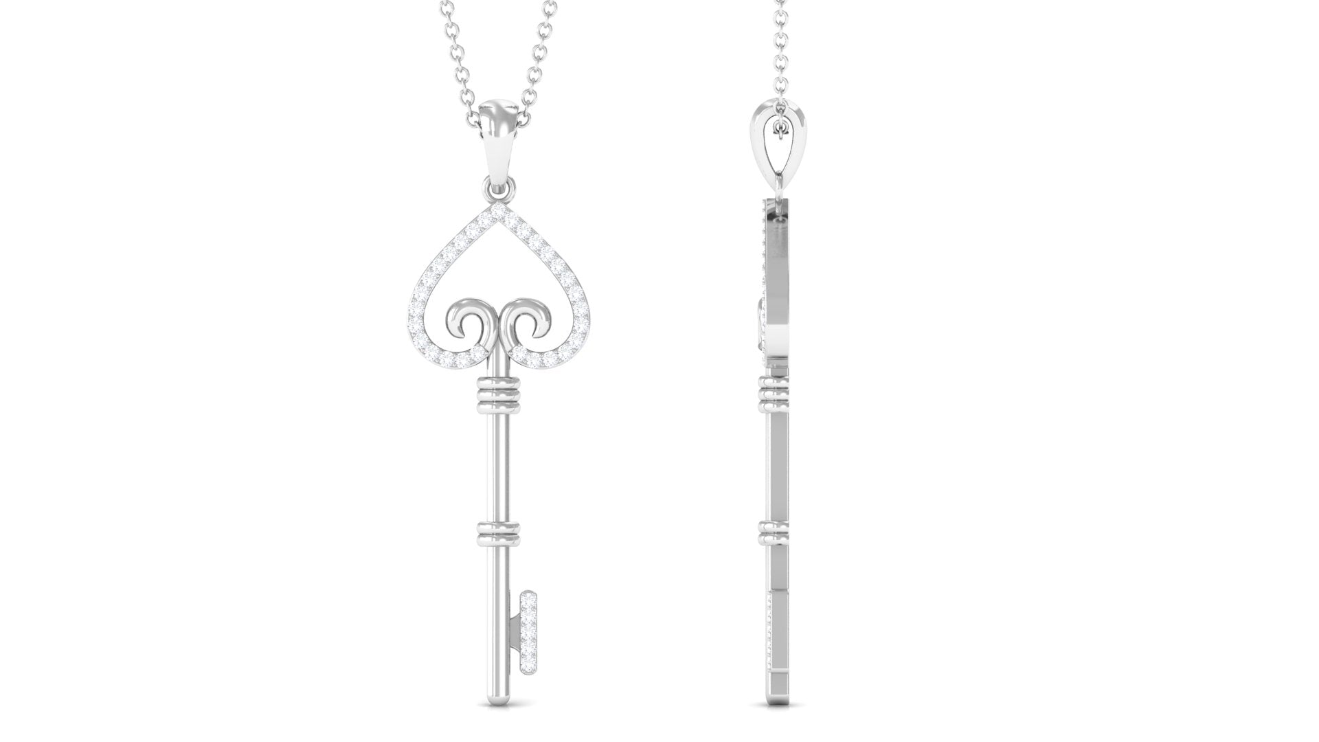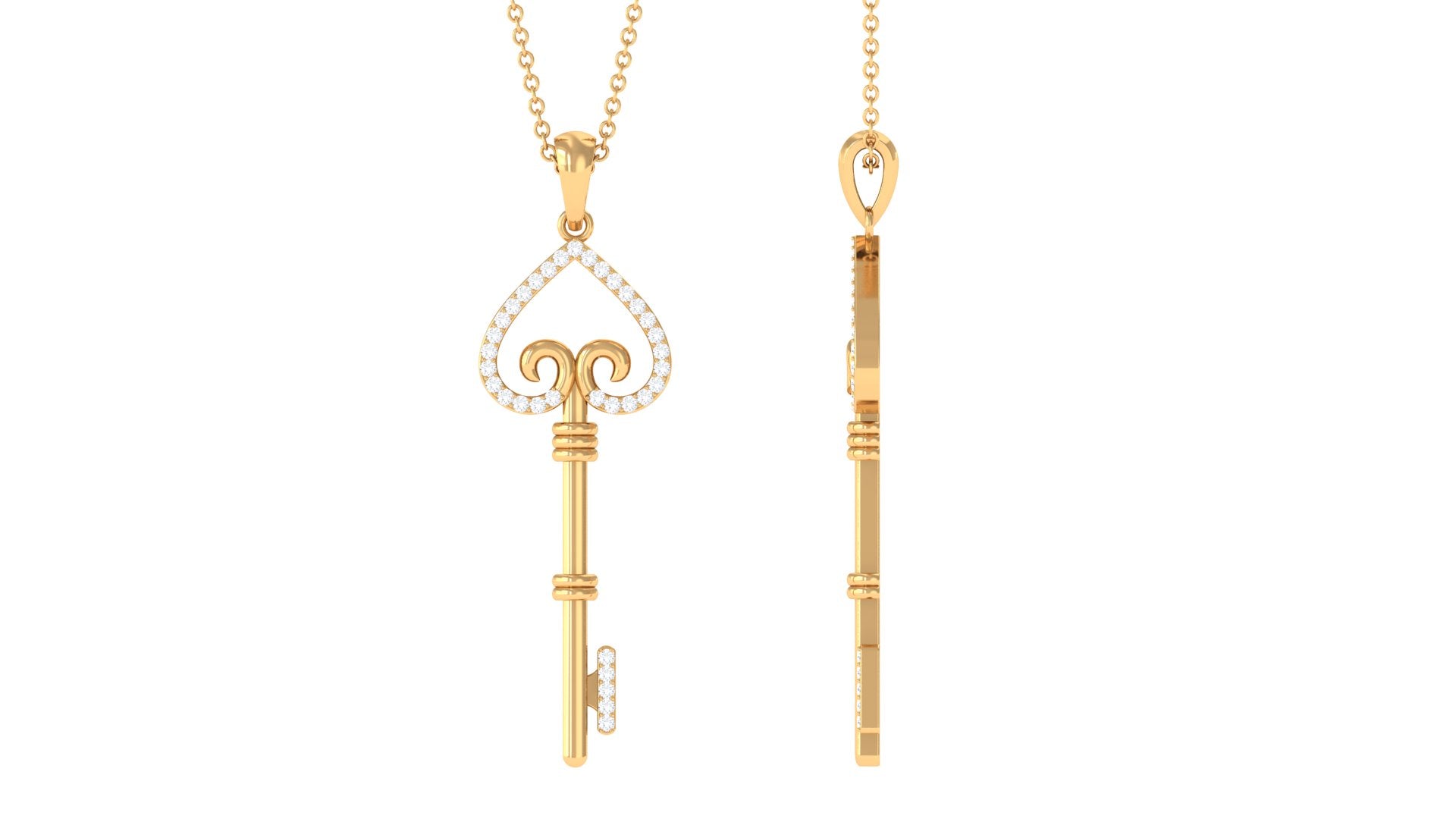 Moissanite Simple Heart Key Pendant Necklace