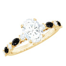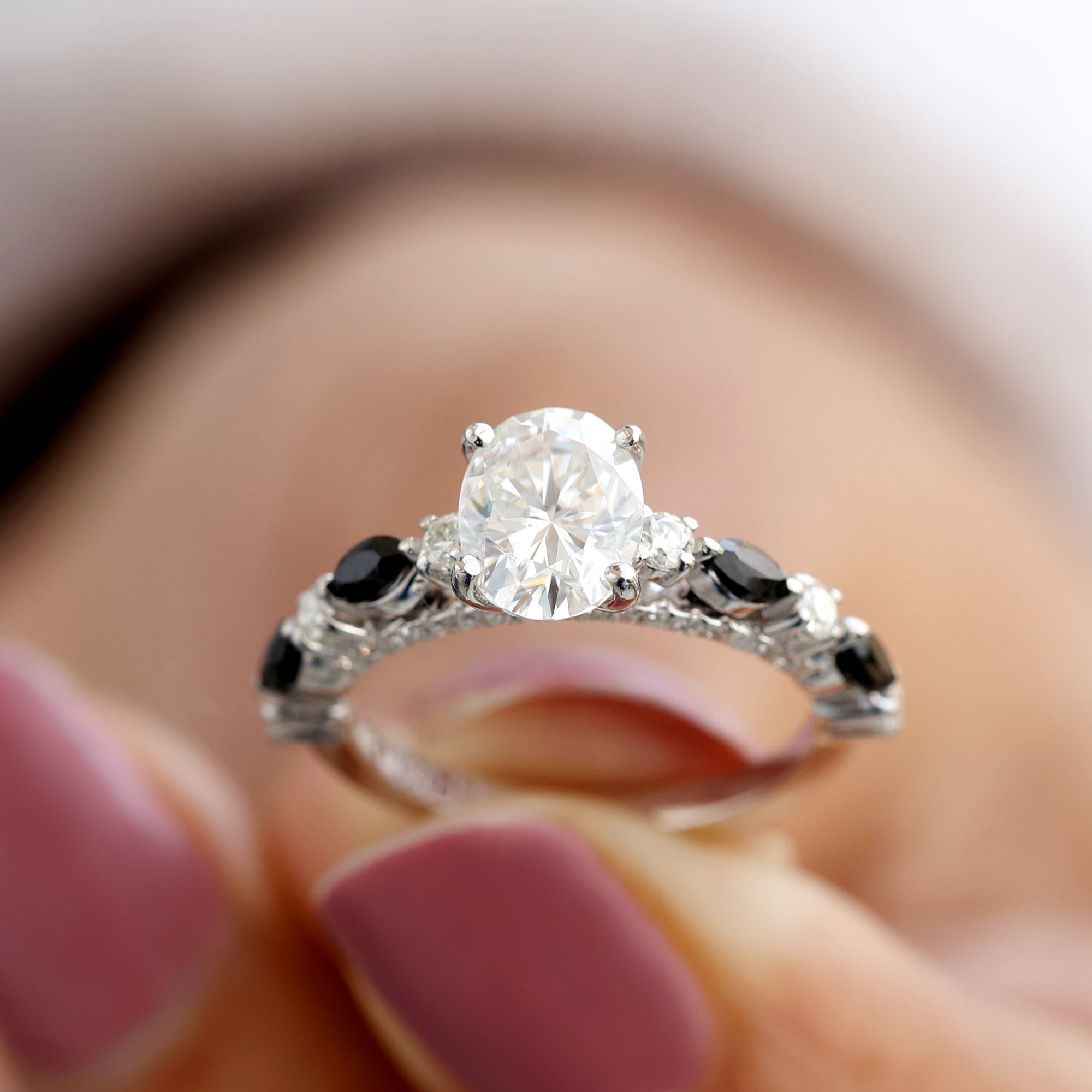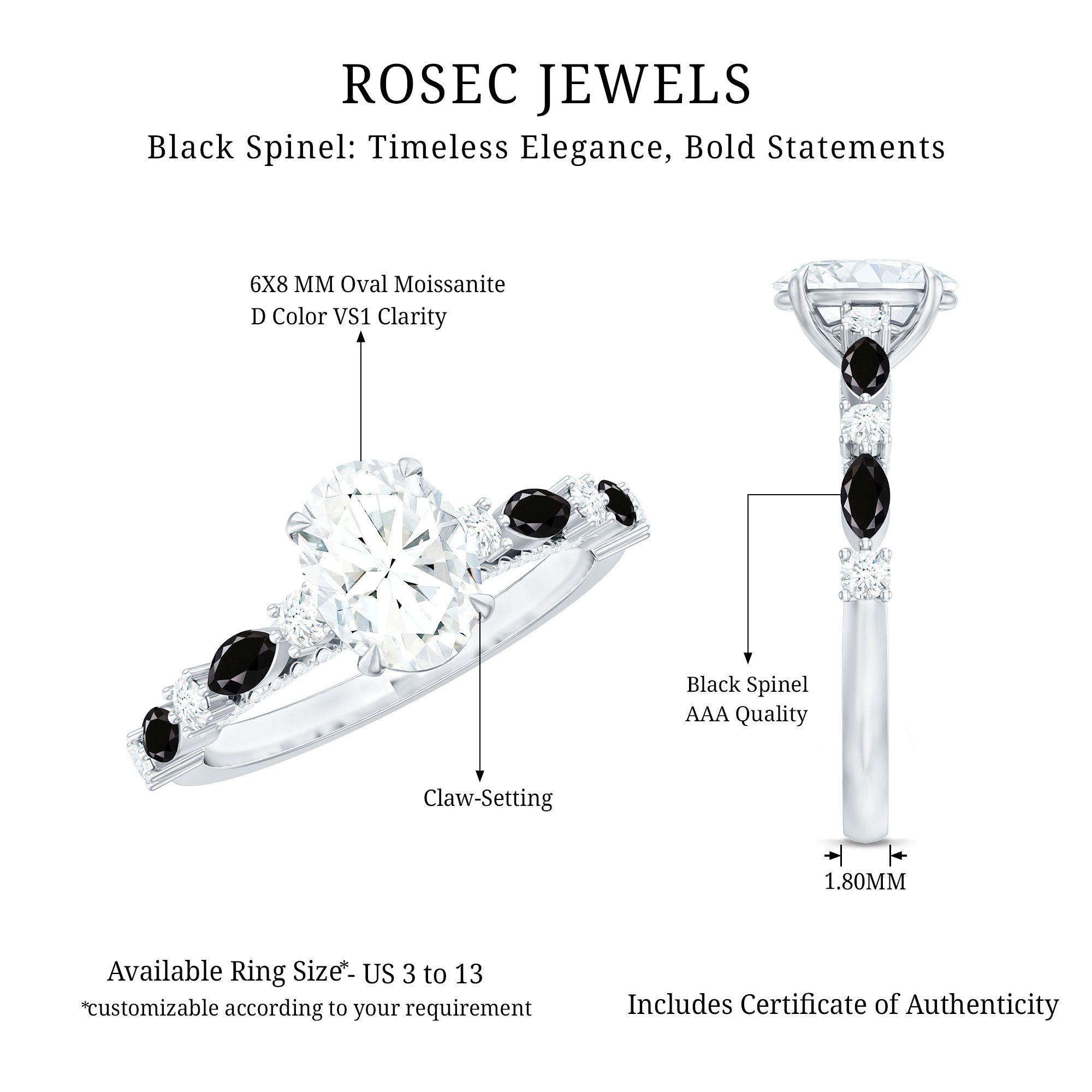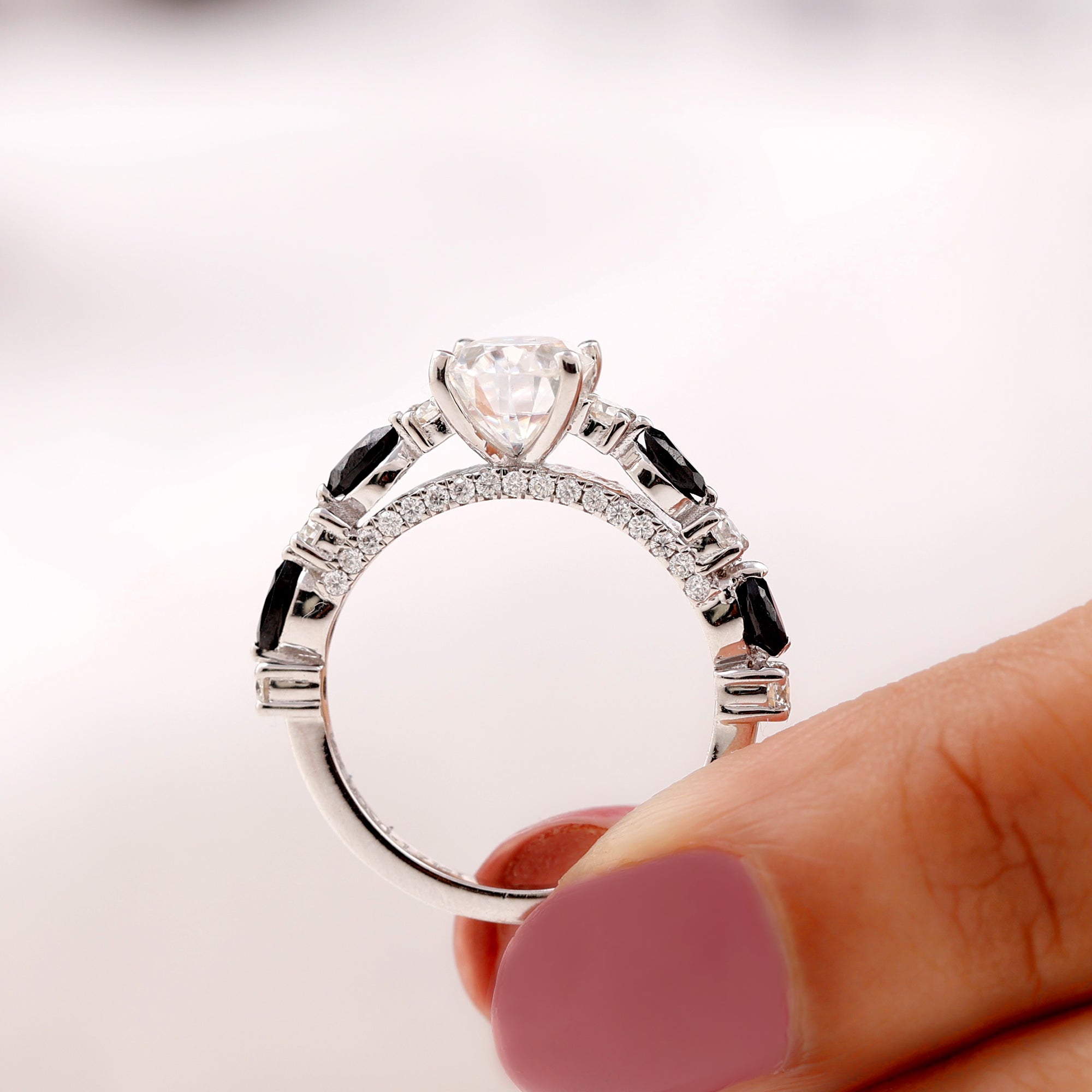 Moissanite Solitaire and Black Spinel Engagement Ring in Claw Setting