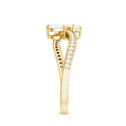 A stunning design that shows romance and togetherness, this beautiful Toi et Moi Engagement Ring is here to mark your unconditional love. Designed with two heart shaped moissanite stones, this Promise Engagement Ring represents two hearts coming together as one, a perfect symbol of your bond and shared journey. The center of the ring features two sparkling 5 MM heart shape moissanite stones placed side by side and set in secure claw setting. Whether you are making a promise or proposing, the unique two stone design captures the spirit of commitment and connection. Adding to its charm, the twisted band flows gently around the hearts, symbolizing unity and forever love. The band is detailed with small round moissanite stones, adding extra sparkle and elegance to the Moissanite Promise Ring. Each stone is carefully set to shine brightly, catching the light with every movement. Made with attention to detail and designed to last, this Heart Engagement Ring offers the brilliance of moissanite stones, giving you a luxurious look without the high cost of diamonds.