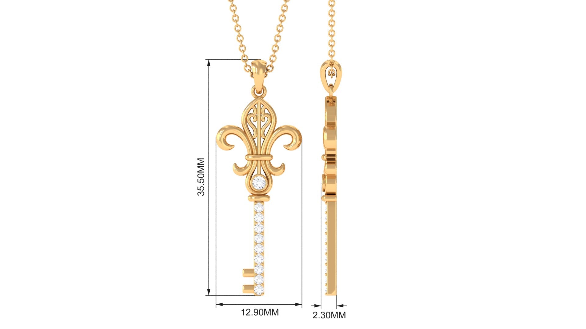 Isnt she is the key to your happiness? Then perfectly this Moissanite Pendant Necklace is the jewelry to make her happy too. The Round Cut Moissanite in Prong Setting on Key Pendant Necklace always inspires you to achieve your dreams. A perfect blend of dream and success this Moissanite Pendant makes a stunning piece for her.