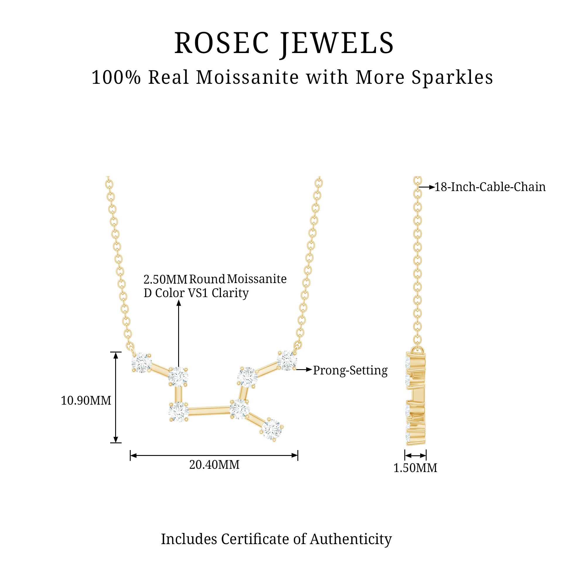 Wear your star sign with pride and add a touch of sparkle to your everyday style with this beautiful Zodiac Constellation Necklace. Designed for those who love meaningful jewelry, this Virgo Zodiac Necklace features round moissanite stones set securely in prong setting, forming a delicate constellation pattern inspired by your zodiac sign. Each moissanite is of D-VS1 quality, giving the Virgo Necklace a bright and eye-catching shine that feels luxurious. Attached to a classic cable chain, the Moissanite Zodiac Necklace sits comfortably on the neck and is perfect for daily wear. Its simple and modern design makes it easy to pair with other necklaces for a layered look, or you can wear it alone as a subtle statement piece. Available in a variety of metal options, you can choose the finish that best matches your personal style. This Virgo Constellation Necklace makes a thoughtful and meaningful gift for anyone who loves astrology or wants to carry a symbol of their personality close to their heart. This beauty comes beautifully packaged in a jewelry box and includes a certificate of authenticity, ensuring high quality moissanite stones.