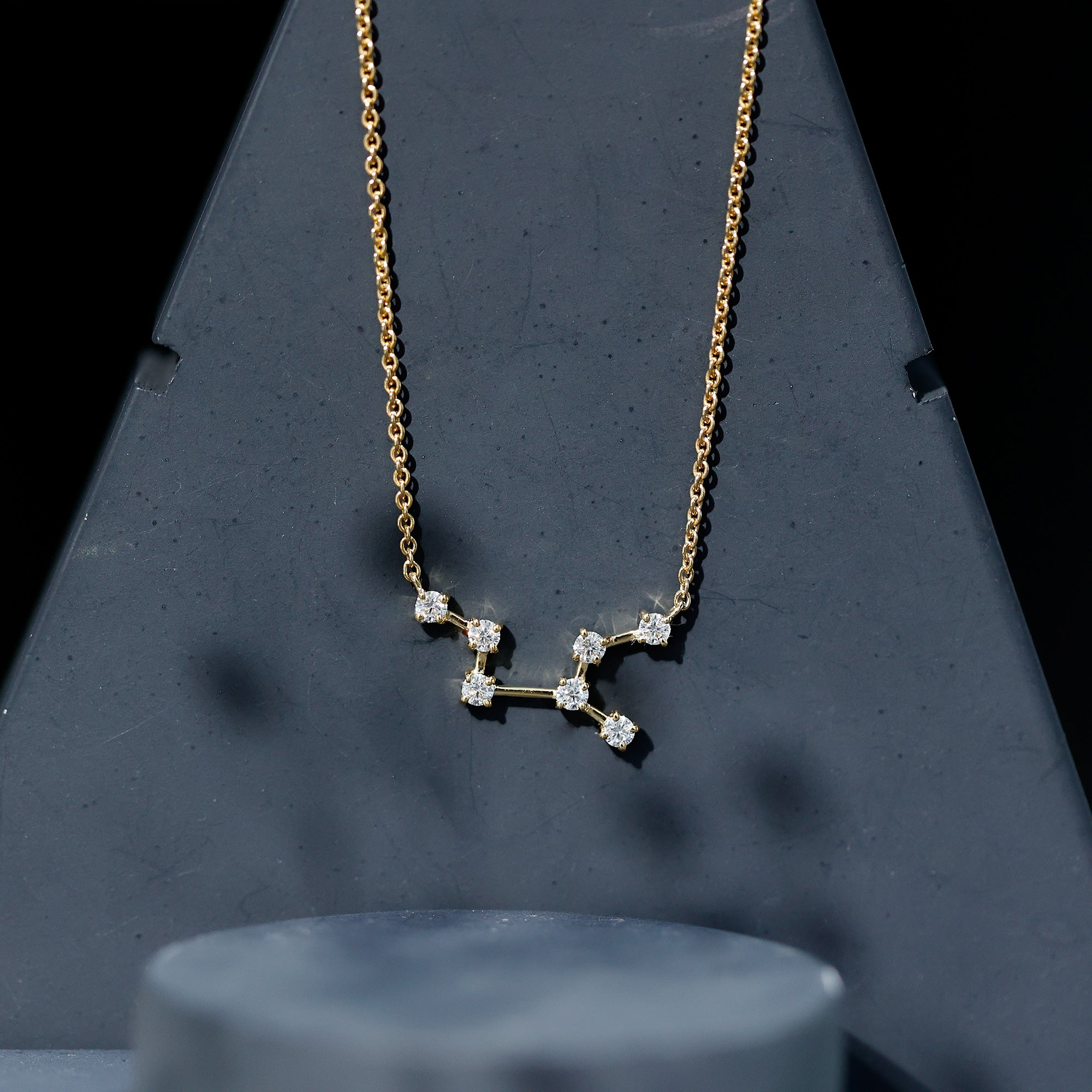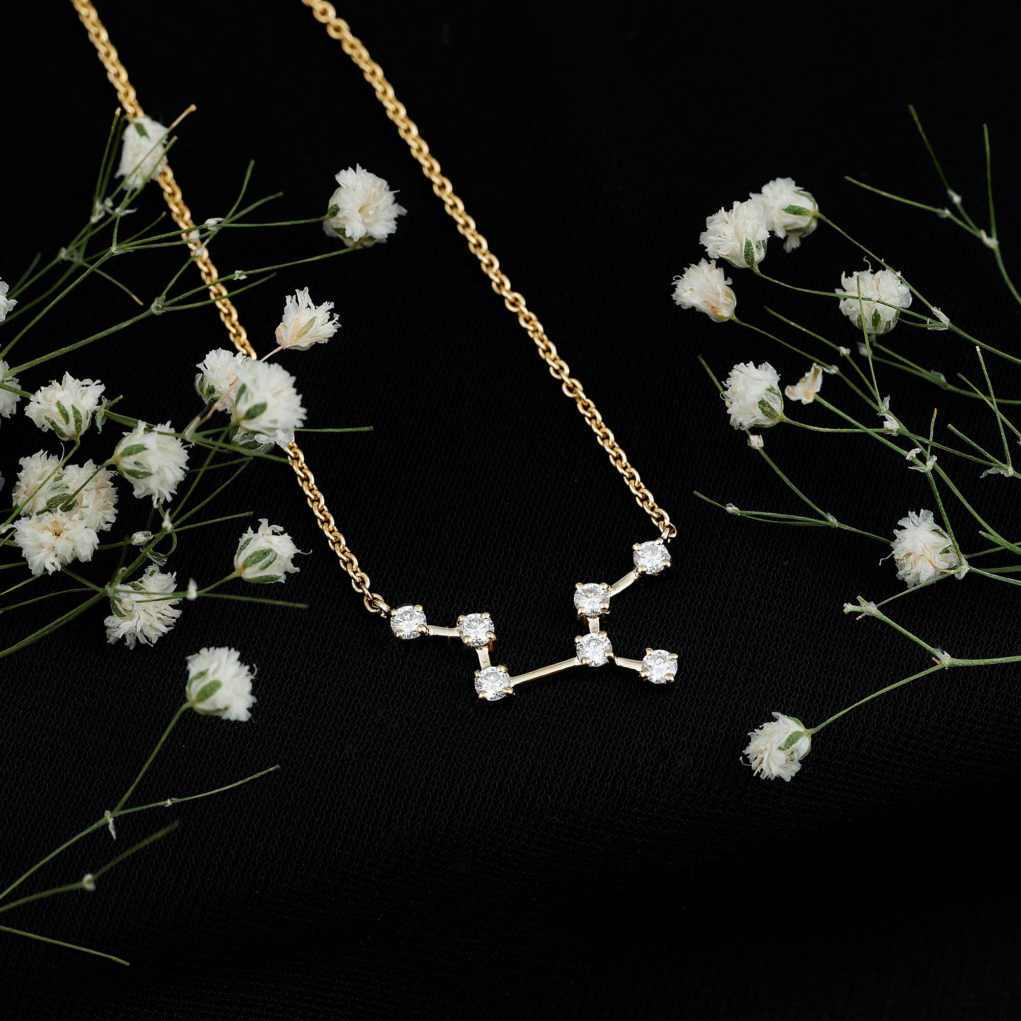 Wear your star sign with pride and add a touch of sparkle to your everyday style with this beautiful Zodiac Constellation Necklace. Designed for those who love meaningful jewelry, this Virgo Zodiac Necklace features round moissanite stones set securely in prong setting, forming a delicate constellation pattern inspired by your zodiac sign. Each moissanite is of D-VS1 quality, giving the Virgo Necklace a bright and eye-catching shine that feels luxurious. Attached to a classic cable chain, the Moissanite Zodiac Necklace sits comfortably on the neck and is perfect for daily wear. Its simple and modern design makes it easy to pair with other necklaces for a layered look, or you can wear it alone as a subtle statement piece. Available in a variety of metal options, you can choose the finish that best matches your personal style. This Virgo Constellation Necklace makes a thoughtful and meaningful gift for anyone who loves astrology or wants to carry a symbol of their personality close to their heart. This beauty comes beautifully packaged in a jewelry box and includes a certificate of authenticity, ensuring high quality moissanite stones.