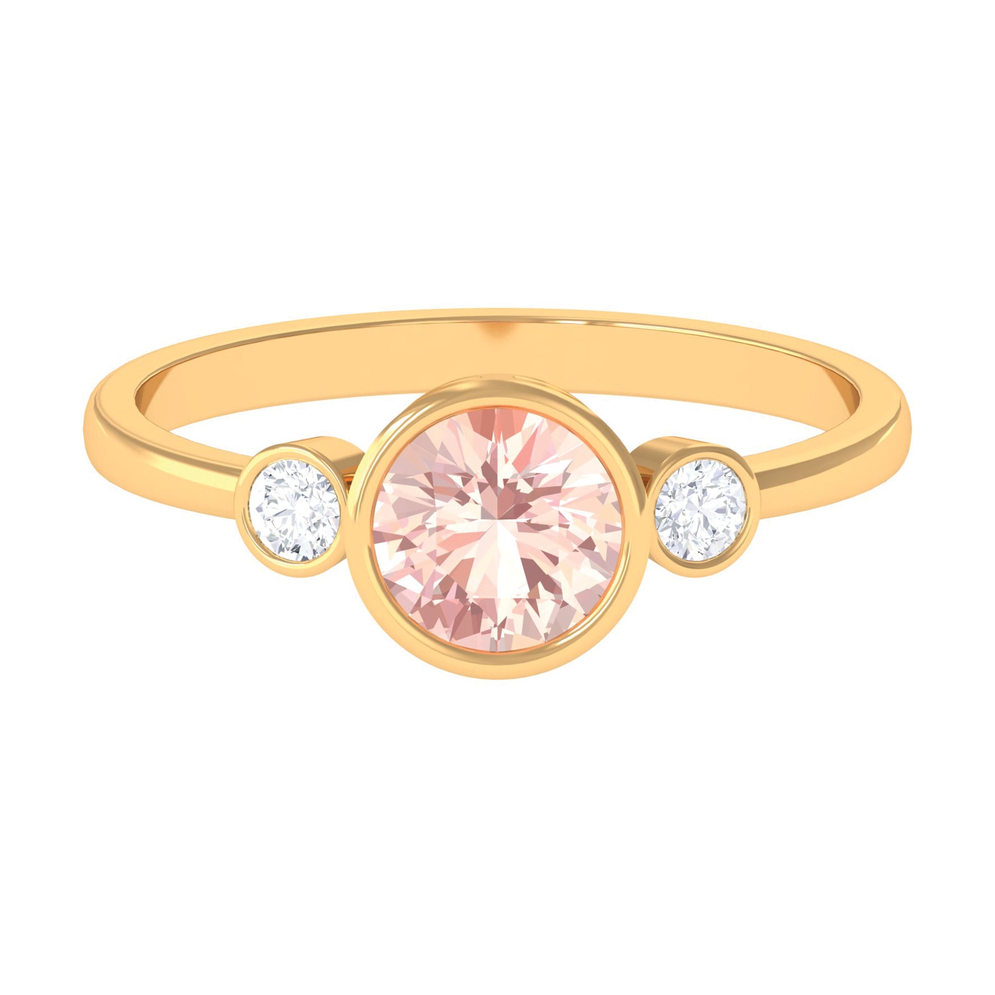 A ring as sweet as the love you share. This morganite and Diamond engagement ring in a bezel setting is a timeless classic that will cherish your love for years to come. The round-shaped morganite center stone is a soft, peachy pink with a delicate sparkle. Its surrounded by a bezel setting of Diamonds, which adds a touch of luxury and sophistication. Whether youre planning a romantic proposal or celebrating a milestone anniversary, this morganite and Diamond engagement ring is just the perfect option for you.
