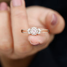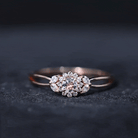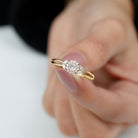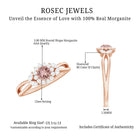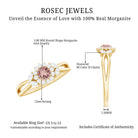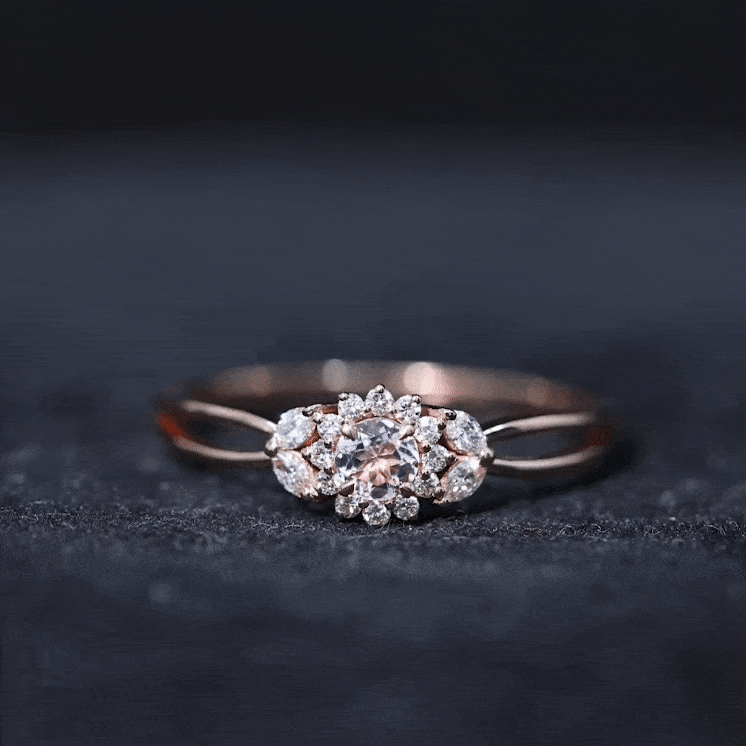 Soft blush tones and floral charm come together beautifully in this enchanting Morganite Engagement Ring, a piece designed to celebrate love in its most graceful form. At the center of the ring sits a 5 MM round morganite, held securely in claw setting. Surrounding the center stone is a delicate halo of round brilliant cut diamonds, adding radiant sparkle that enhances the morganite’s natural beauty. Completing the floral design, elegant marquise shaped diamonds form petals, creating a nature-inspired motif that feels both timeless and unique. The thoughtfully crafted Morganite and Diamond Ring with a split shank band balances elegance with modern charm. Every detail works together to create a ring that feels feminine and effortlessly romantic. More than just a beautiful piece of jewelry, this Floral Engagement Ring symbolizes growth, new beginnings, and a love that continues to bloom.