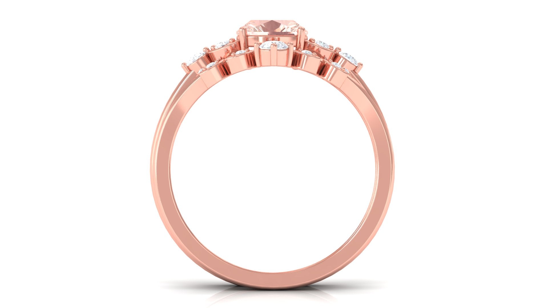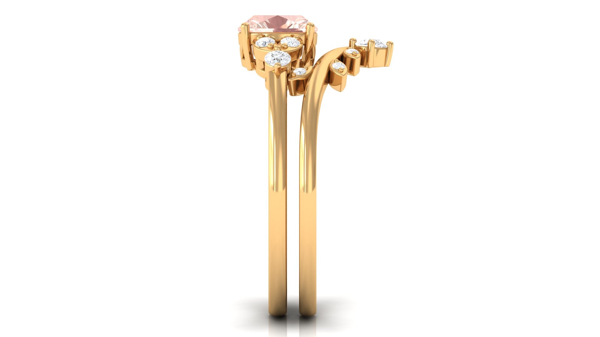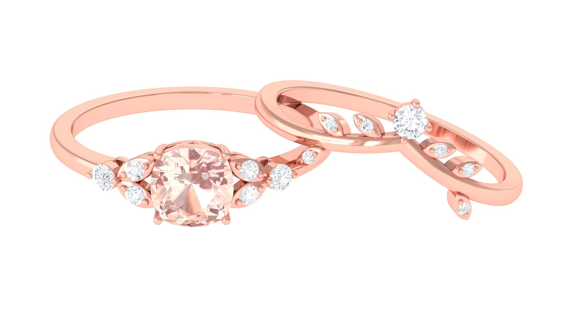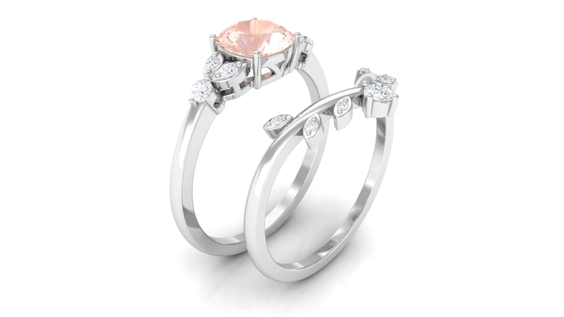 Embrace natural beauty with this Morganite and Diamond Ring Set, adorned with a delicate leaf motif, a graceful tribute to love and natures allure.