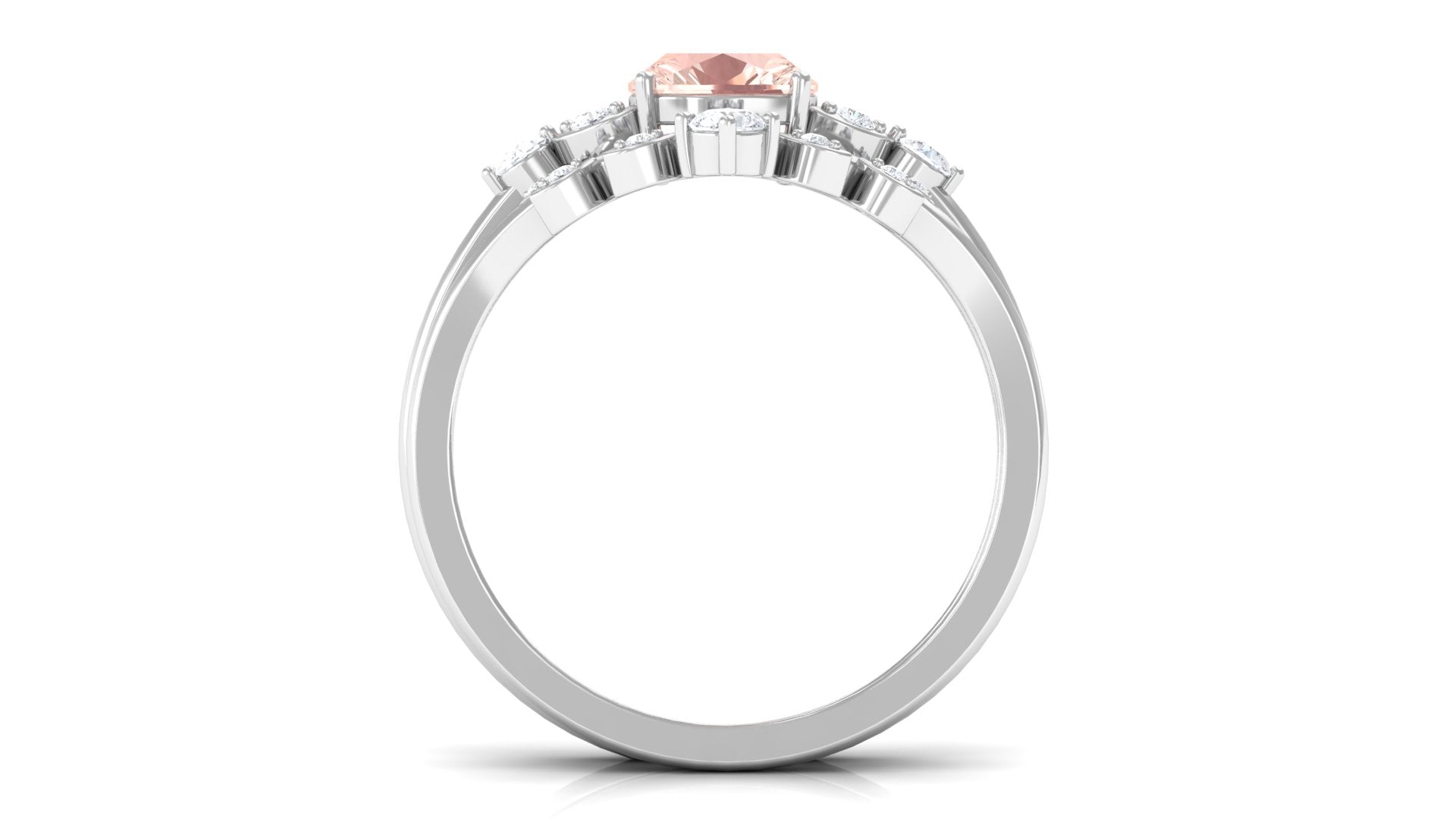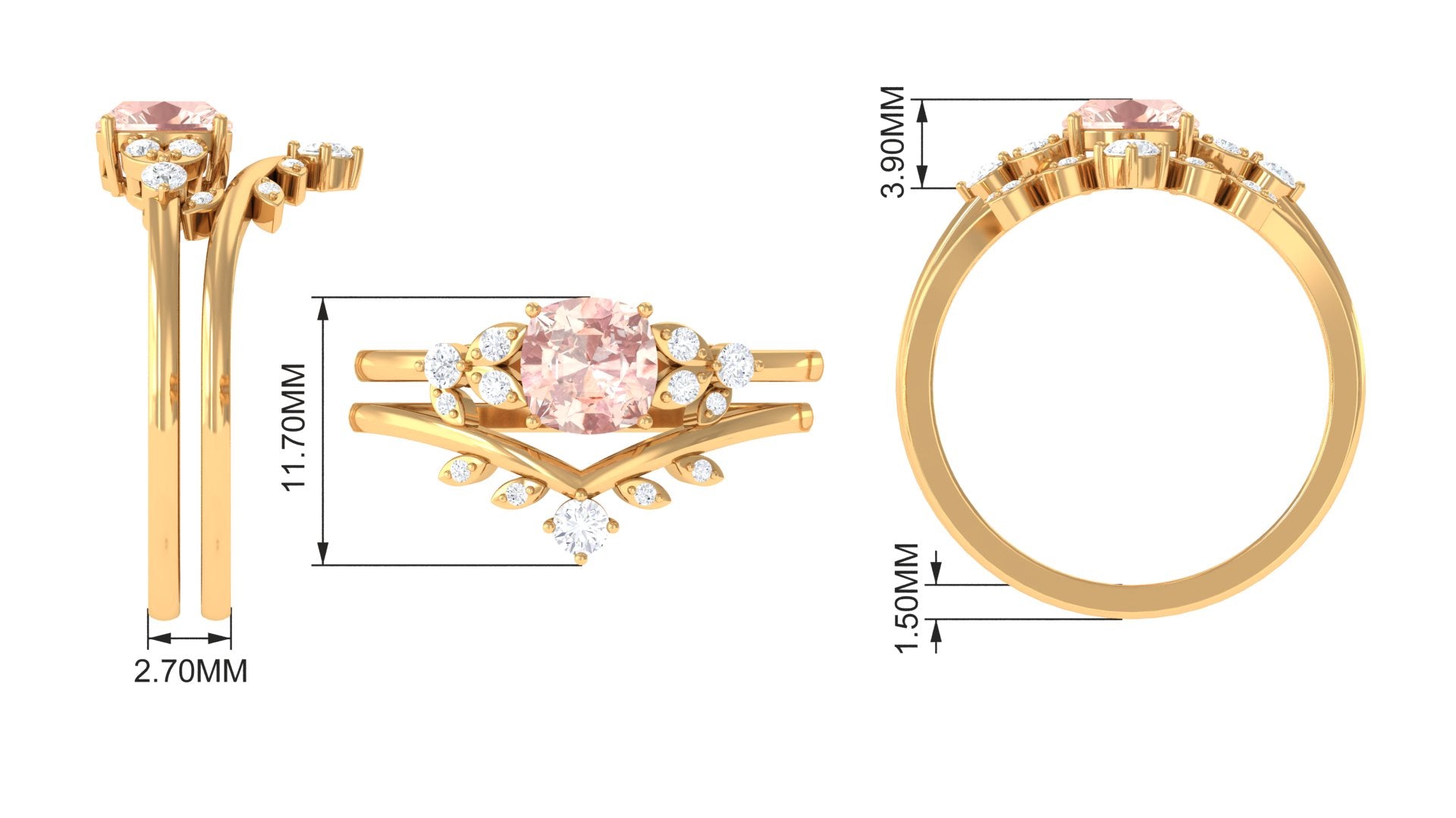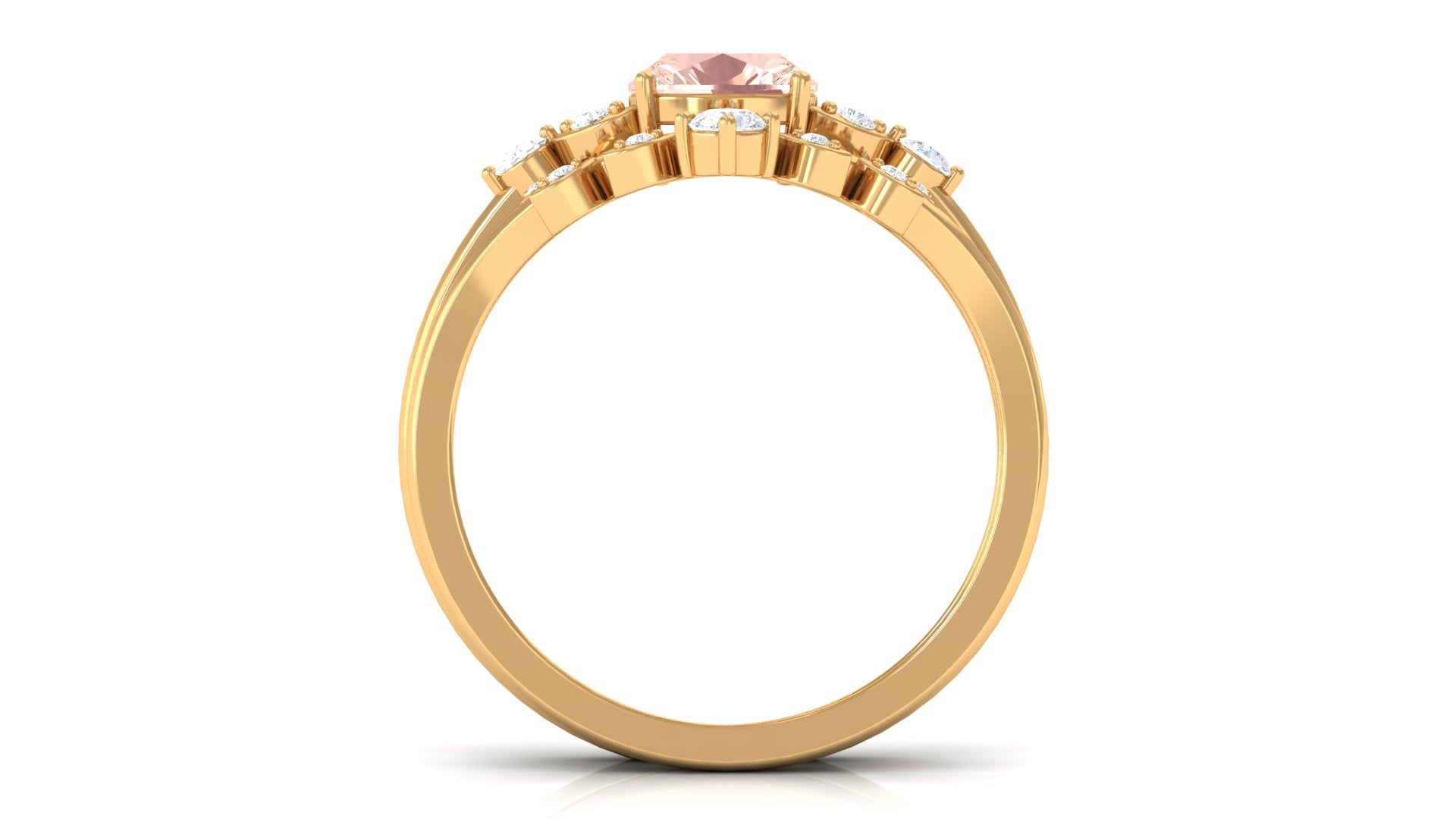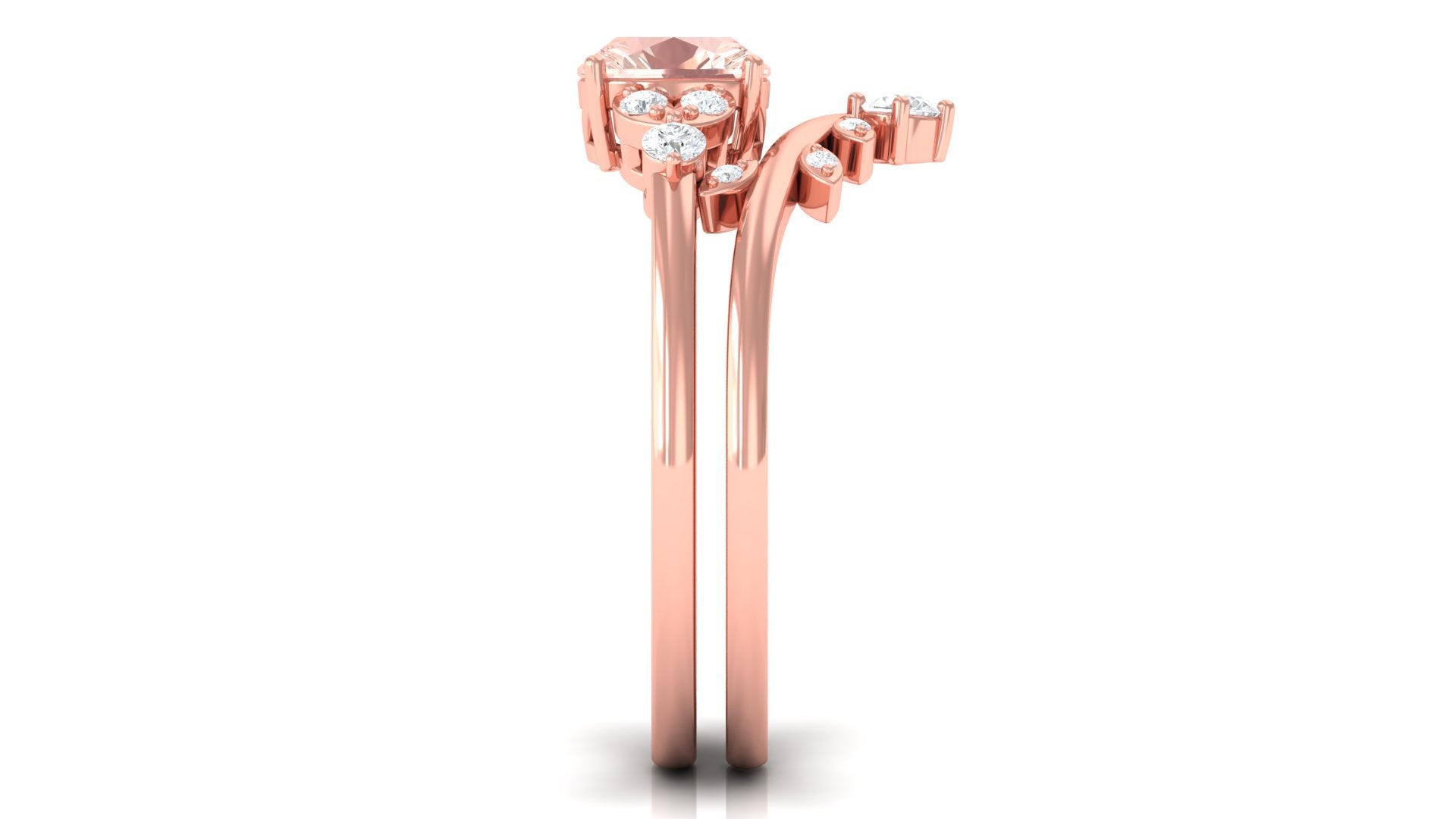 Embrace natural beauty with this Morganite and Diamond Ring Set, adorned with a delicate leaf motif, a graceful tribute to love and natures allure.