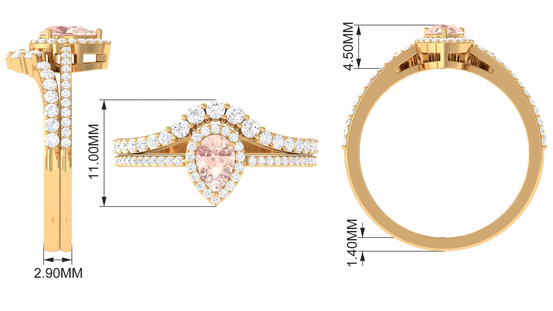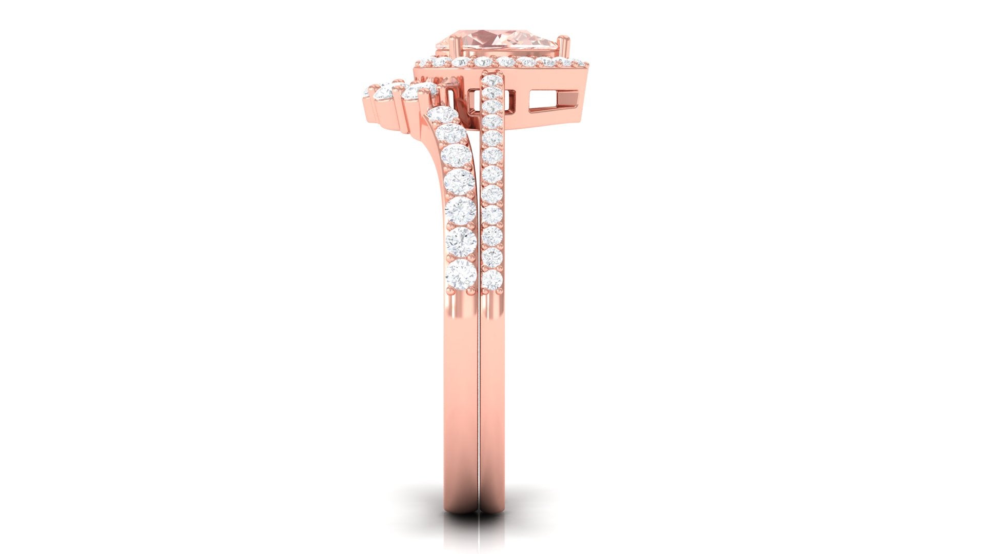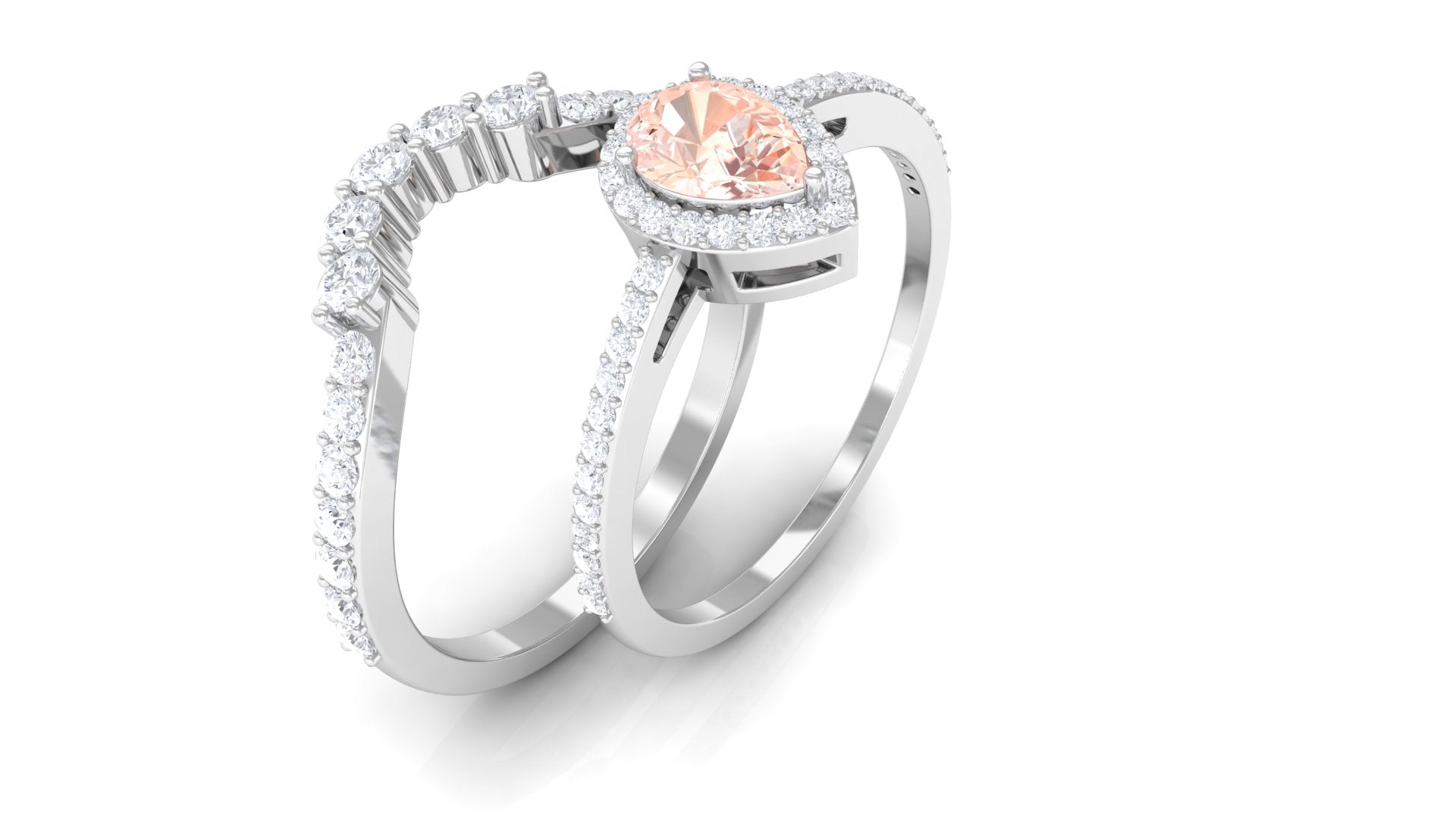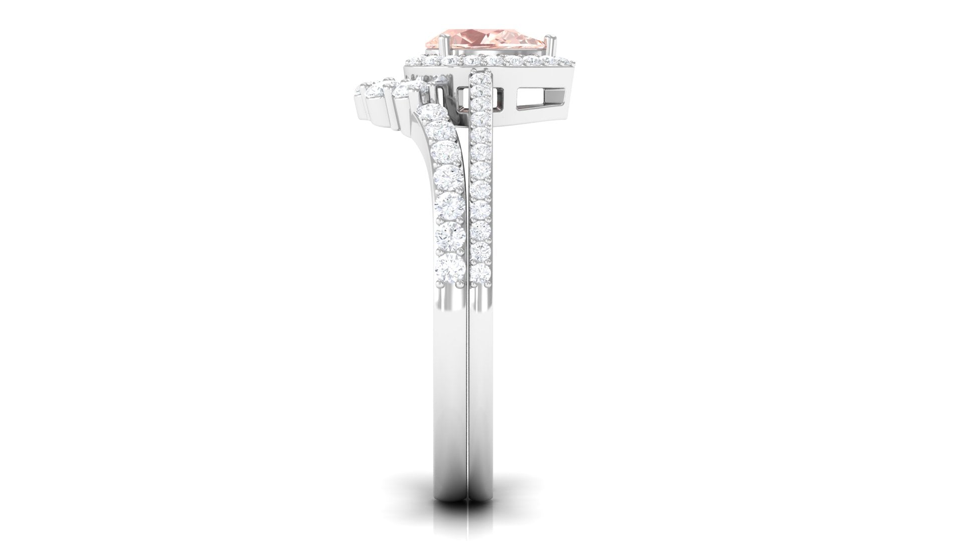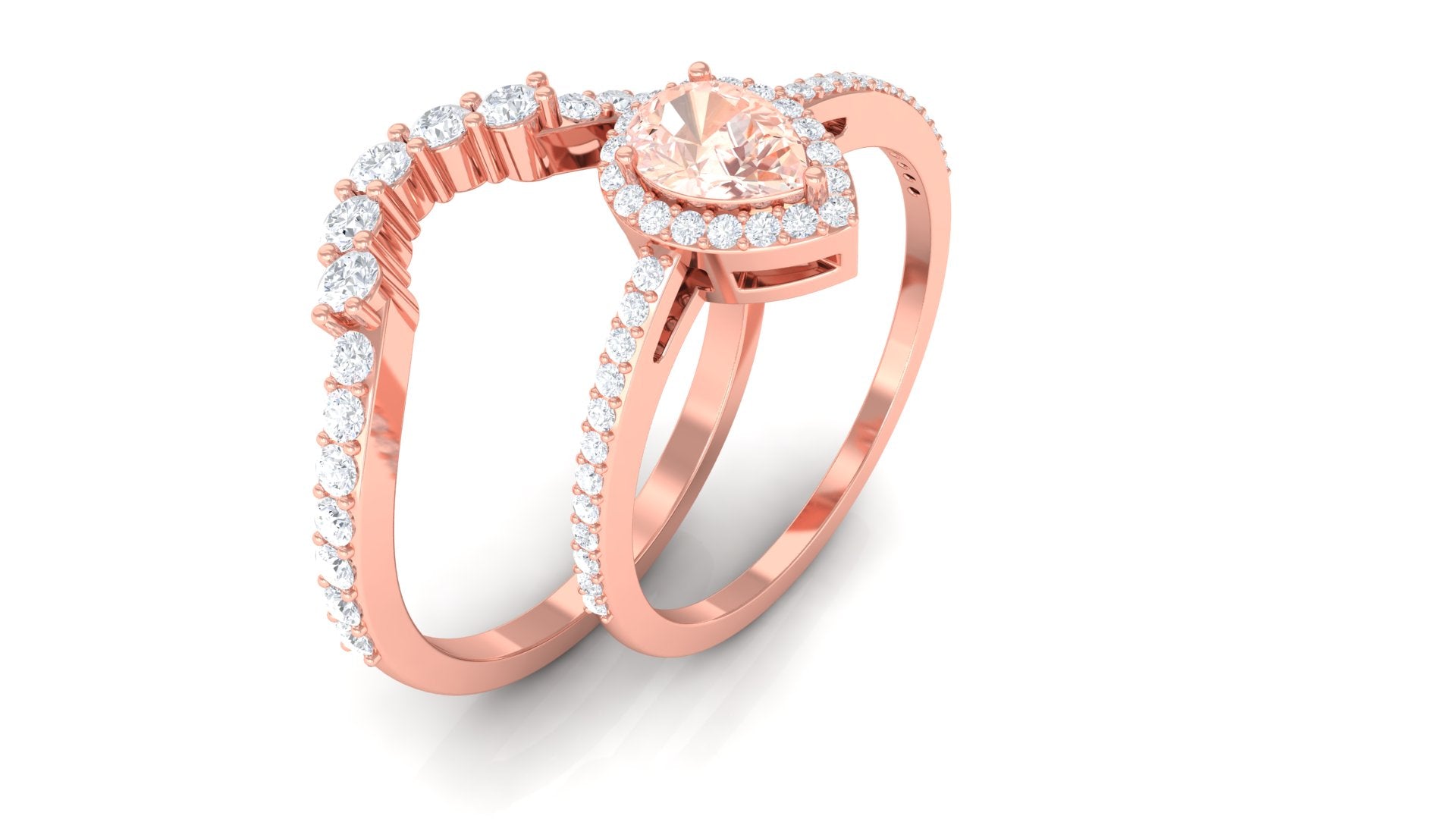 Morganite Designer Teardrop Ring Set with Diamond Halo