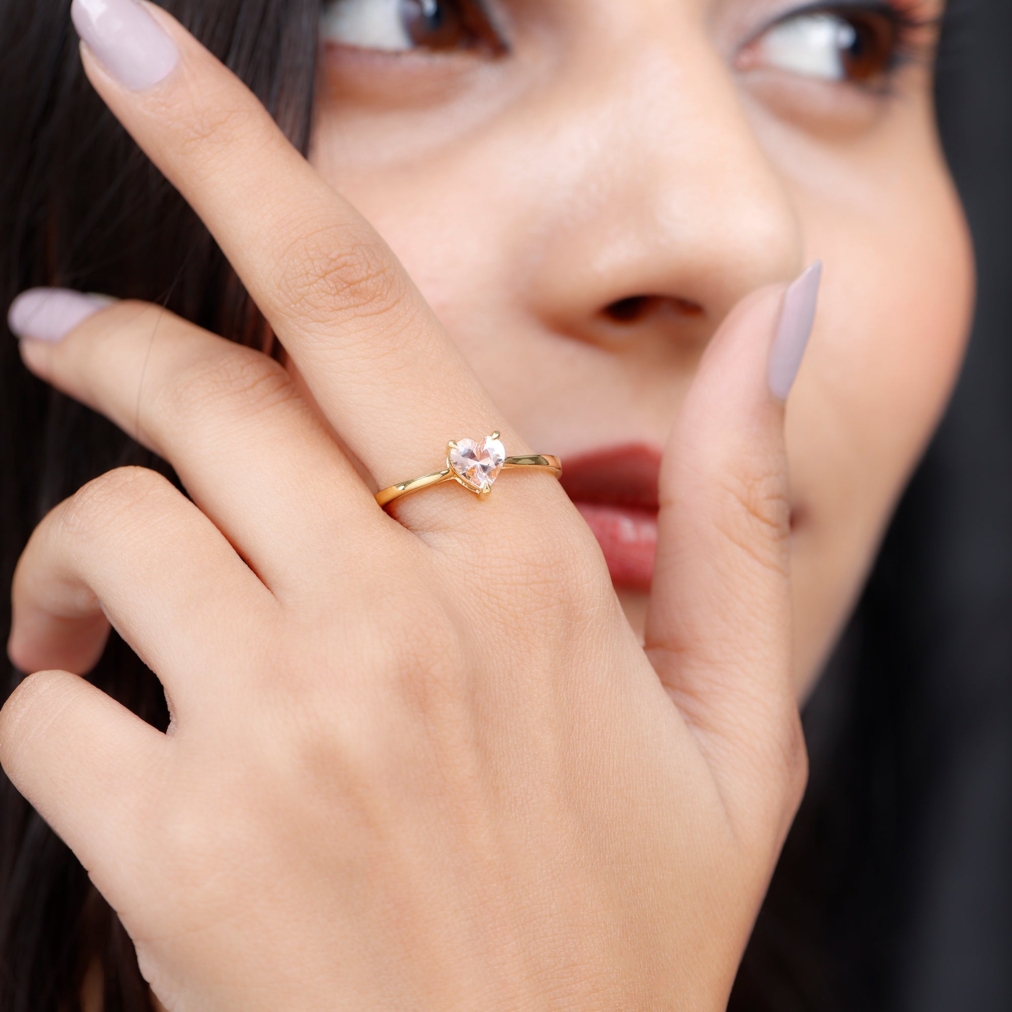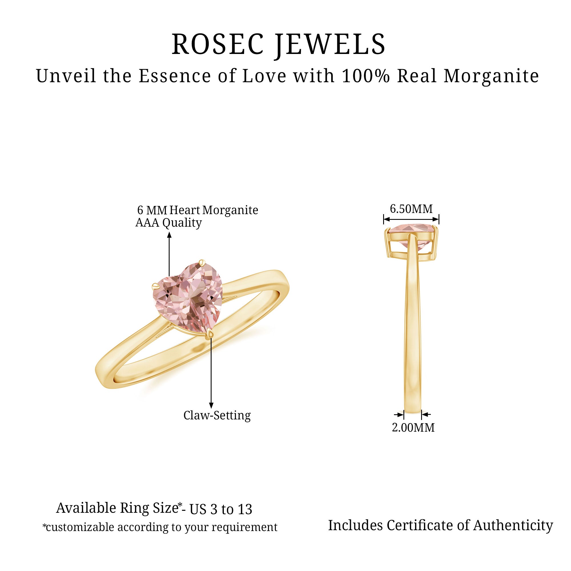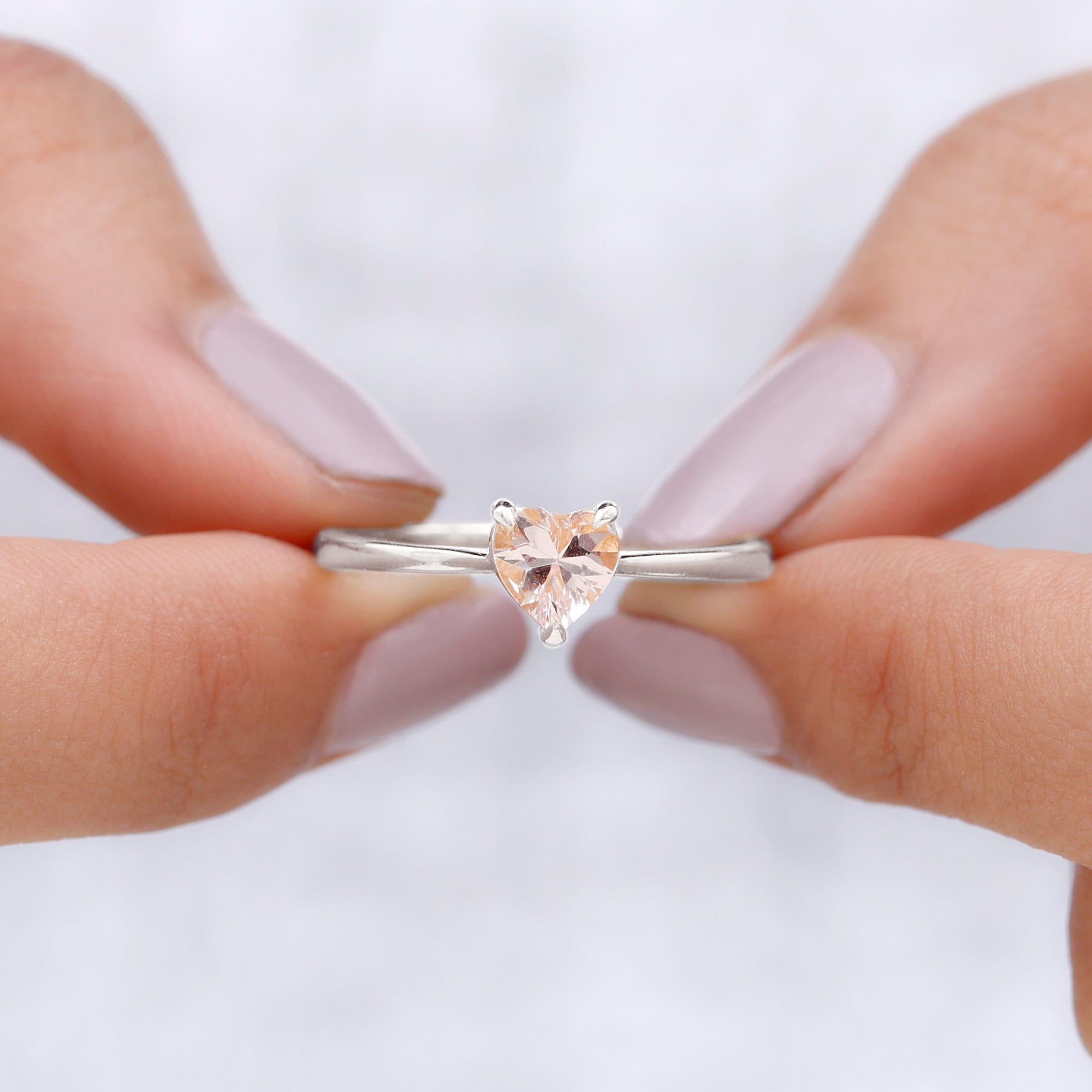 The Morganite Heart Solitaire Engagement Ring is a symbol of your love, pure and true. The heart-shaped 6 MM morganite gemstone is set in a delicate solitaire setting, allowing its beauty to shine through. The ring comes with a heart-shaped morganite-centered gemstone in a pinched shank. This ring is perfect for the woman who wants something unique and special for her engagement. It is also a great choice for those who are looking for a more affordable alternative to a diamond ring.