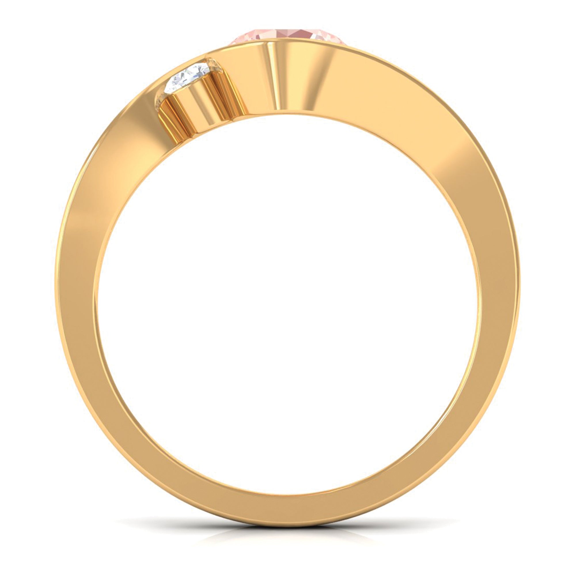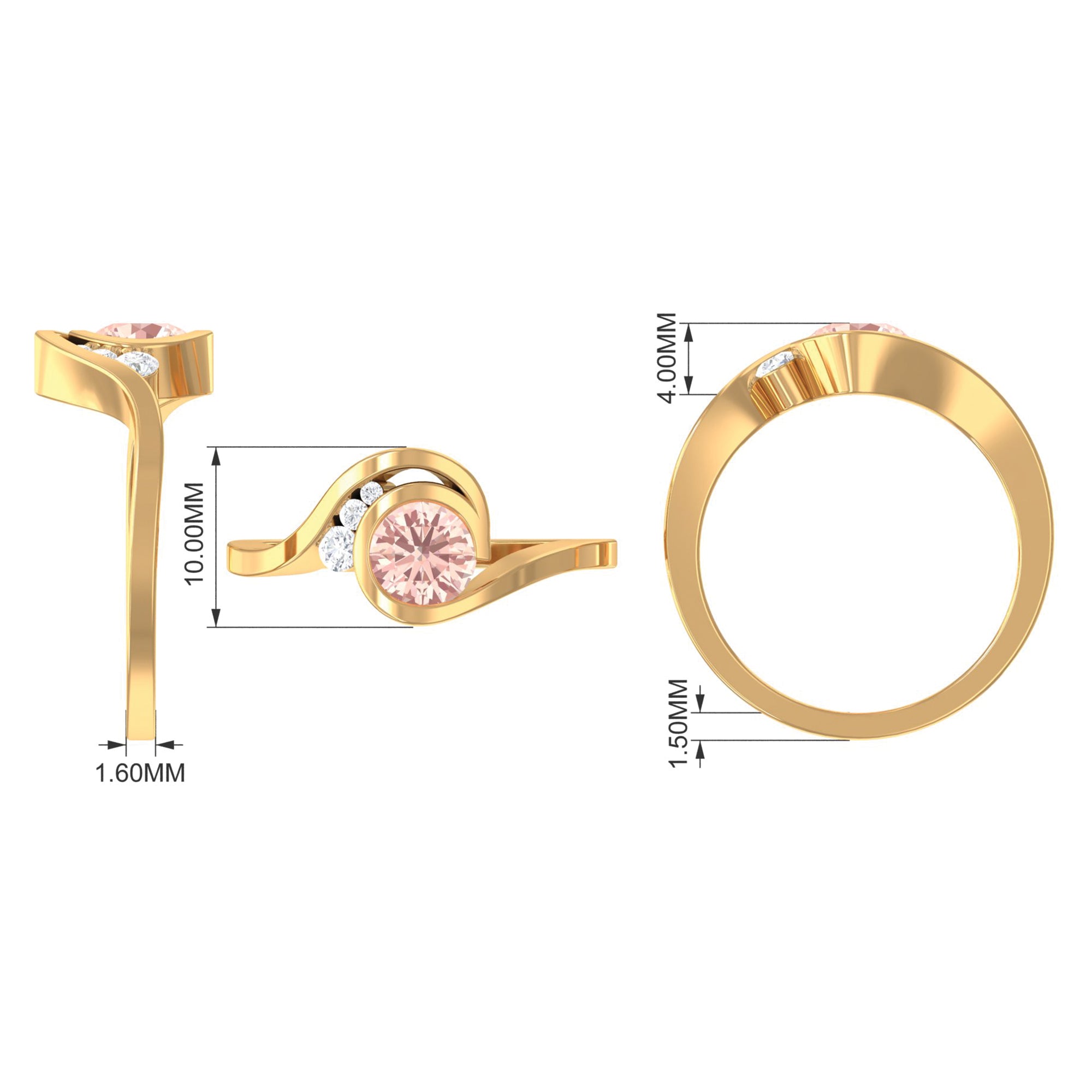 This exquisite morganite solitaire bypass engagement ring is a breathtaking sight to behold. The delicate round-shaped morganite gemstone, with its soft pink hue and sparkling brilliance, is the perfect embodiment of your eternal love. The sparkling Diamond placed on the side gives a luxury touch. The bypass design adds a touch of whimsy and romance, creating a ring that is both unique and timeless. As you slip this ring onto your beloveds finger, imagine the look of joy and amazement on their face.