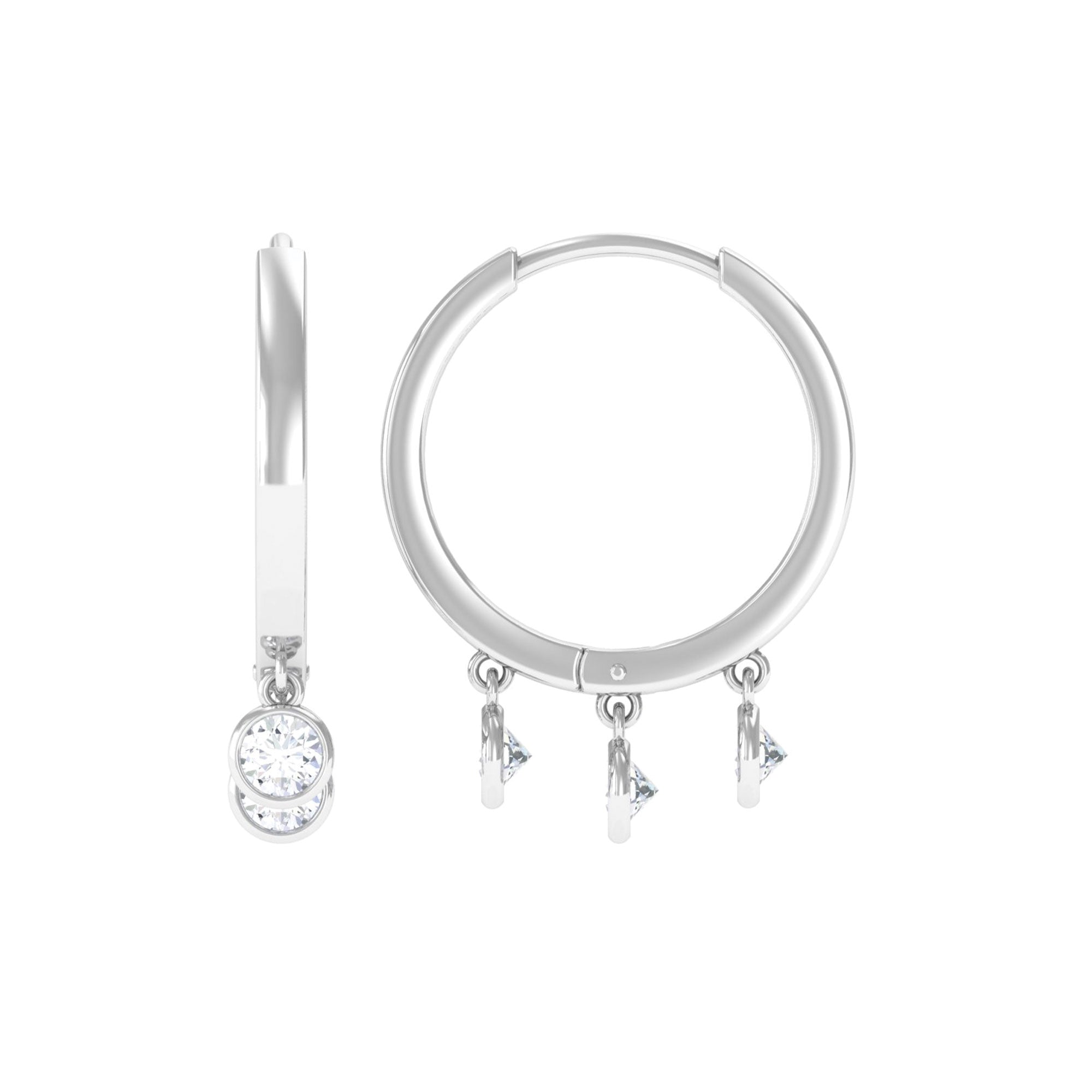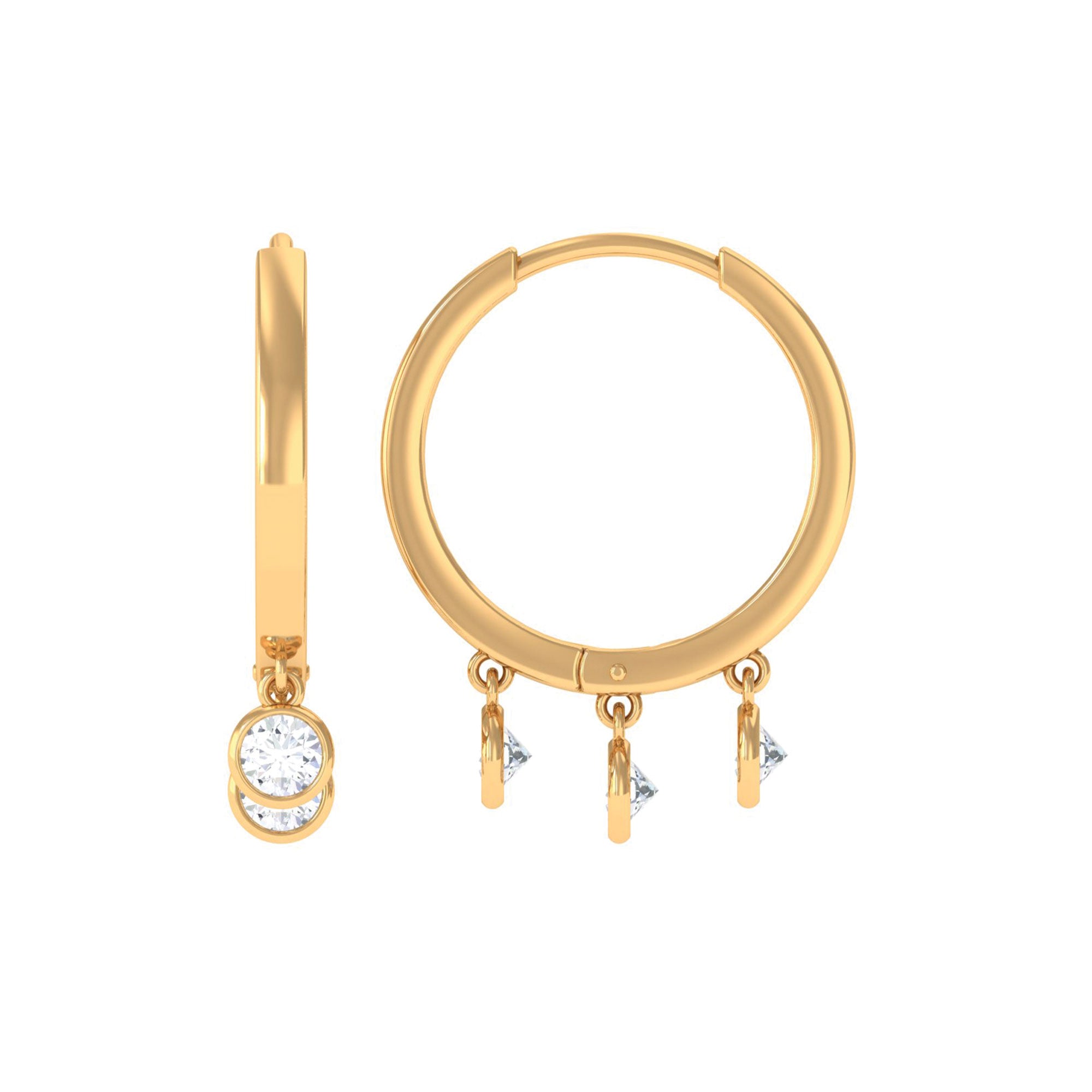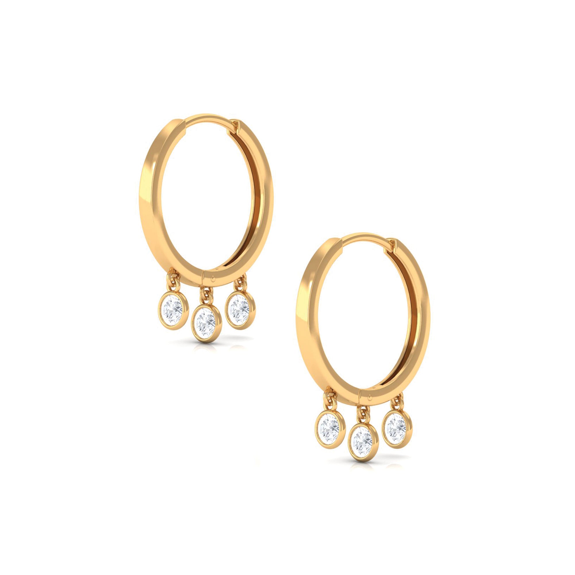 Elevate your look with the charm of these Diamond Hoop Earrings, a graceful blend of sparkle and sophistication designed to brighten any moment. Each hoop features a sleek hinged design that makes wearing them effortless, while three dazzling Diamond stones gently cascade in a drop style, catching every glimmer of light. Their minimalist elegance makes them versatile, perfect for pairing with evening gowns, chic office outfits or even casual weekend ensembles that need a touch of refinement. Whether you are stepping out for a romantic dinner or celebrating a special milestone, these Diamond Drop Earrings bring just the right amount of brilliance to complete your look. Thoughtfully crafted and beautifully designed, these Hoop Drop Earrings arrive in a signature jewelry box that adds an extra layer of excitement for gifting. They make the perfect present for birthdays, anniversaries, graduations or reminding someone how cherished they are. Timeless and effortlessly stylish, these Hinged Hoop Earrings become a treasured accessory she will reach for again and again.
