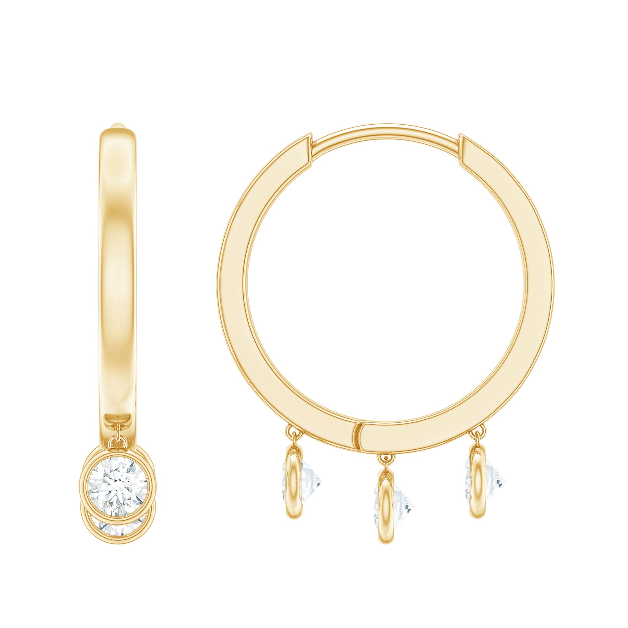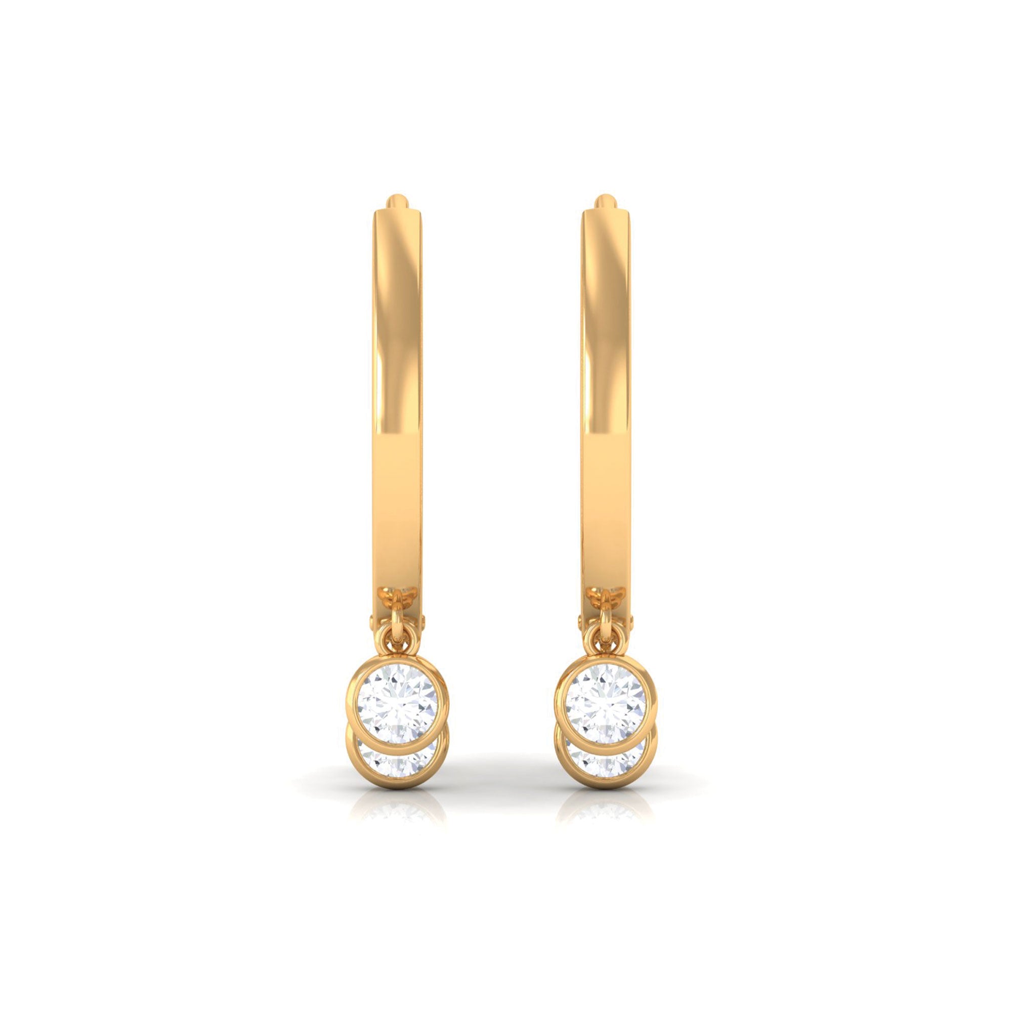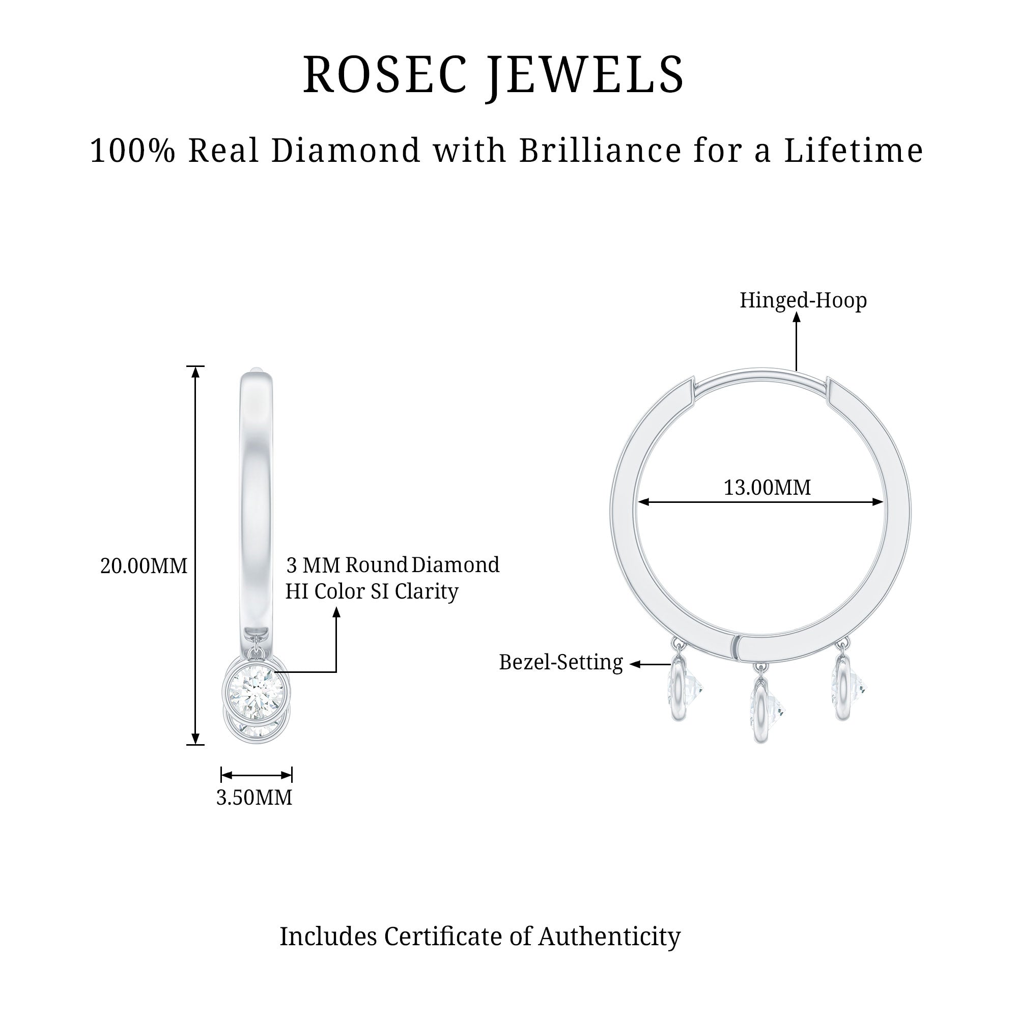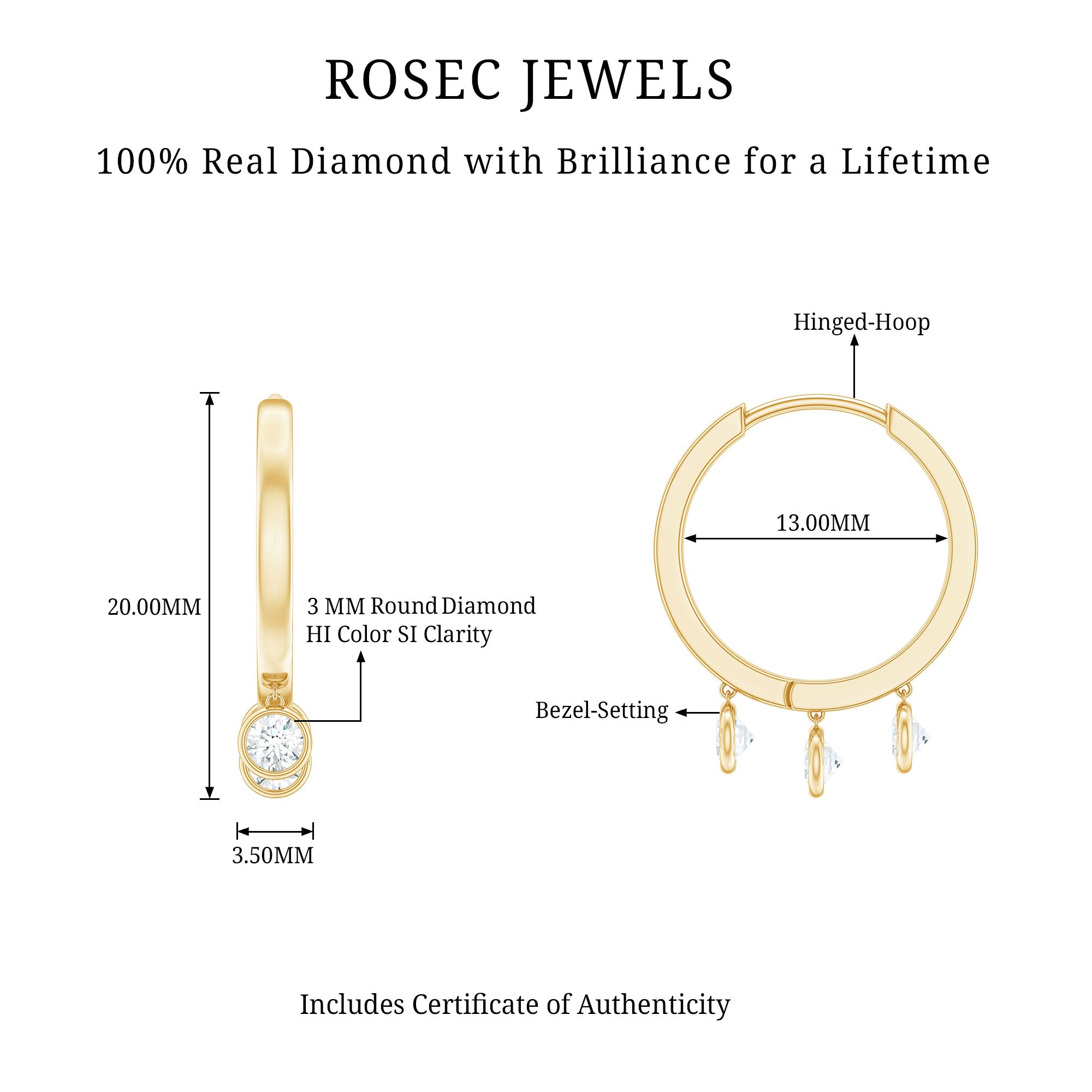 Elevate your look with the charm of these Diamond Hoop Earrings, a graceful blend of sparkle and sophistication designed to brighten any moment. Each hoop features a sleek hinged design that makes wearing them effortless, while three dazzling Diamond stones gently cascade in a drop style, catching every glimmer of light. Their minimalist elegance makes them versatile, perfect for pairing with evening gowns, chic office outfits or even casual weekend ensembles that need a touch of refinement. Whether you are stepping out for a romantic dinner or celebrating a special milestone, these Diamond Drop Earrings bring just the right amount of brilliance to complete your look. Thoughtfully crafted and beautifully designed, these Hoop Drop Earrings arrive in a signature jewelry box that adds an extra layer of excitement for gifting. They make the perfect present for birthdays, anniversaries, graduations or reminding someone how cherished they are. Timeless and effortlessly stylish, these Hinged Hoop Earrings become a treasured accessory she will reach for again and again.