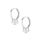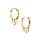 Natural 3 Stone Diamond Drop Hoop Earrings