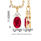 Natural 4X6MM Oval Ruby Pendant with Diamond Trio