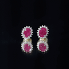 Elevate your jewelry collection with these exquisite Ruby Stud Earrings, set in luxurious Yellow Gold Plated Sterling Silver. Each earring showcases a vibrant, Oval Shape Ruby, measuring 5X7 mm, known for its deep, captivating red hue that symbolizes passion and timeless elegance. Surrounding each Ruby is a delicate Halo of EF-VS Quality Lab Grown Diamond stones to enhance the brilliance of the center stone, adding extra sparkle and a touch of modern sophistication. These Ruby Diamond Earrings are secure with Screw Back Closure, providing both comfort and confidence, ideal for daily wear or special occasions. The Yellow Gold Plating enhances the overall design, giving it a classic yet contemporary feel that easily complements both casual and formal looks. Whether gifted to mark a significant milestone or chosen as a treat for yourself, these AAA Quality Ruby Studs bring a perfect balance of color, sparkle, and craftsmanship. A statement of elegance and sustainability, these Real Ruby Earrings reflect a modern approach to timeless beauty. Packaged in a signature jewelry box, these Ruby Earrings are ready to dazzle from the moment you open them.