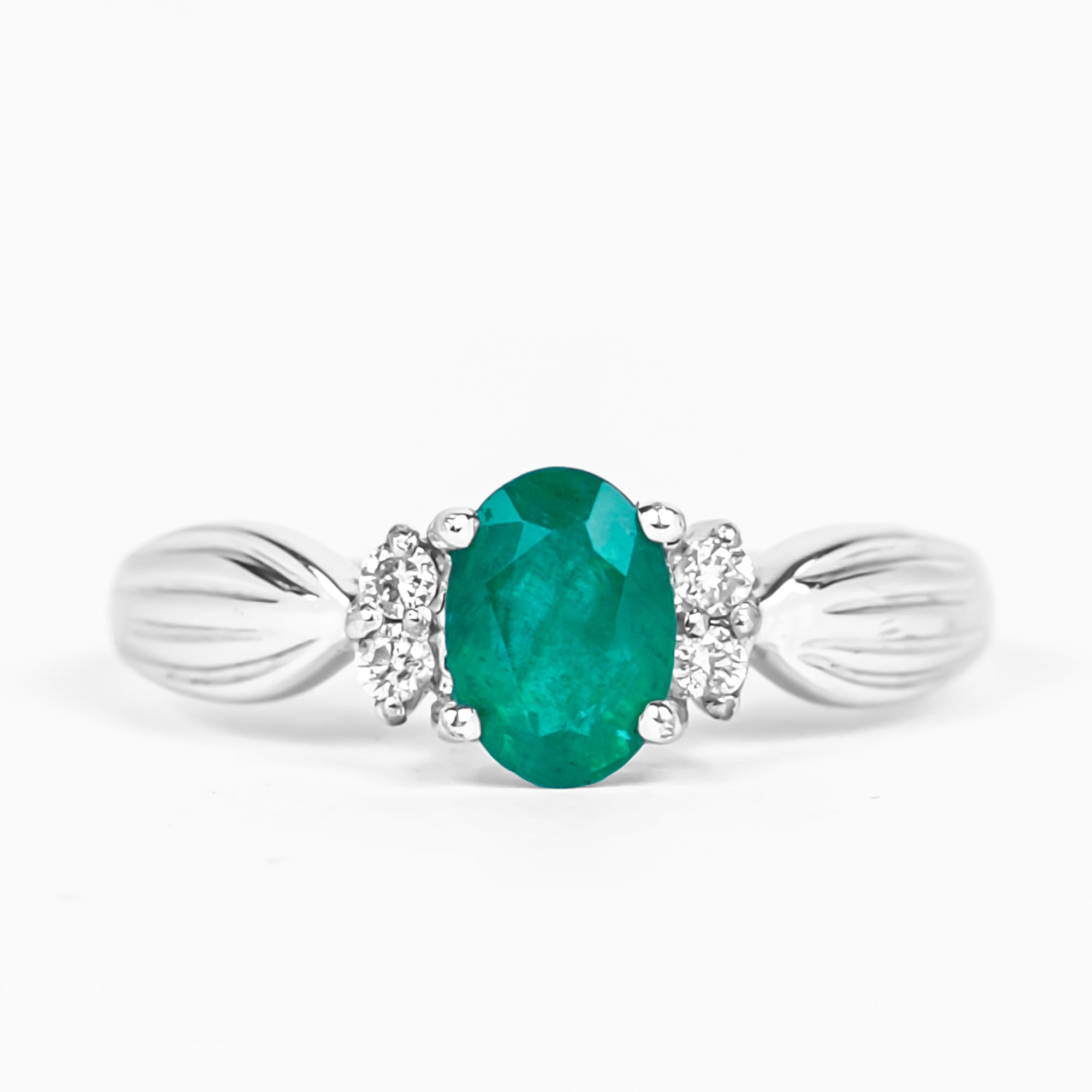 Natural 5X7mm Emerald Oval Engagement Ring with Diamond