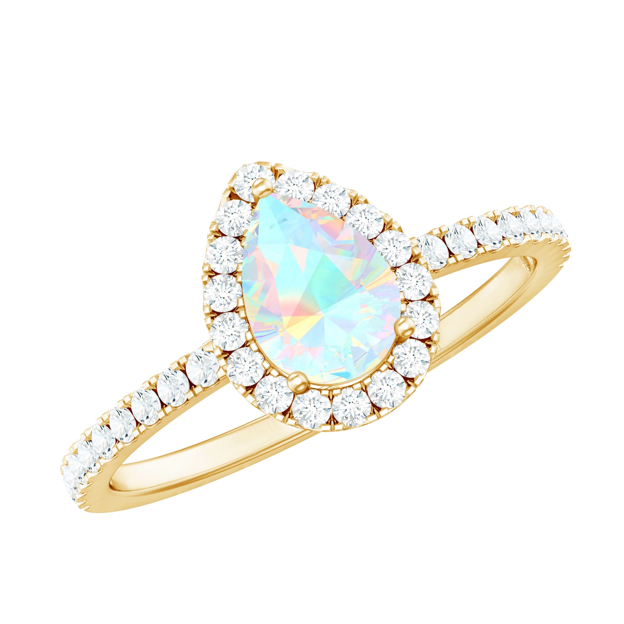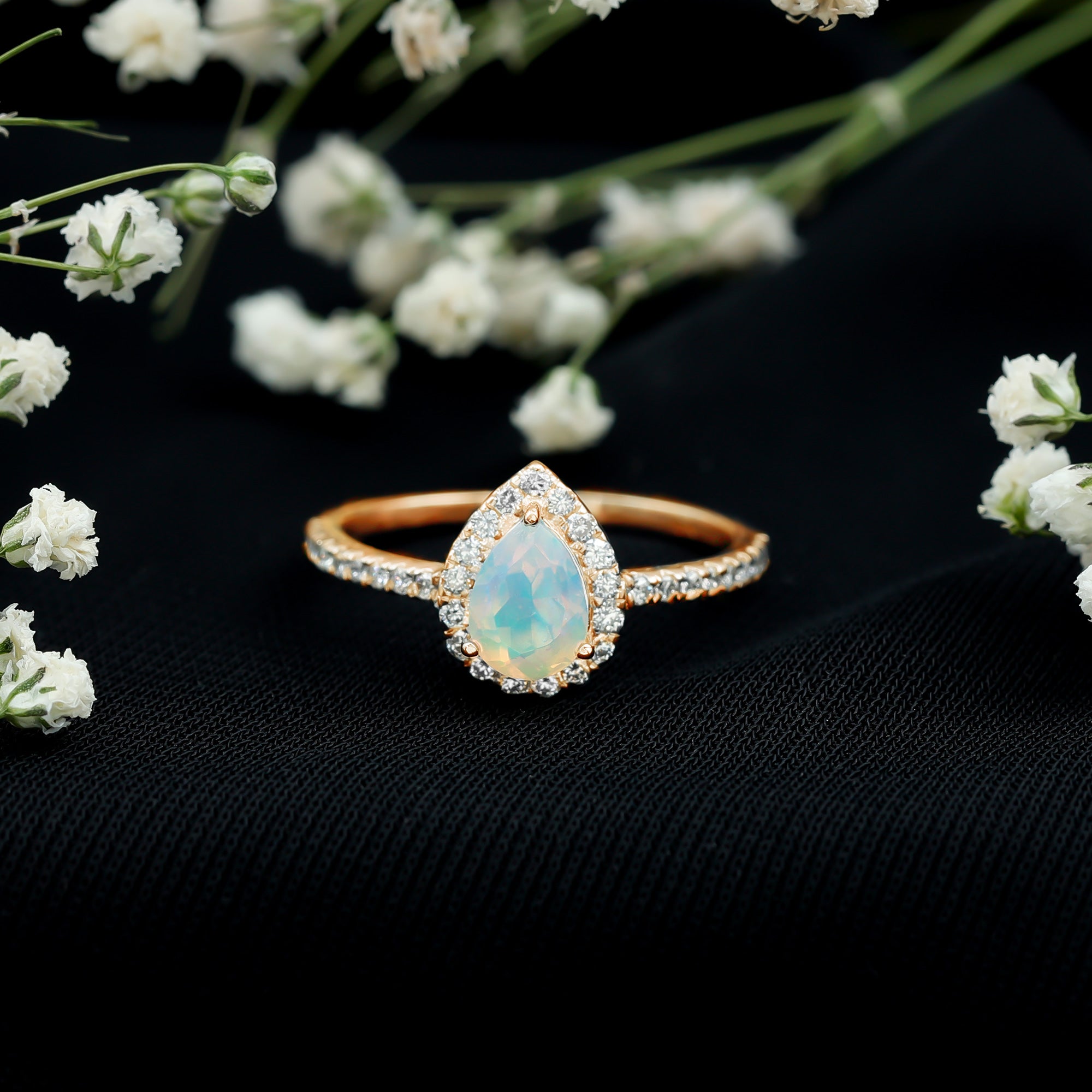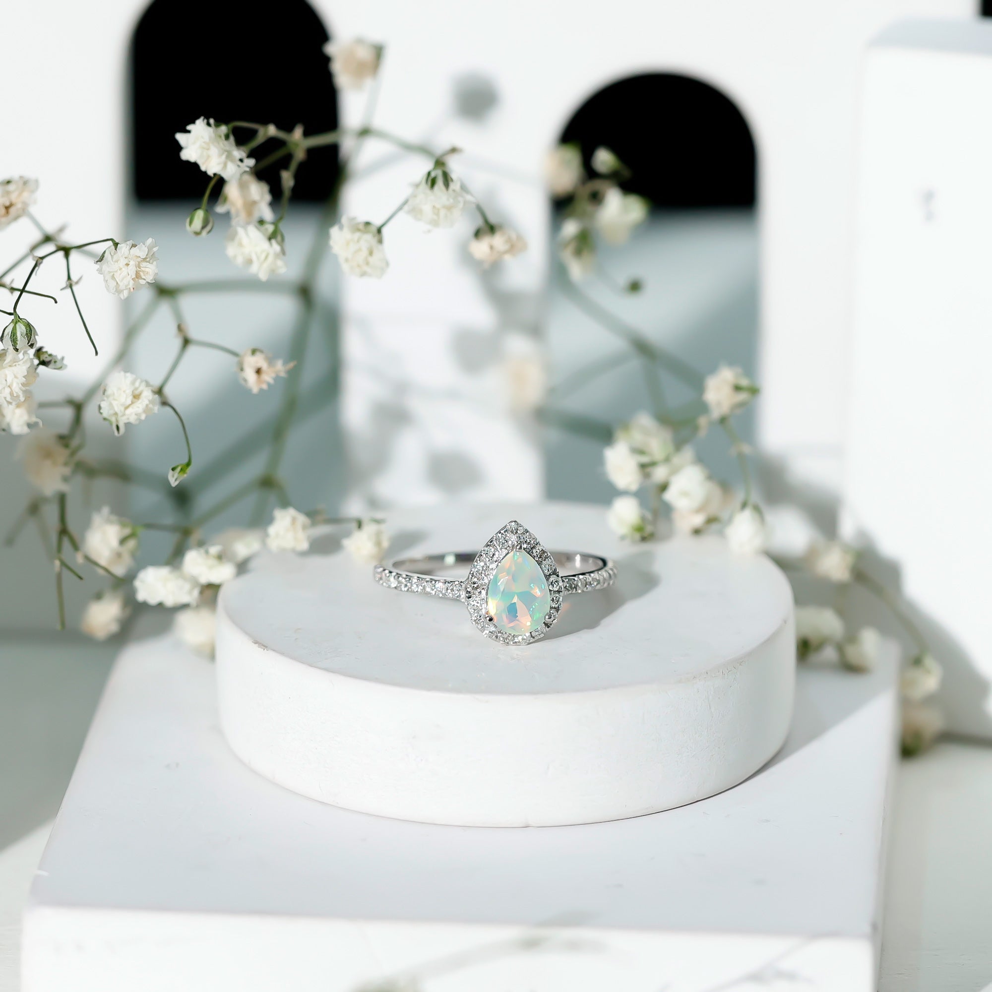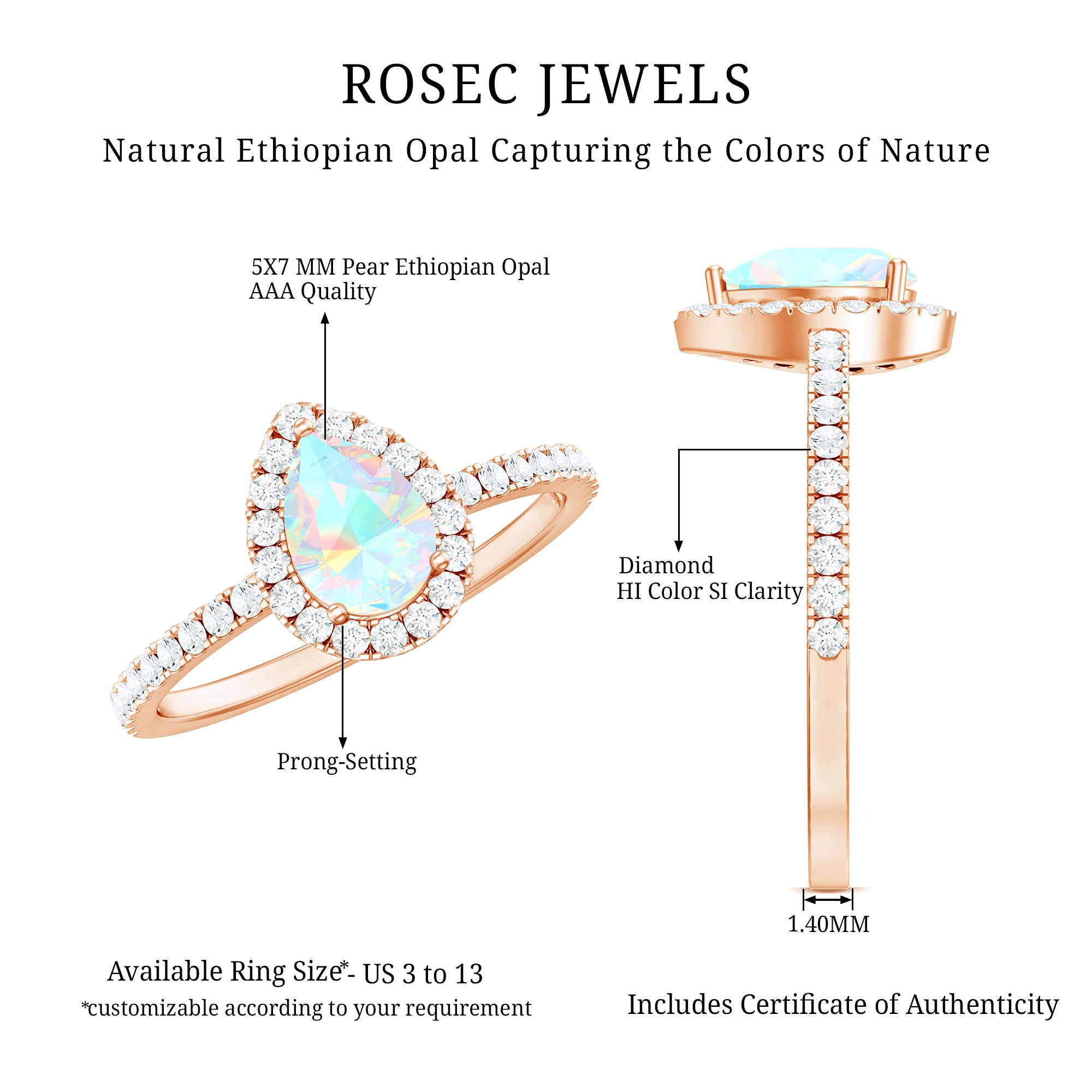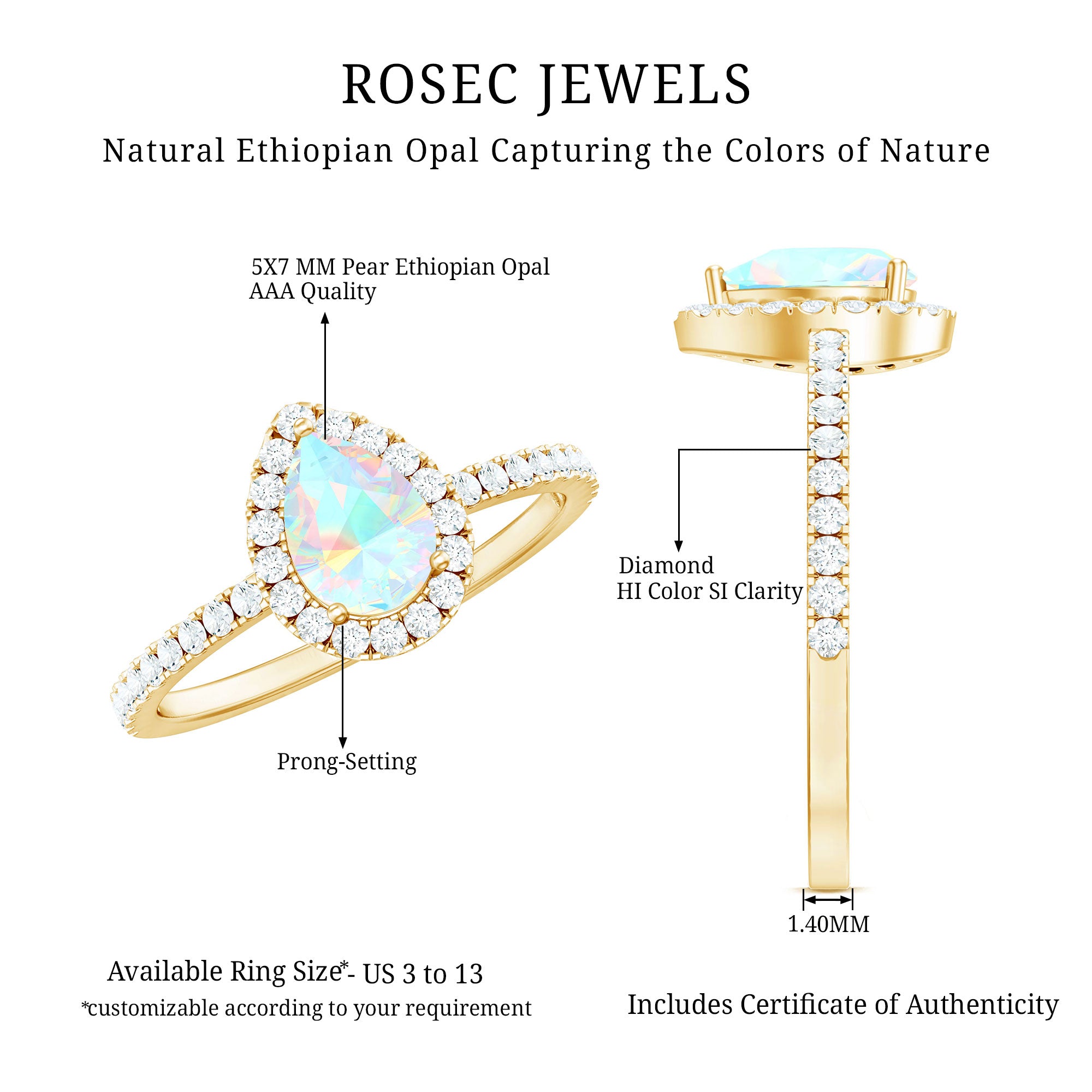 Natural 5X7mm Ethiopian Opal Teardrop Engagement Ring with Diamond Halo