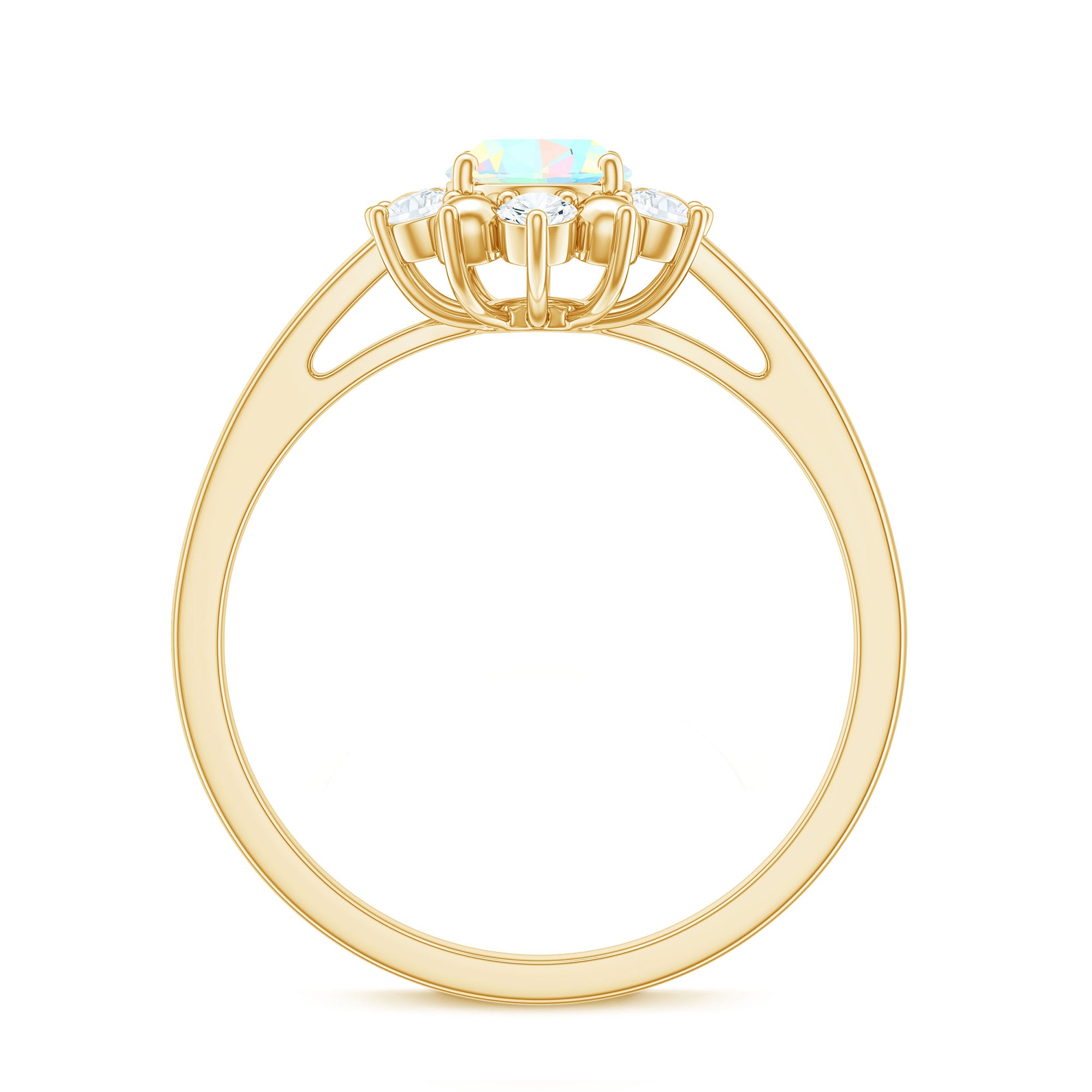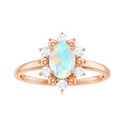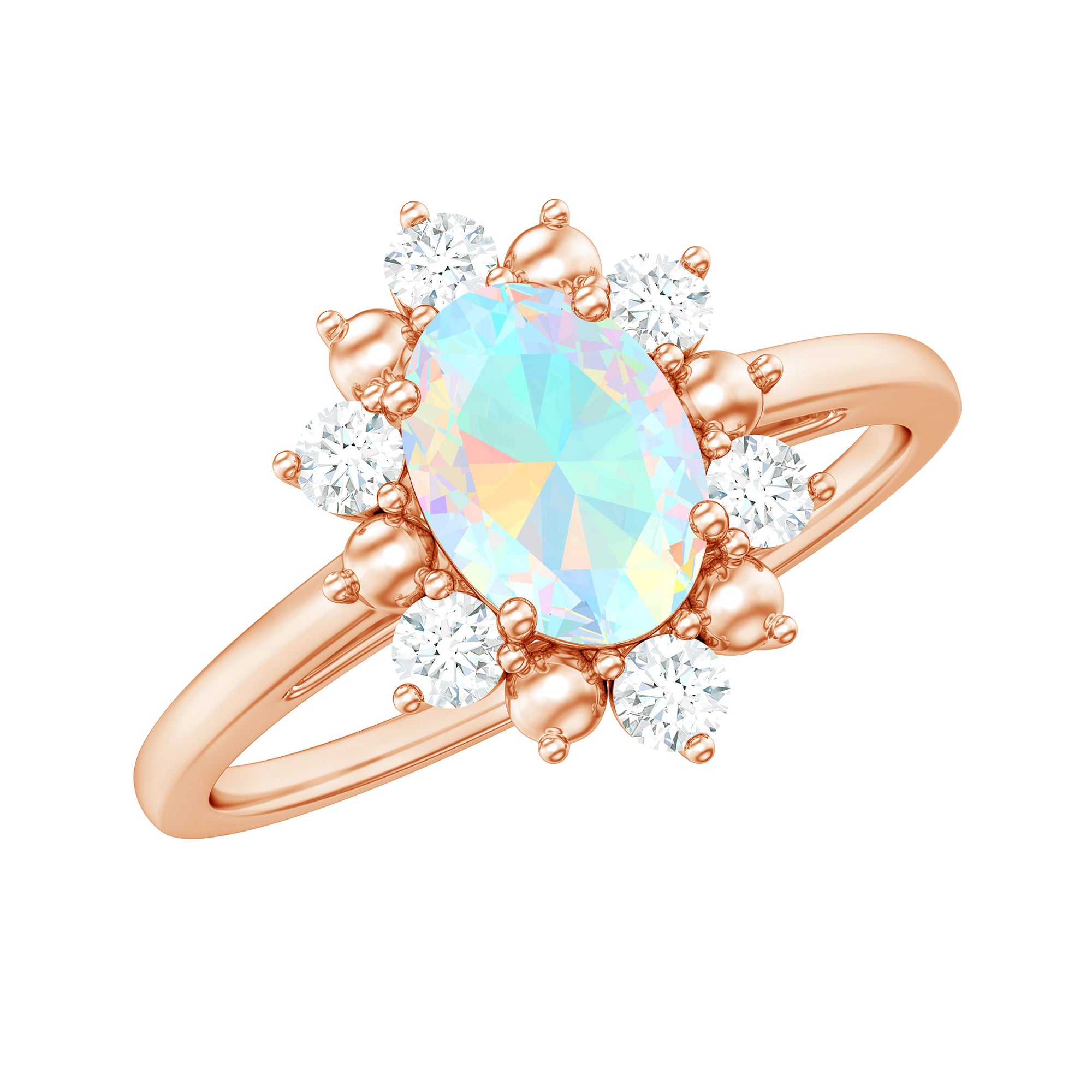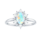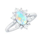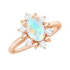 Natural 5X7mm Opalescent Oval Engagement Ring with Diamond Halo