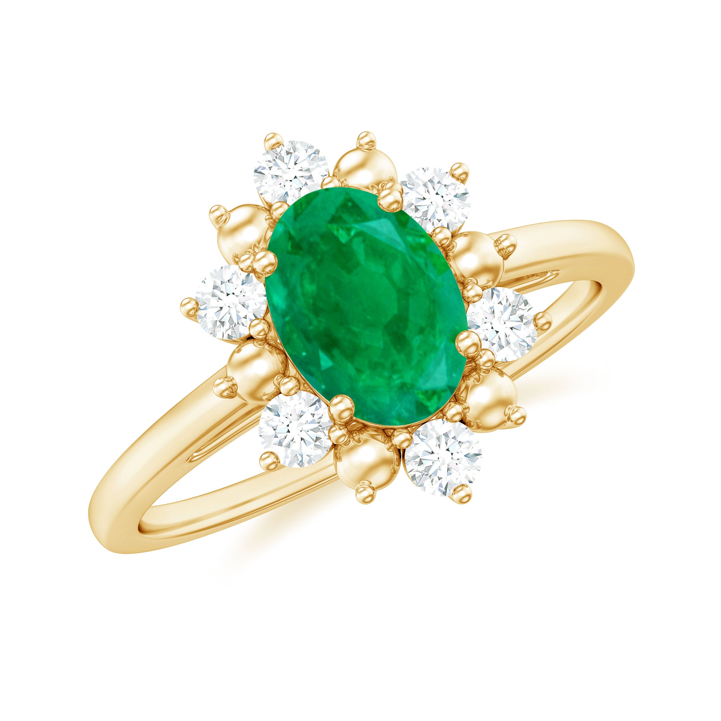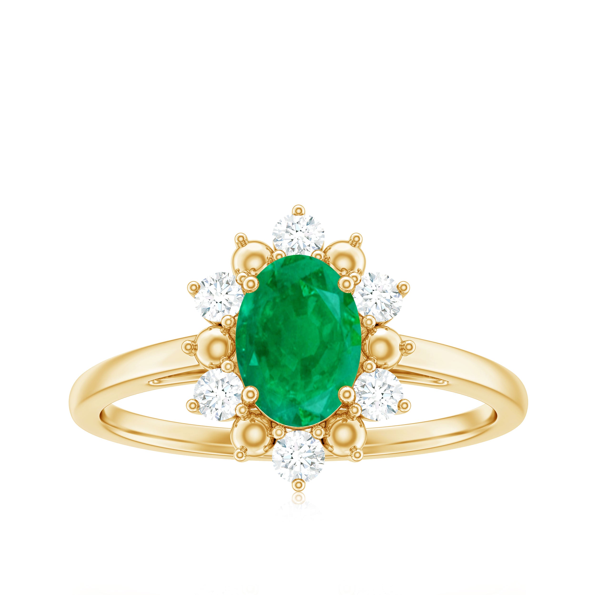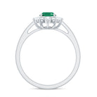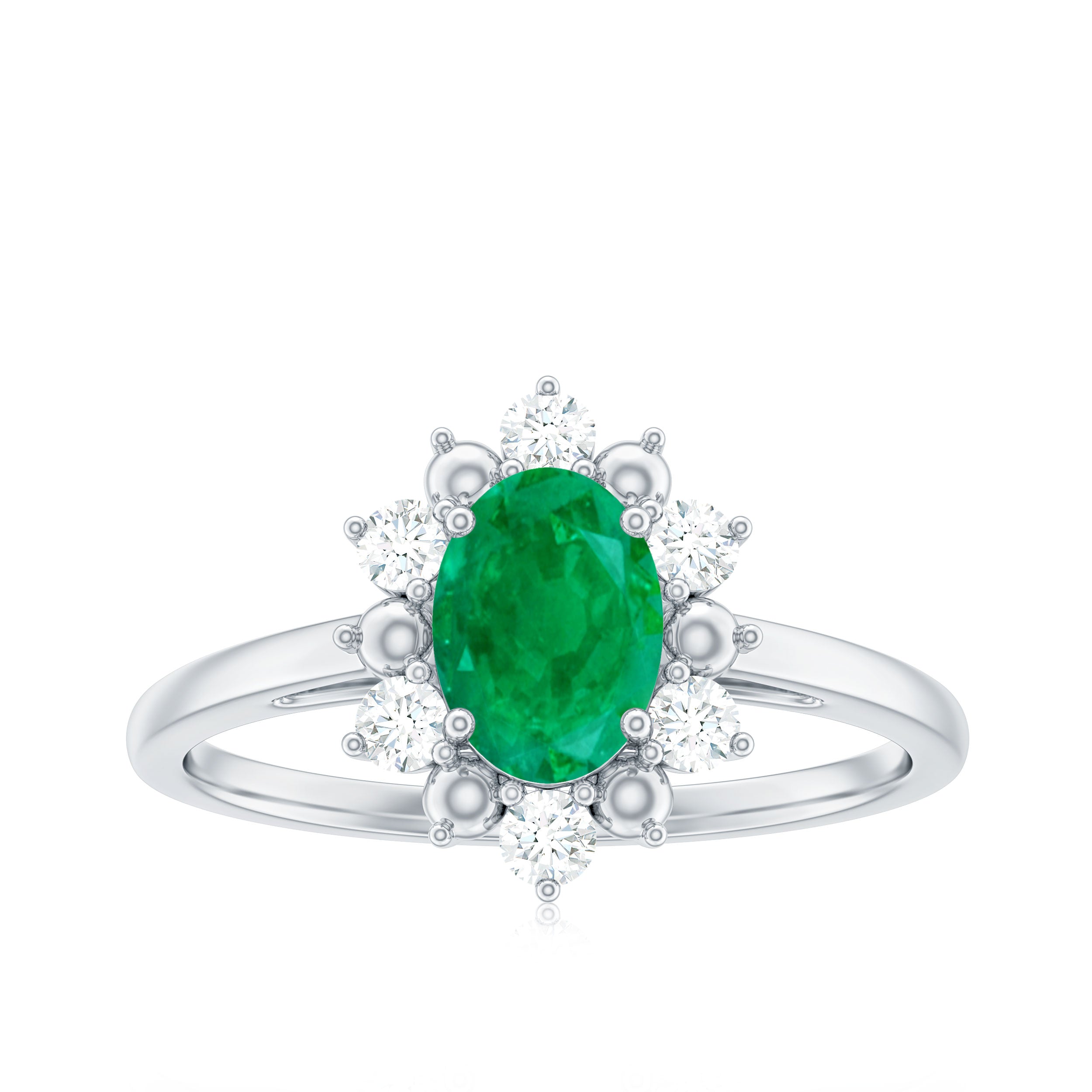 Natural 5X7mm Oval Emerald Engagement Ring with Diamond Halo